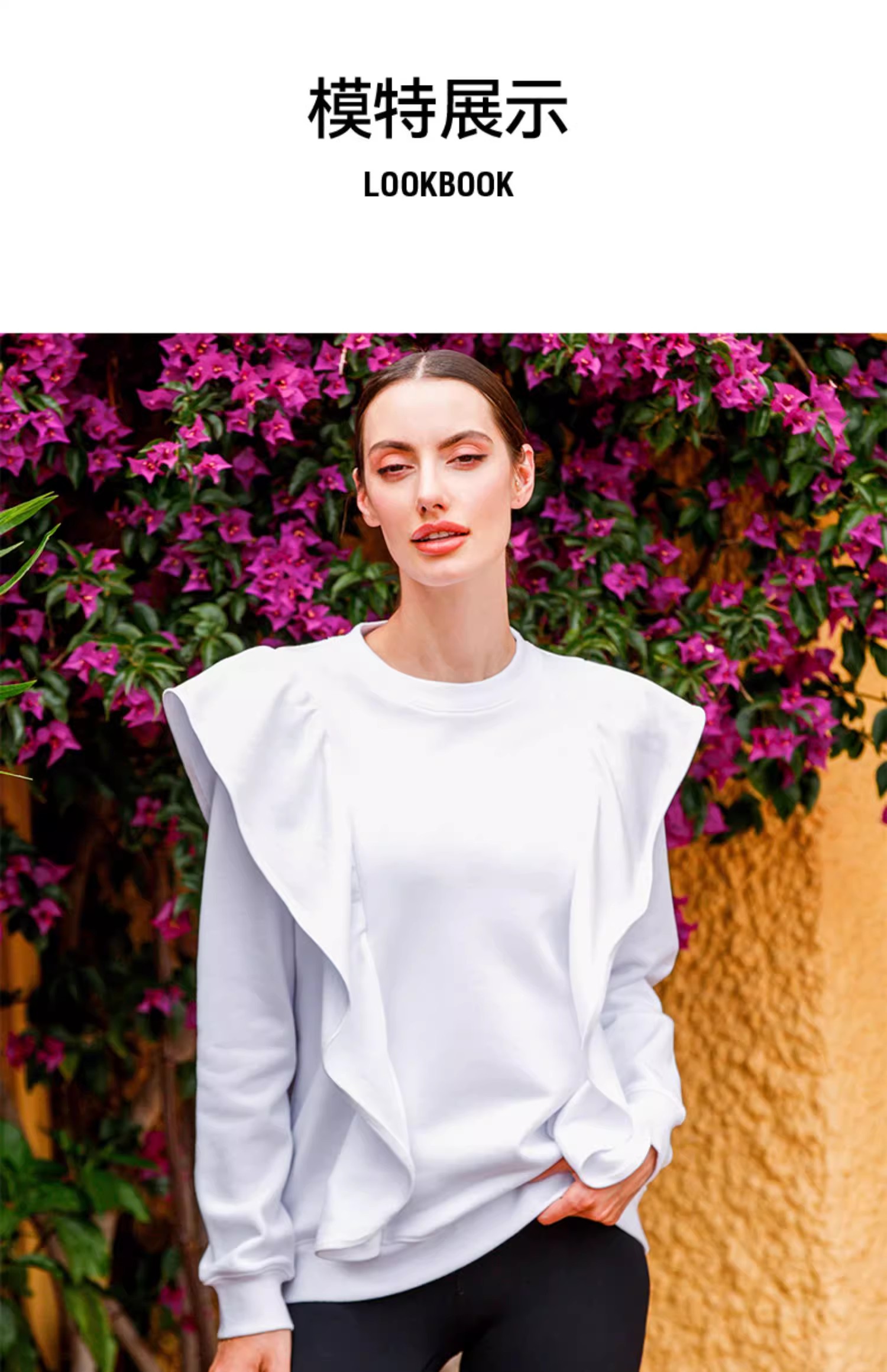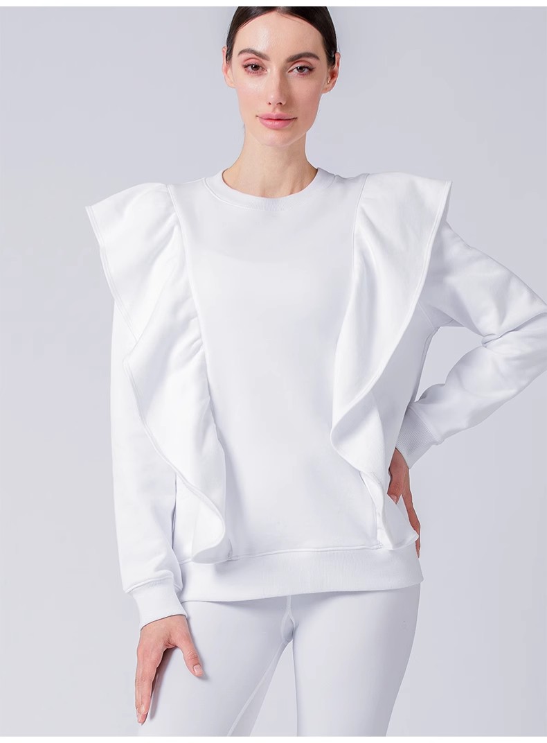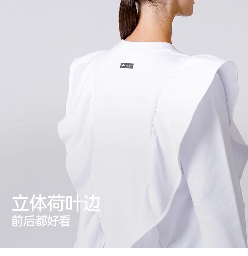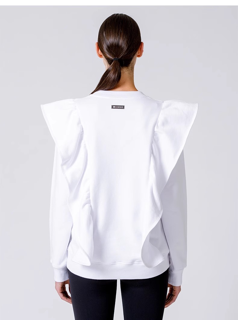 AUMNIE澳弥尼赋能荷叶上衣宽松舒适白色百搭小众设计感荷叶边卫衣