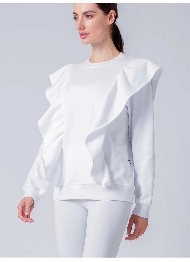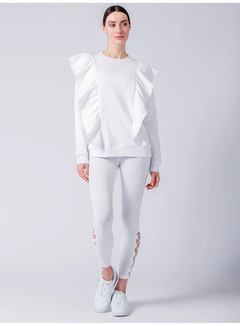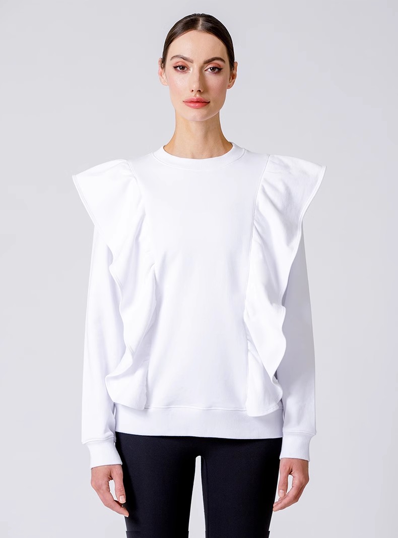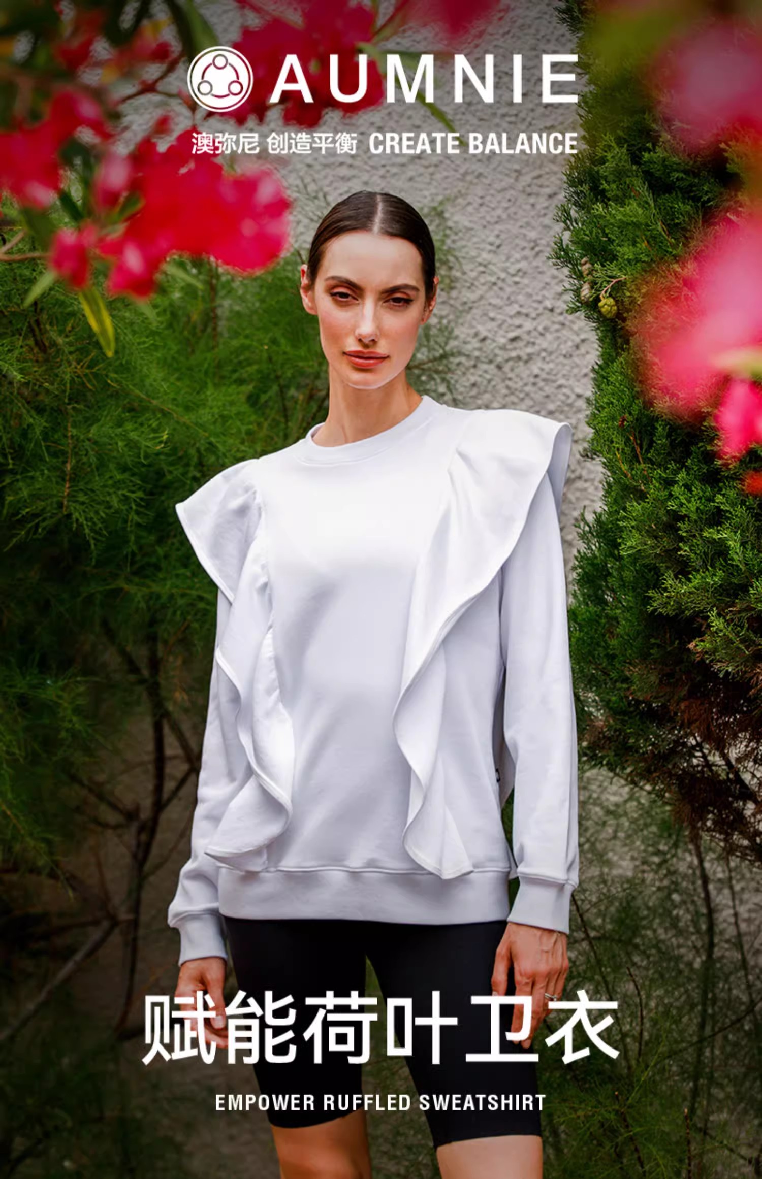 AUMNIE澳弥尼赋能荷叶上衣宽松舒适白色百搭小众设计感荷叶边卫衣