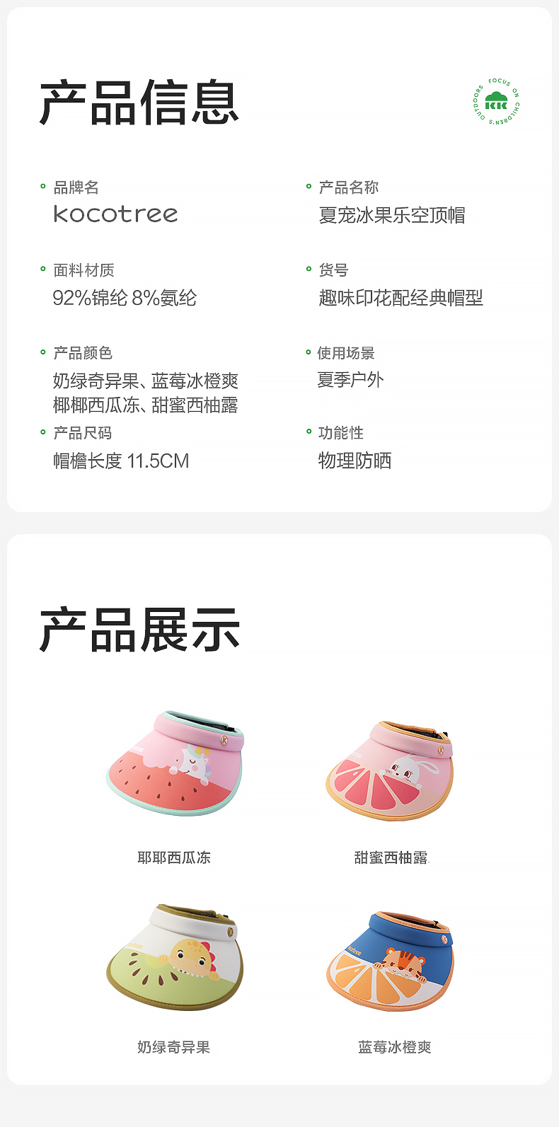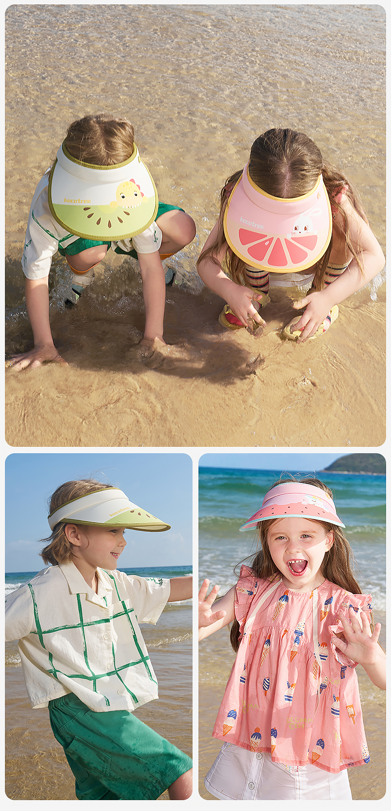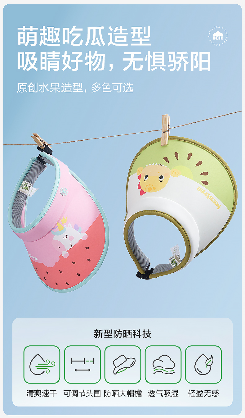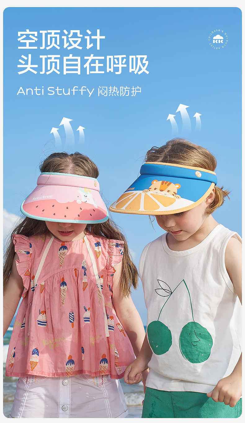 KK树儿童防晒帽宝宝空顶遮阳帽男女童运动防紫外线户外大帽檐夏季夏宠冰果乐空顶帽