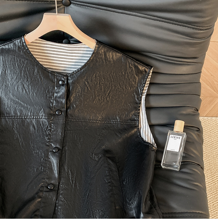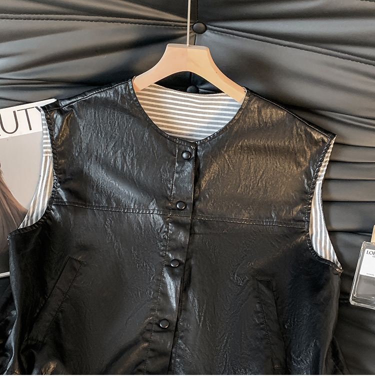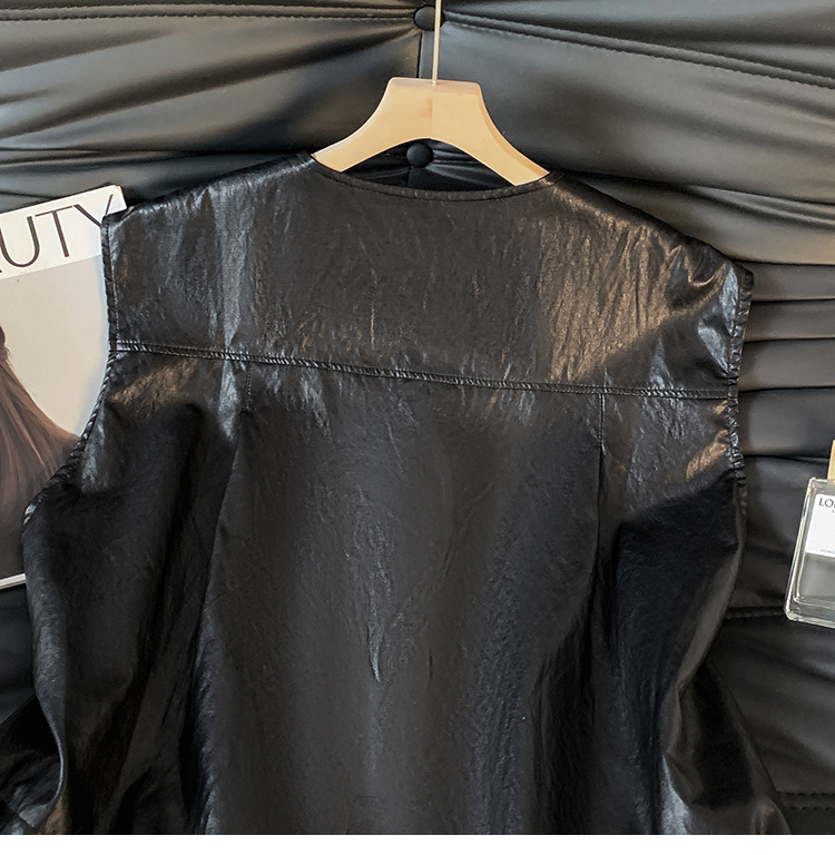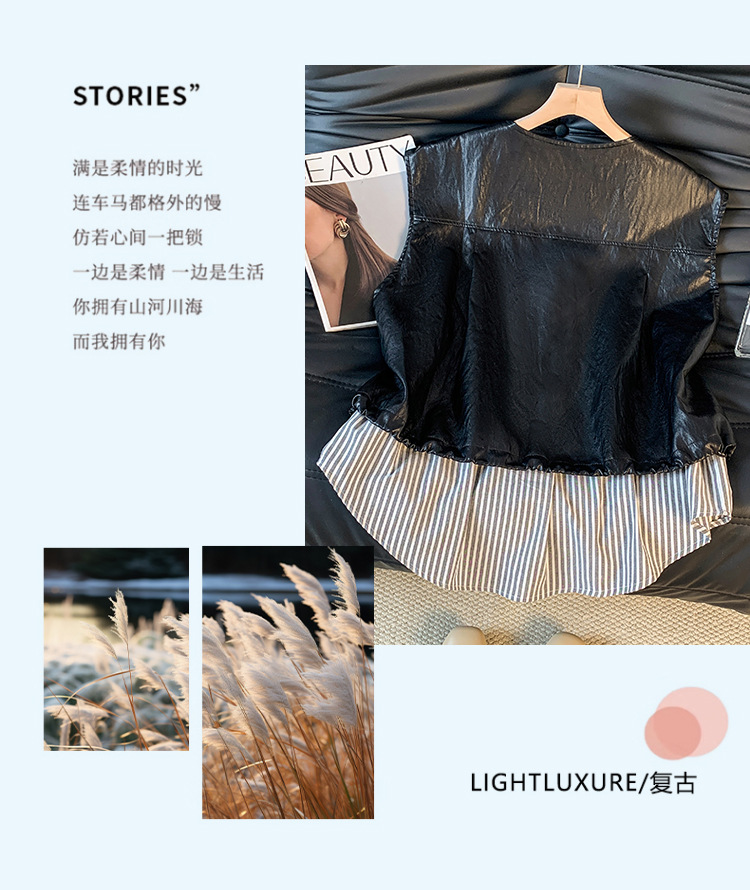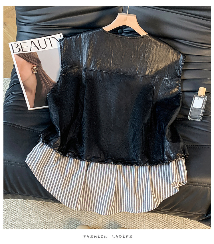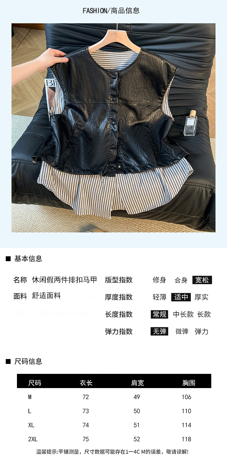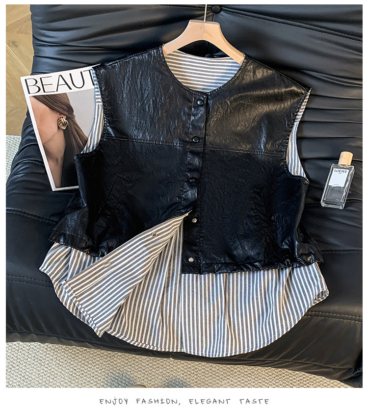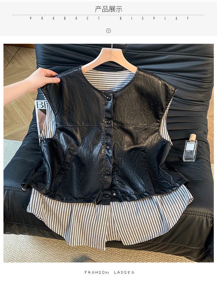 GYH 9373独特别致皮马甲宽松拼接假两件马夹无袖坎肩外套