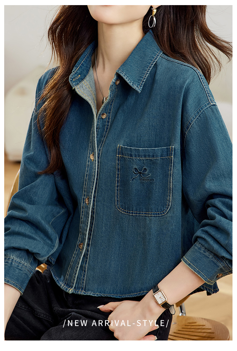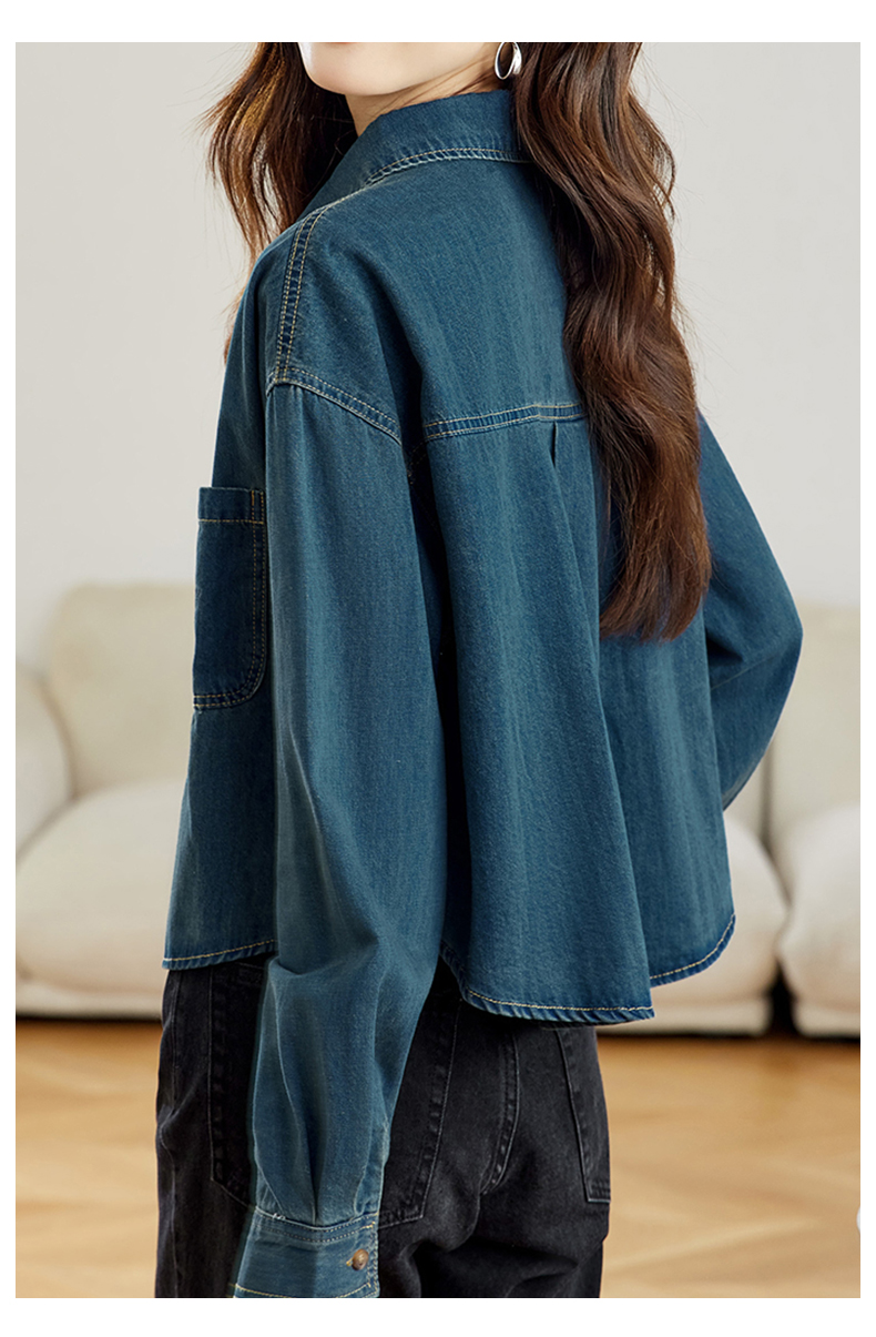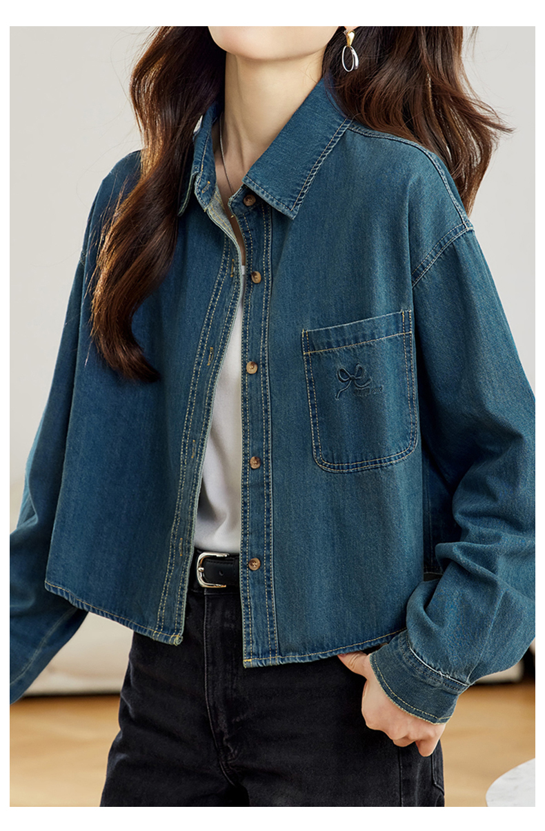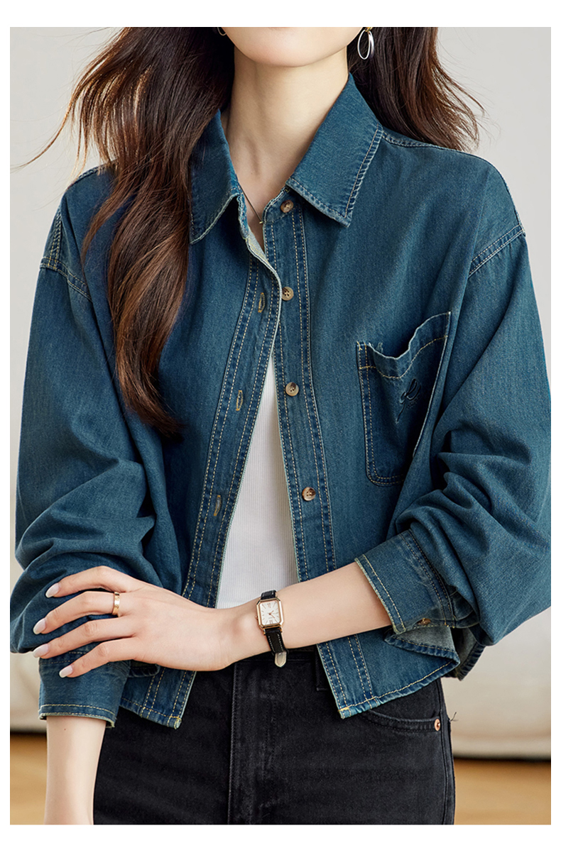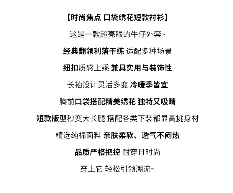 馥迦刺绣口袋做旧复古牛仔外套