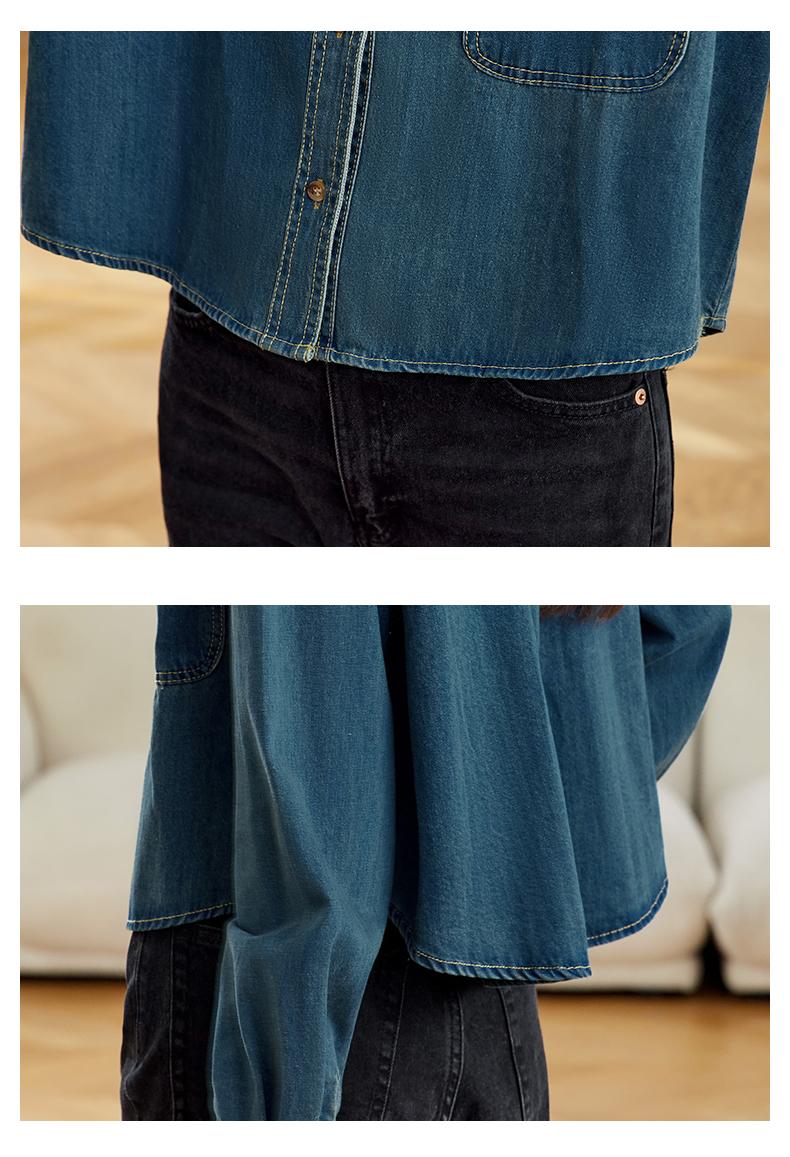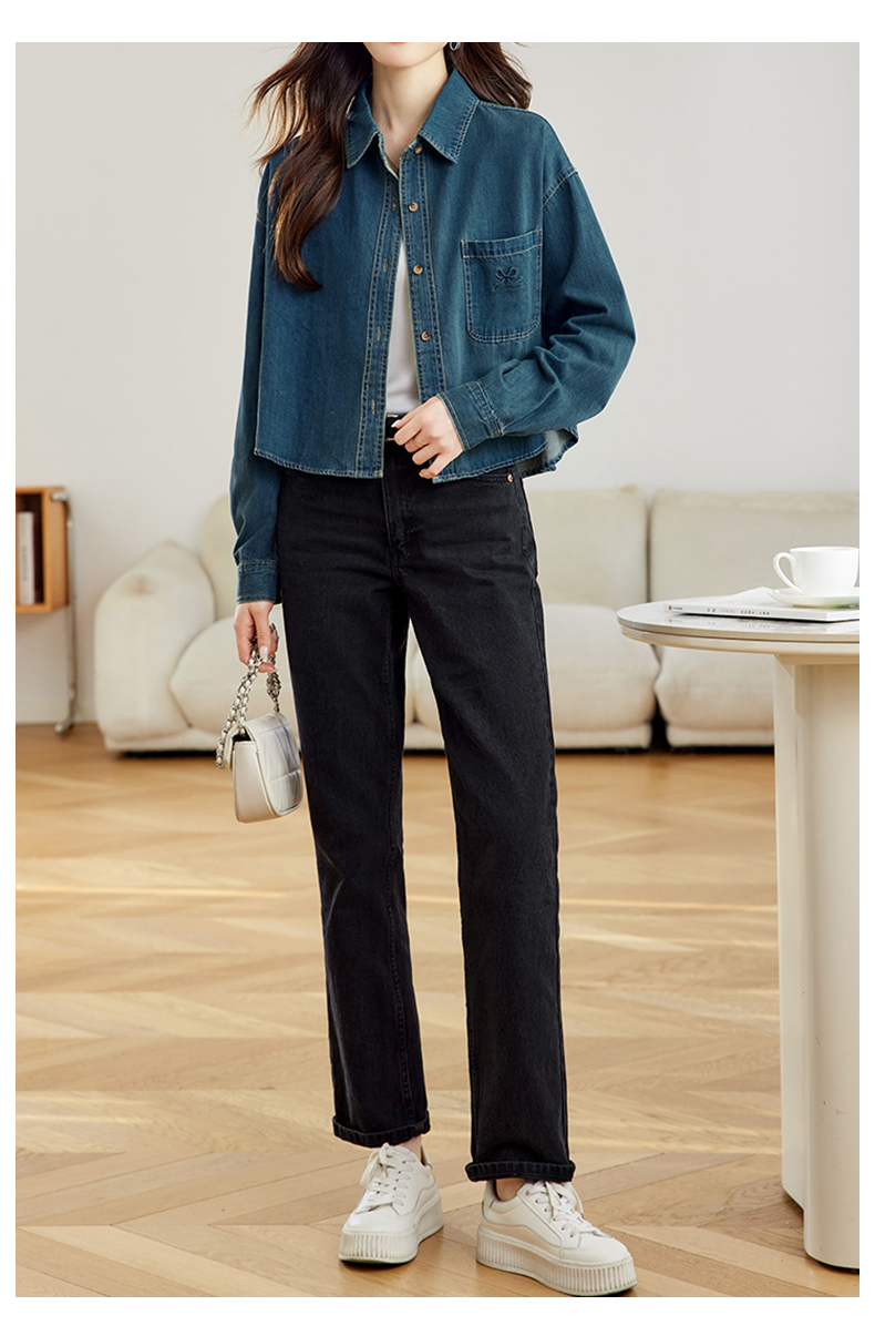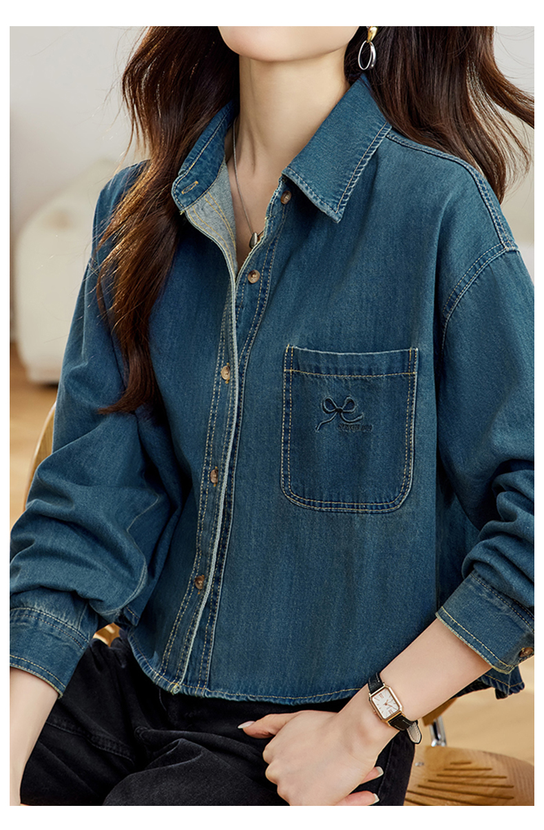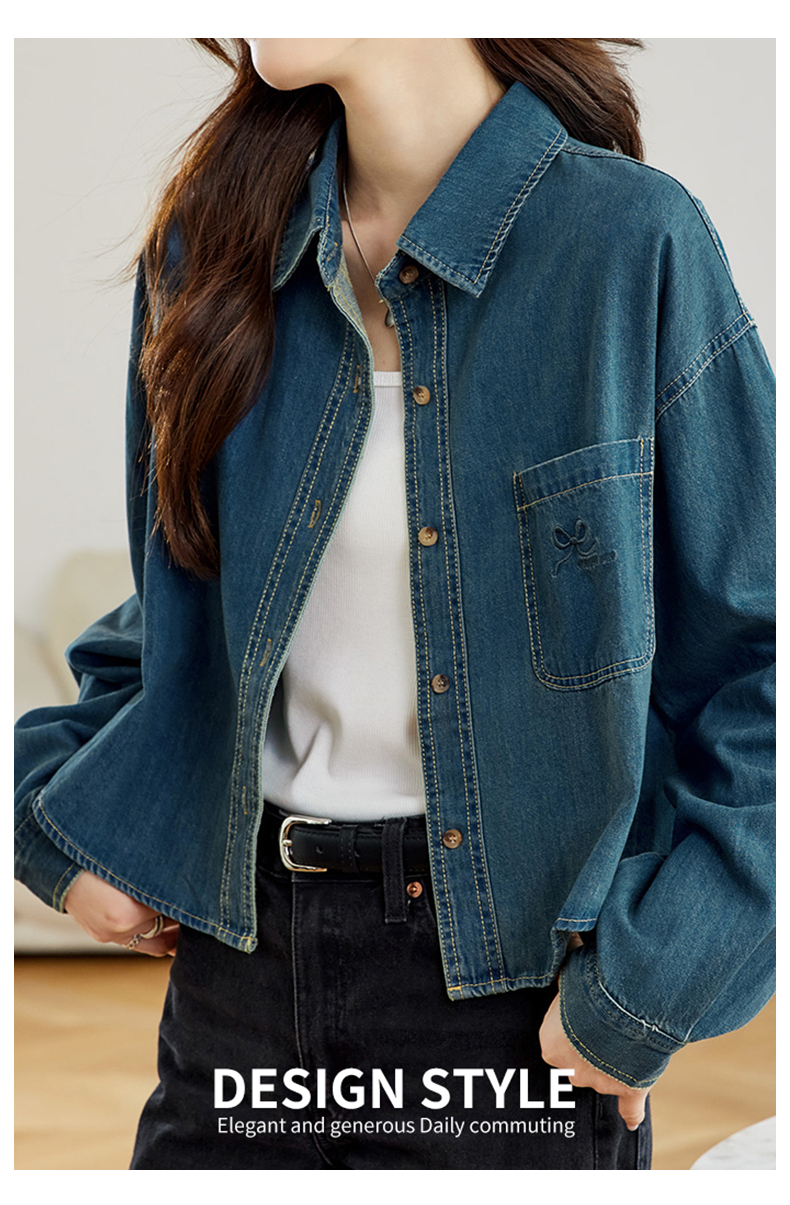 馥迦刺绣口袋做旧复古牛仔外套