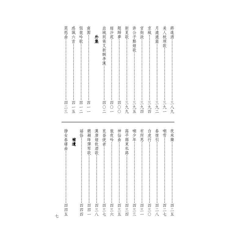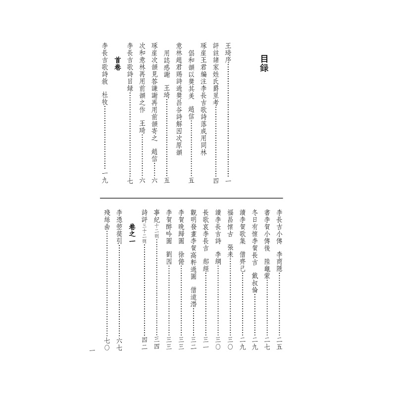 “四部要籍选刊·集部”之一种。以上海图书馆藏清乾隆宝笏楼刻本为底本影印,有顾廷龙手录清代学者何焯批校。宝笏楼刻本李长吉歌诗是乾隆以来的通行本,辑佚和辨伪俱称精审。李贺是唐代著名诗人,其实妇孺成诵、家喻户晓,在文学史上有举足轻重的地位。我社已线装影印《顾廷龙录何义门批校本李长吉歌诗》,目前已售罄。现对版式进行调整,再出一价格相对低廉的精装本以方便广大学人购读。