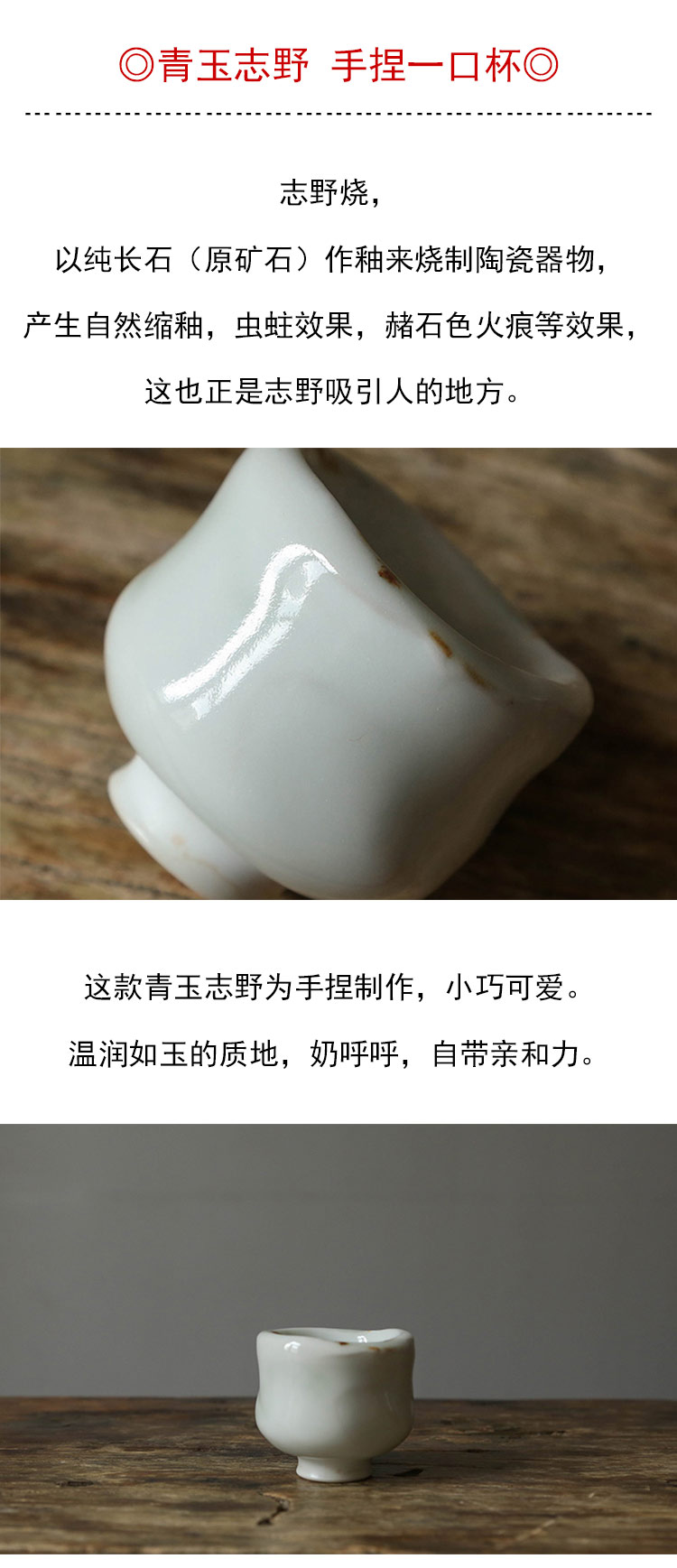 茶香记 蒙涛 青玉志野 手捏一口杯 主人杯 茶杯功夫茶具