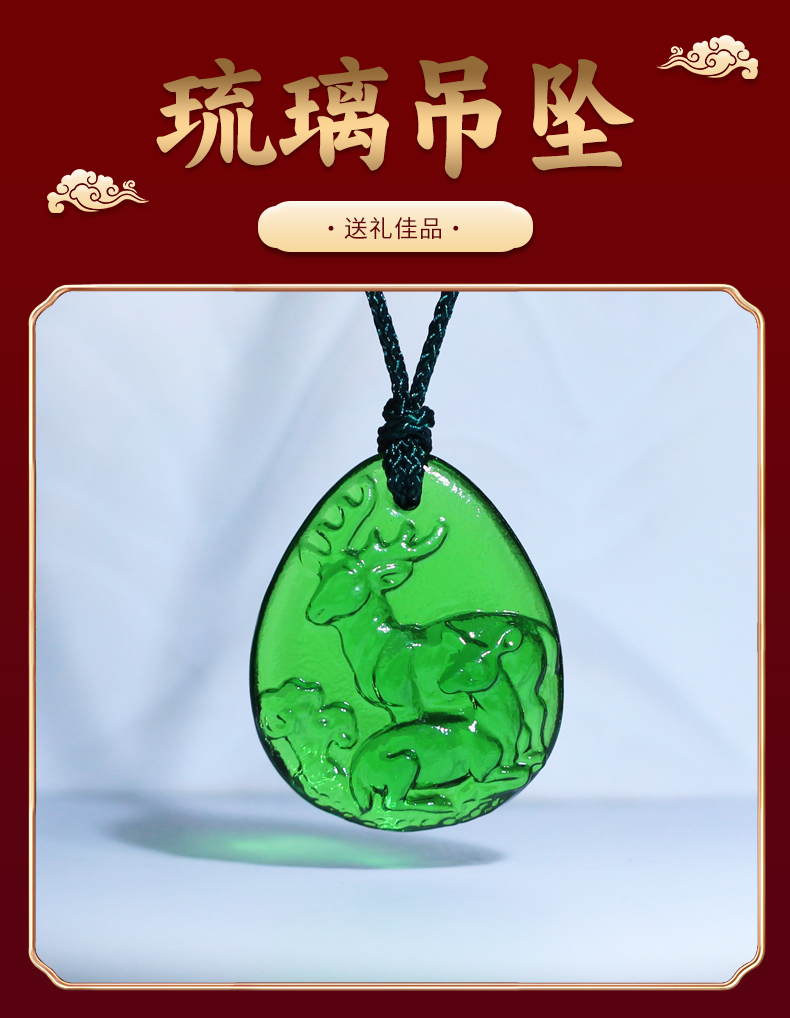 集雅轩宋韶光大师2026年新款蛇 灵鹿长春 琉璃吊坠礼品