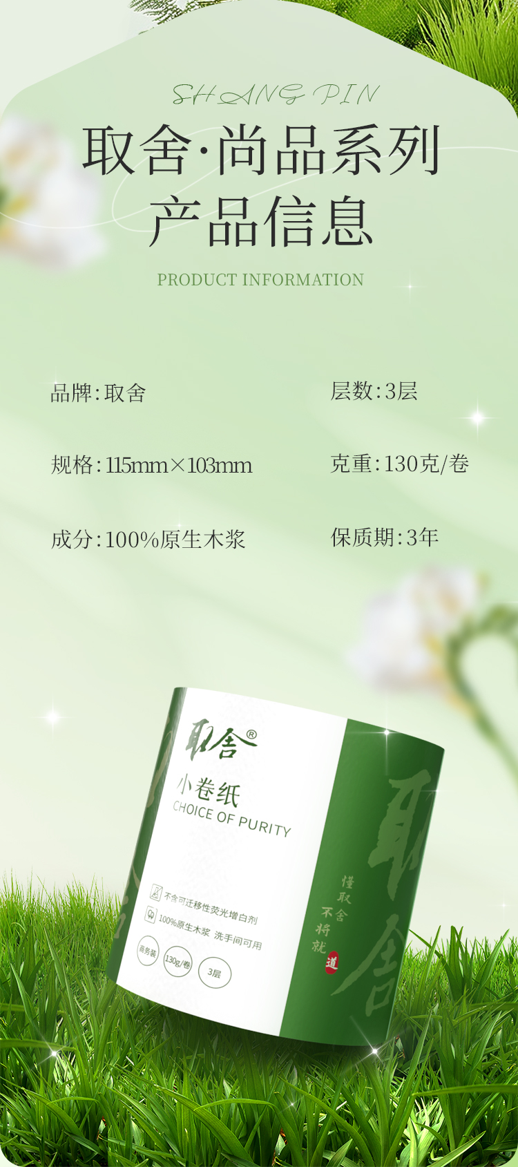 取舍木浆纸卷纸(白色)130克/卷*18卷/箱