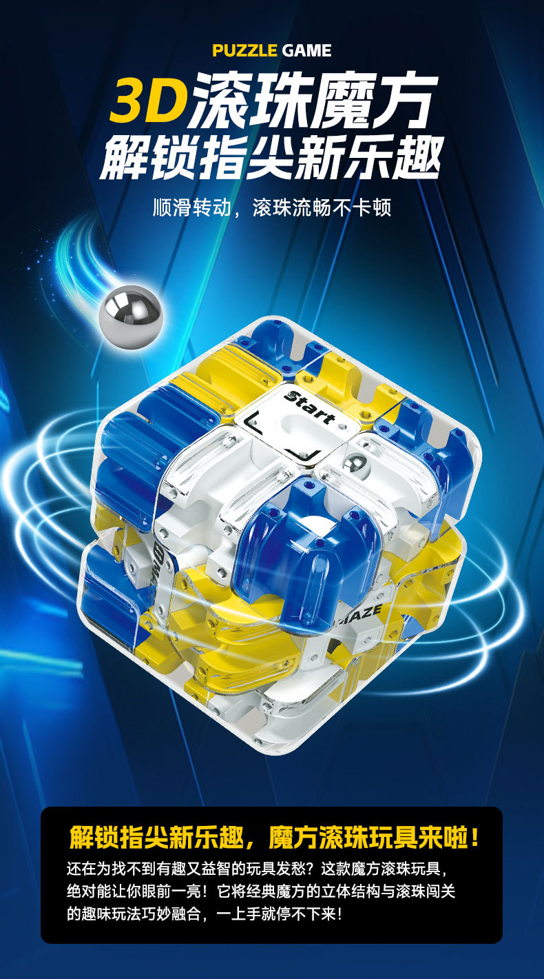 3D滚珠魔方(蓝白黄款)/1个补单专用