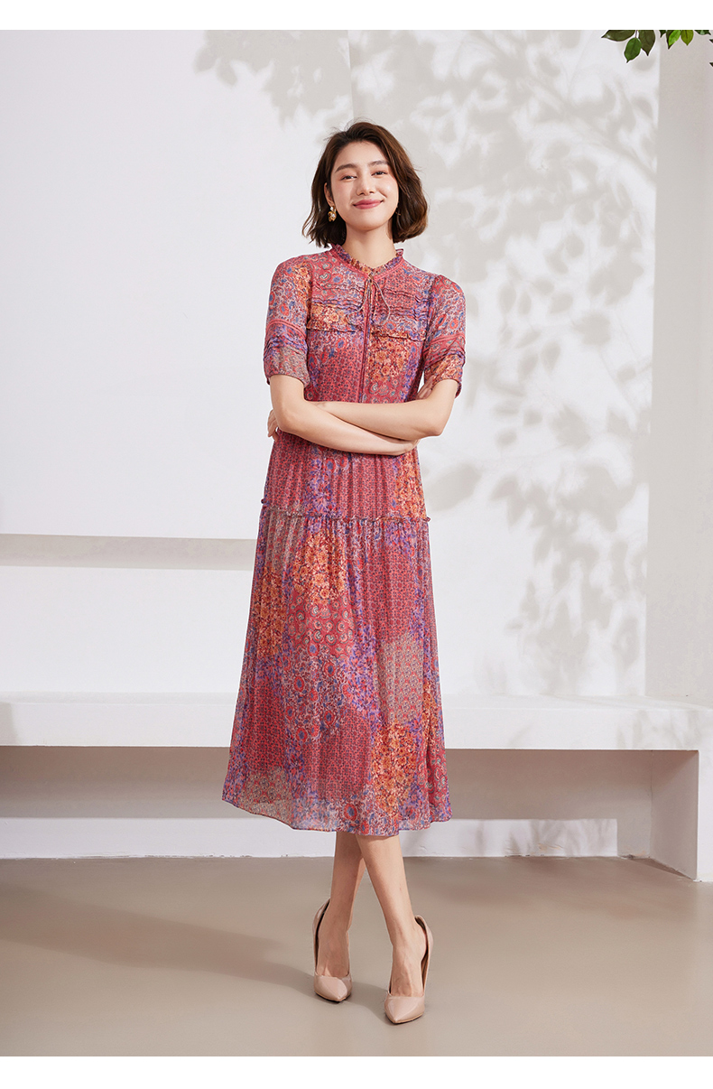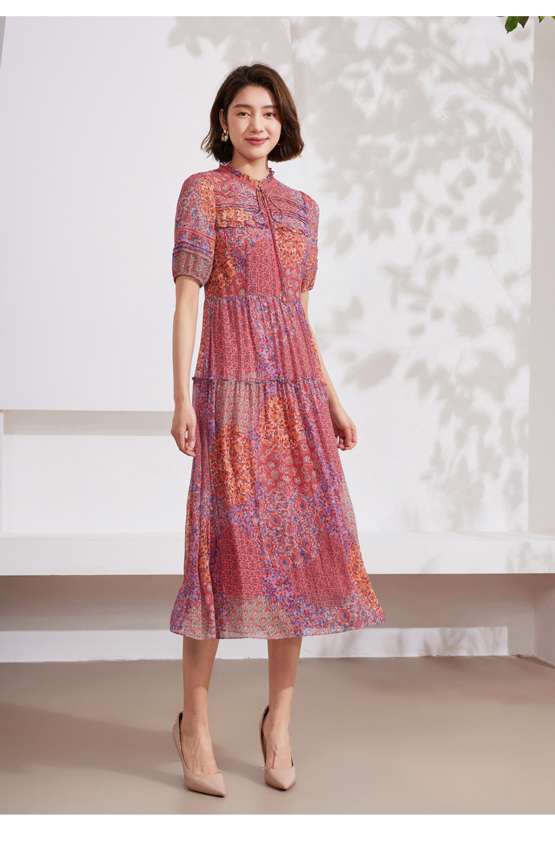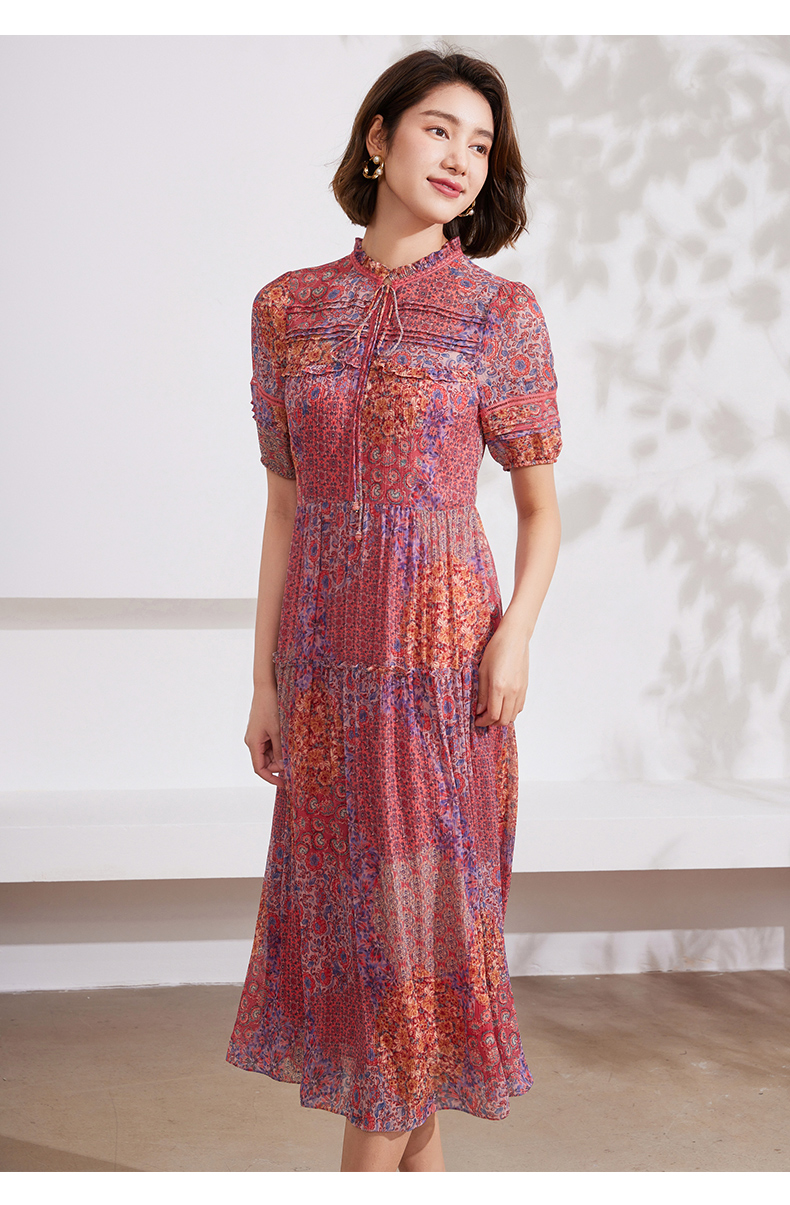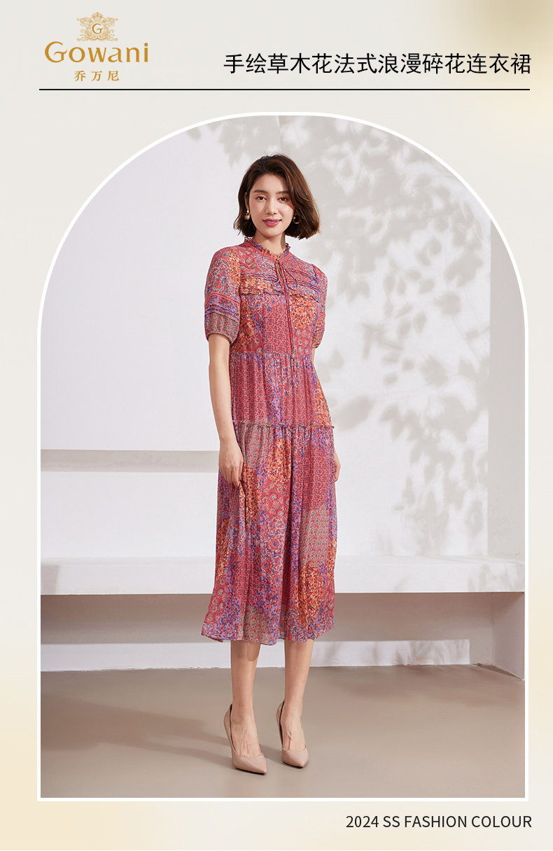 乔万尼真丝连衣裙100%桑蚕丝新款法式碎花EM2E879