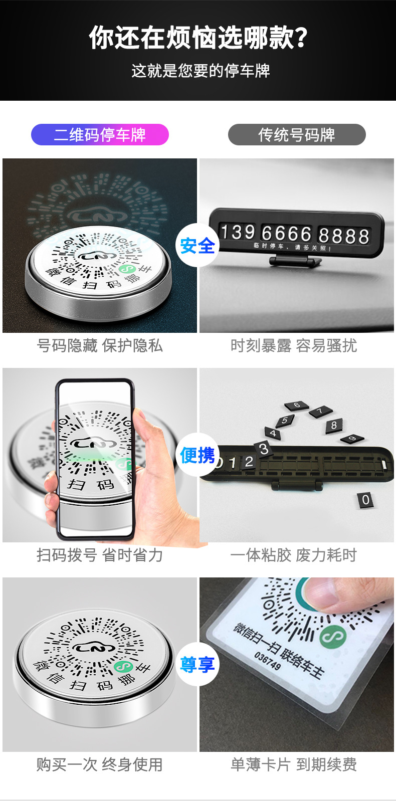 升级款合金车载挪车电话牌临时停车号码牌挪车二维码创意停车牌-M仓