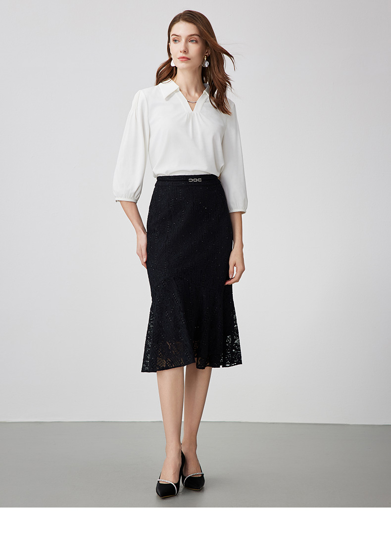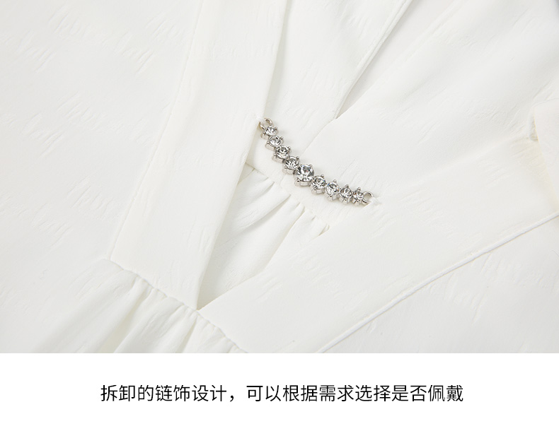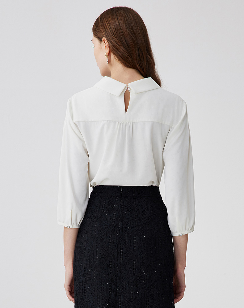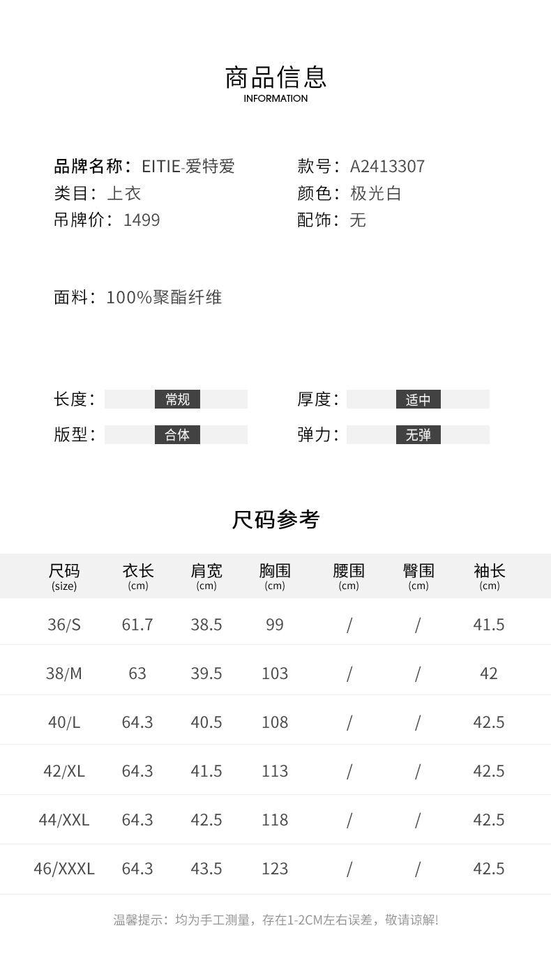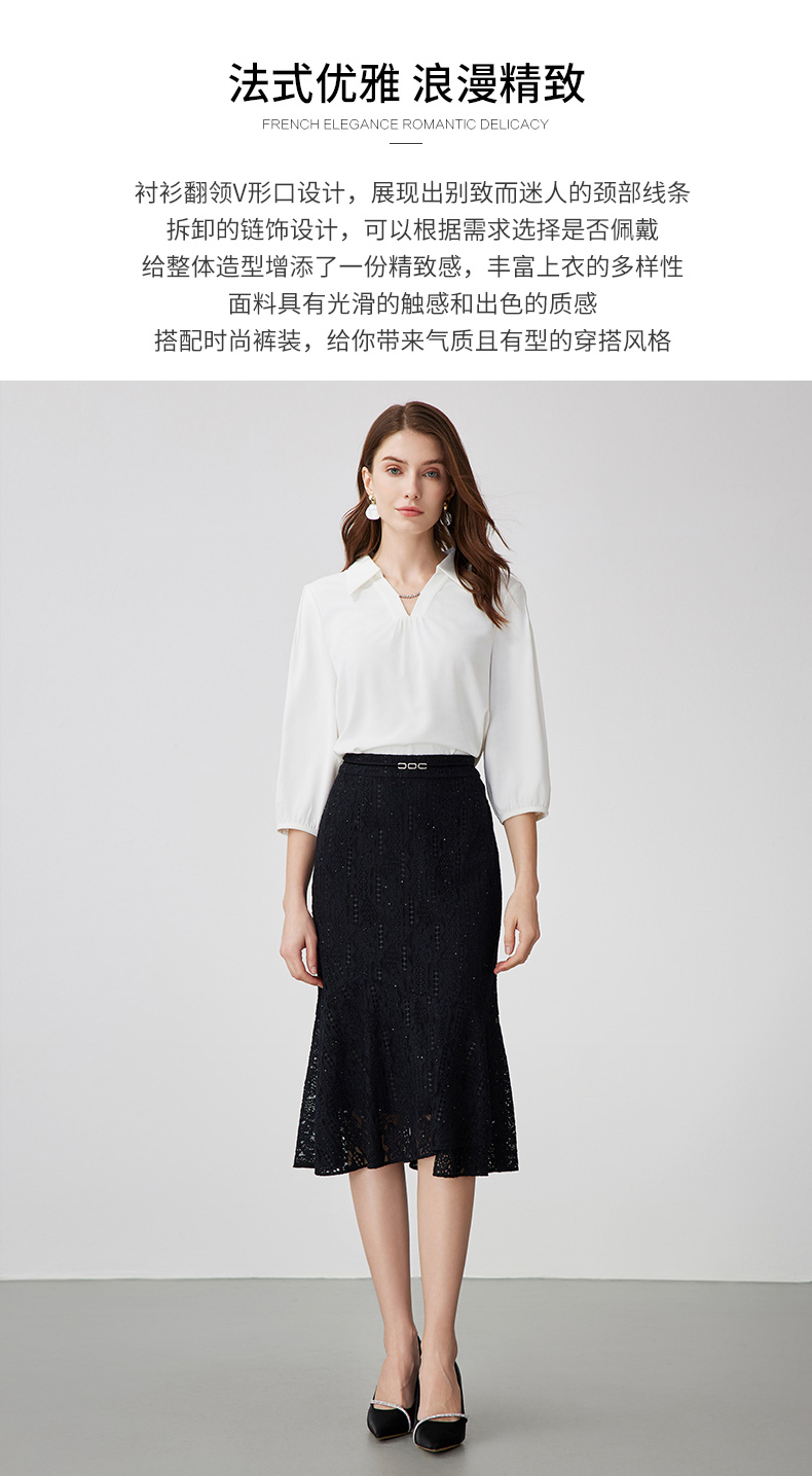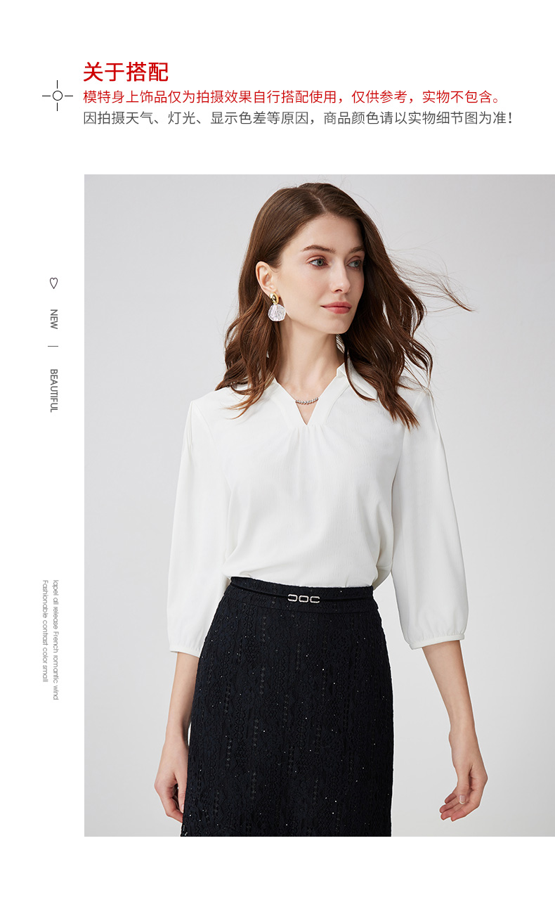EITIE爱特爱时尚V领直筒宽松显瘦通勤白色灯笼袖衬衫上衣24春新款A2413307