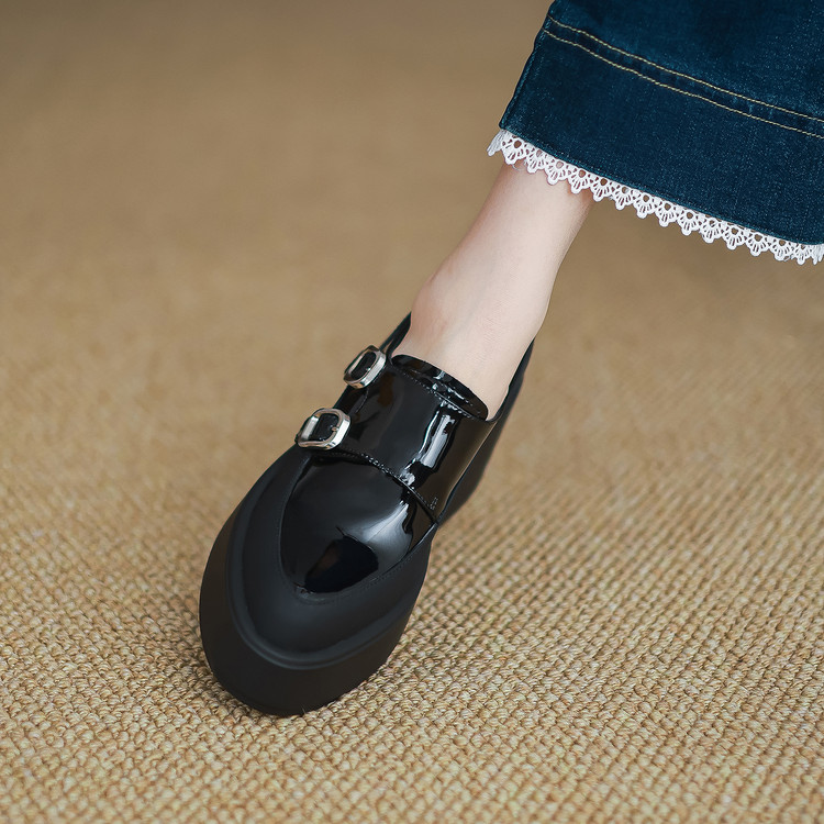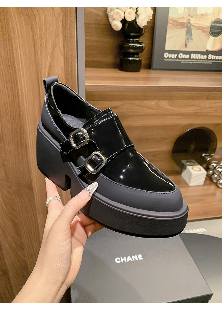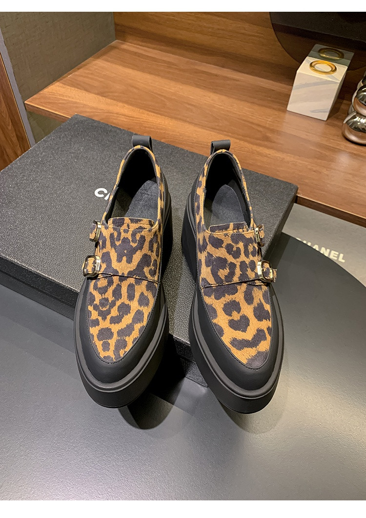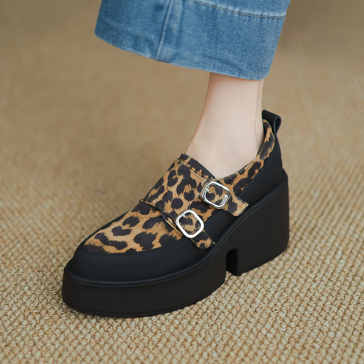 【预售5天】高跟厚底皮带扣单鞋女英伦风复古尖头豹纹一脚蹬乐福鞋ZMXY&ZM5171-1