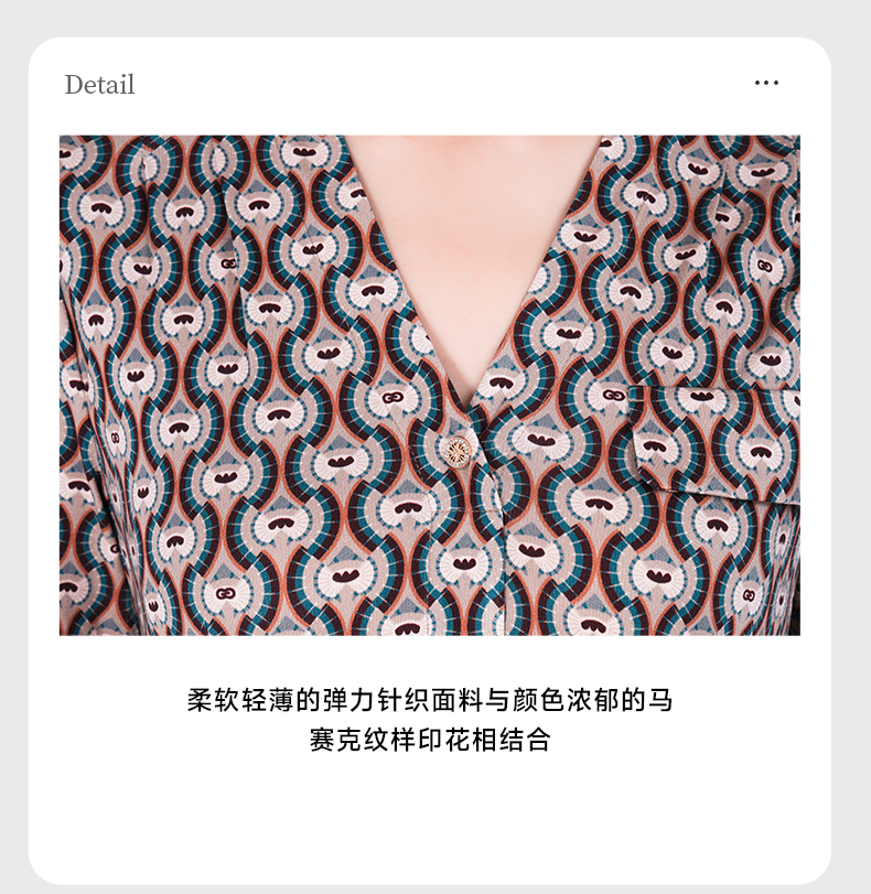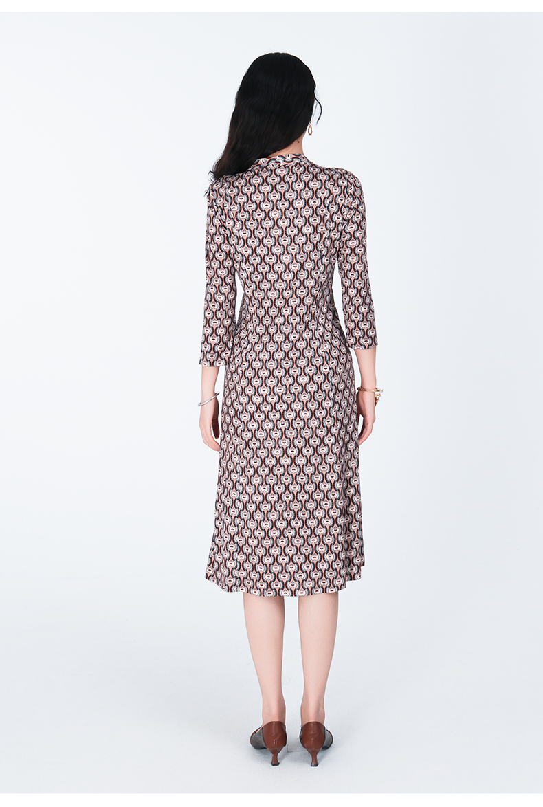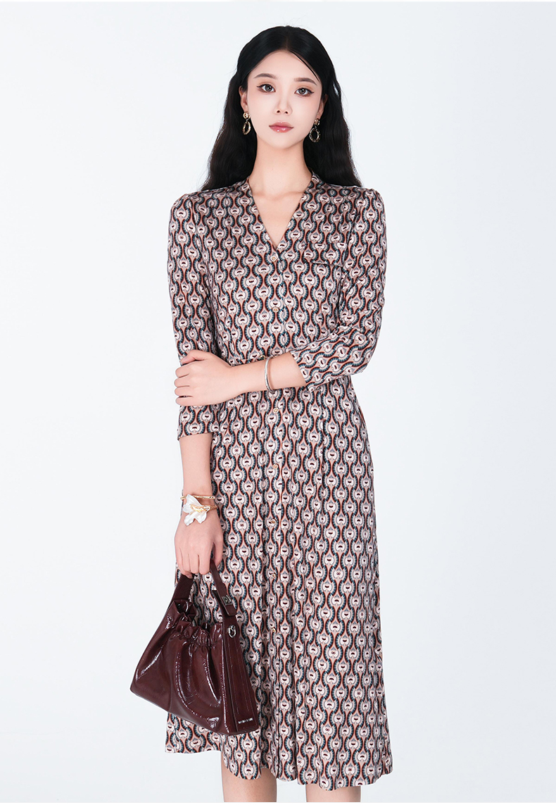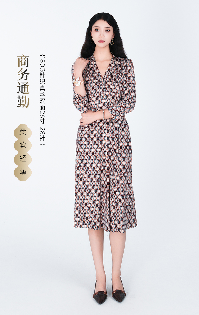 乔万尼马赛克咖啡印花100%真丝收腰显瘦连衣裙ED2E493