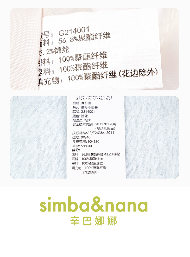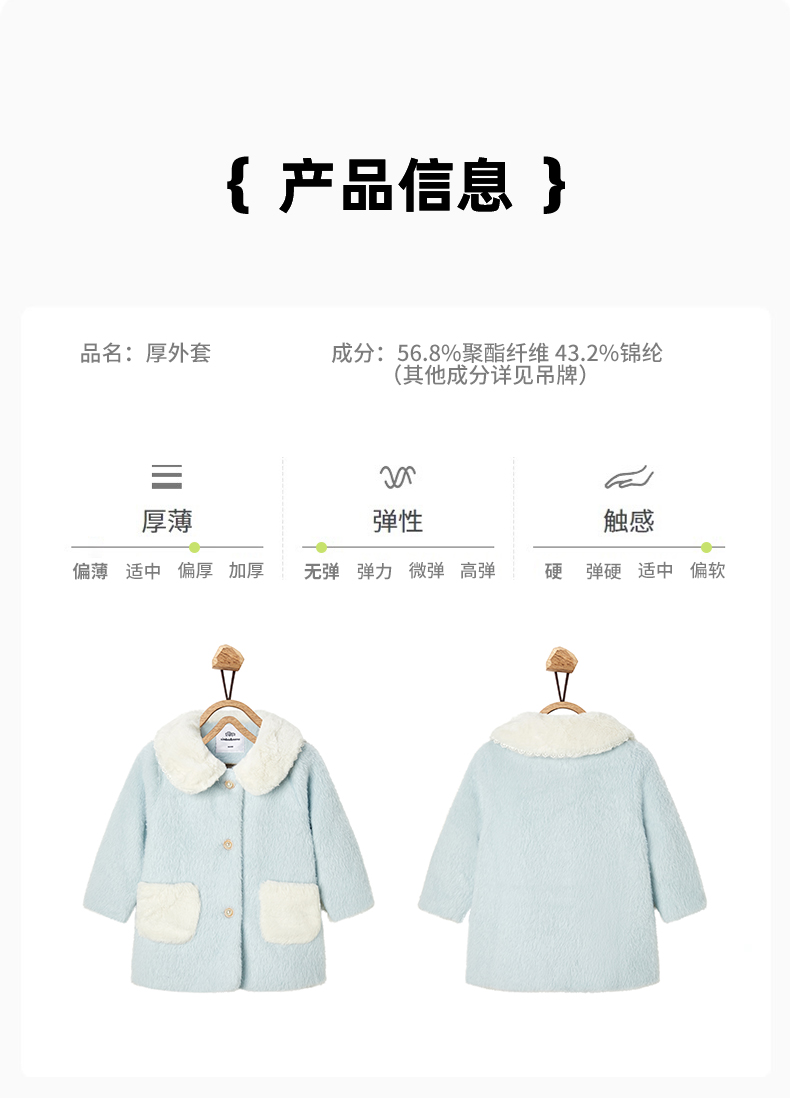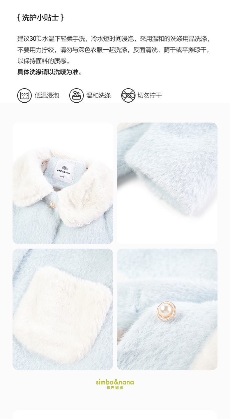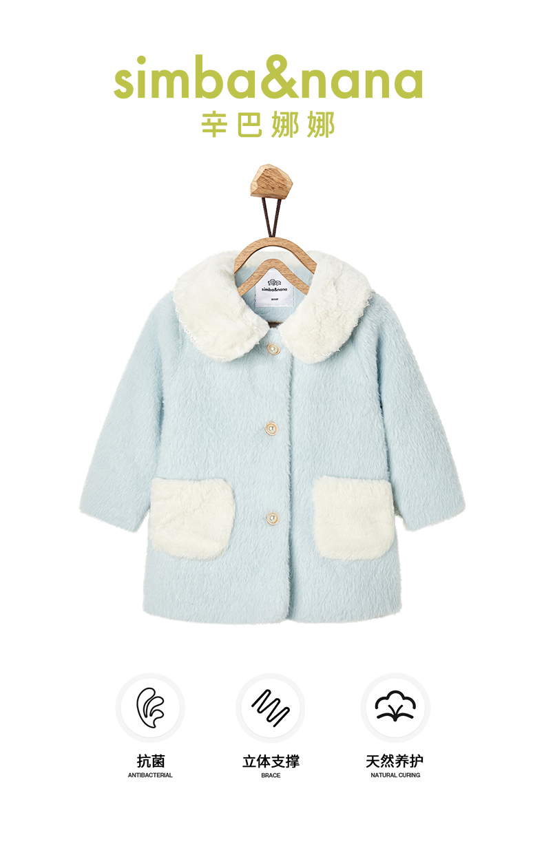 【辛巴娜娜】simbanana女童棉服童装冬季洋气翻领毛领夹棉外套呢大衣
