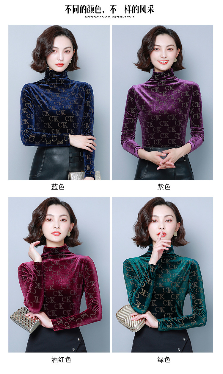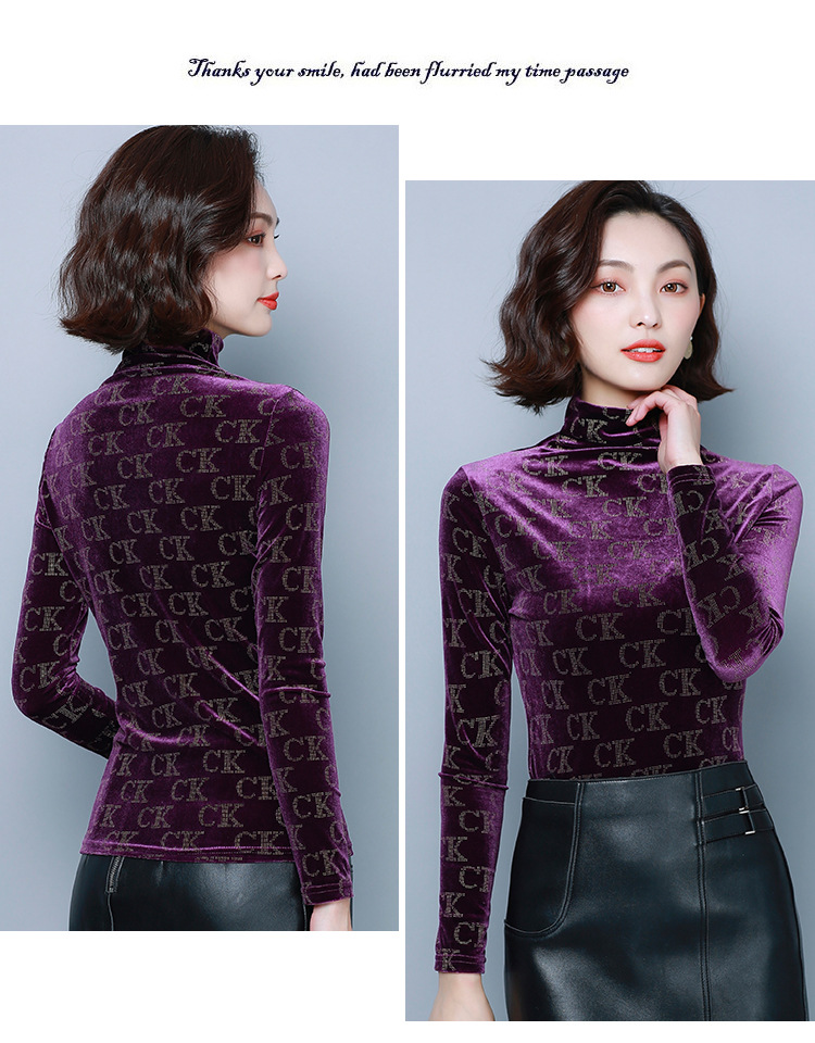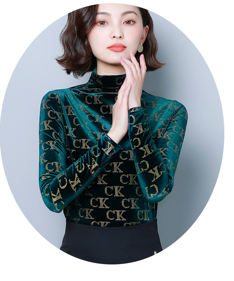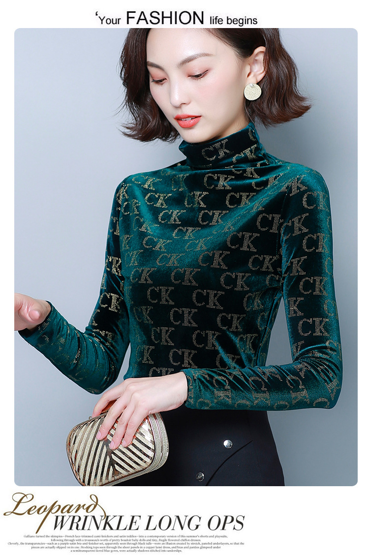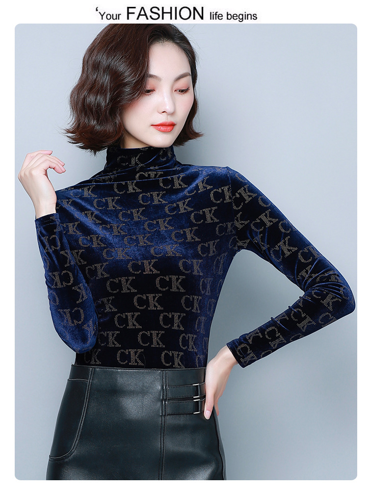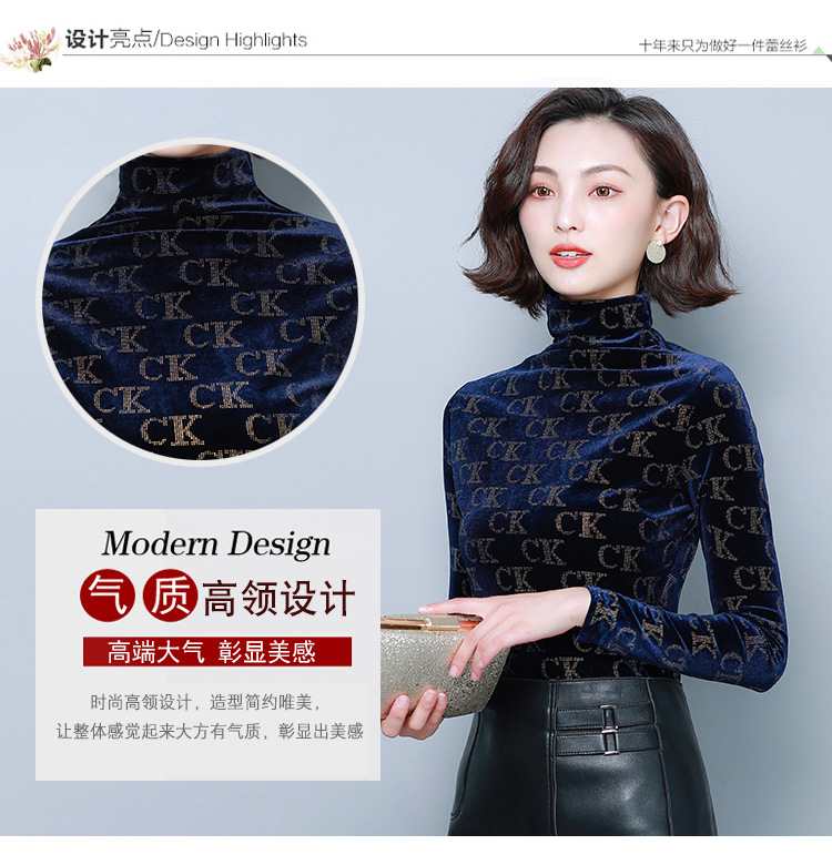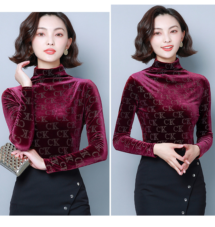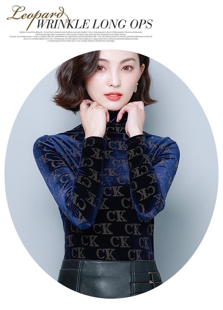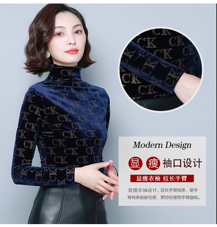 YH-1327秋冬新款时尚丝绒烫钻小衫 XCX