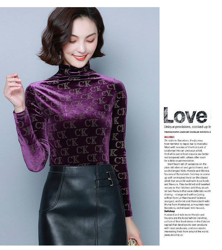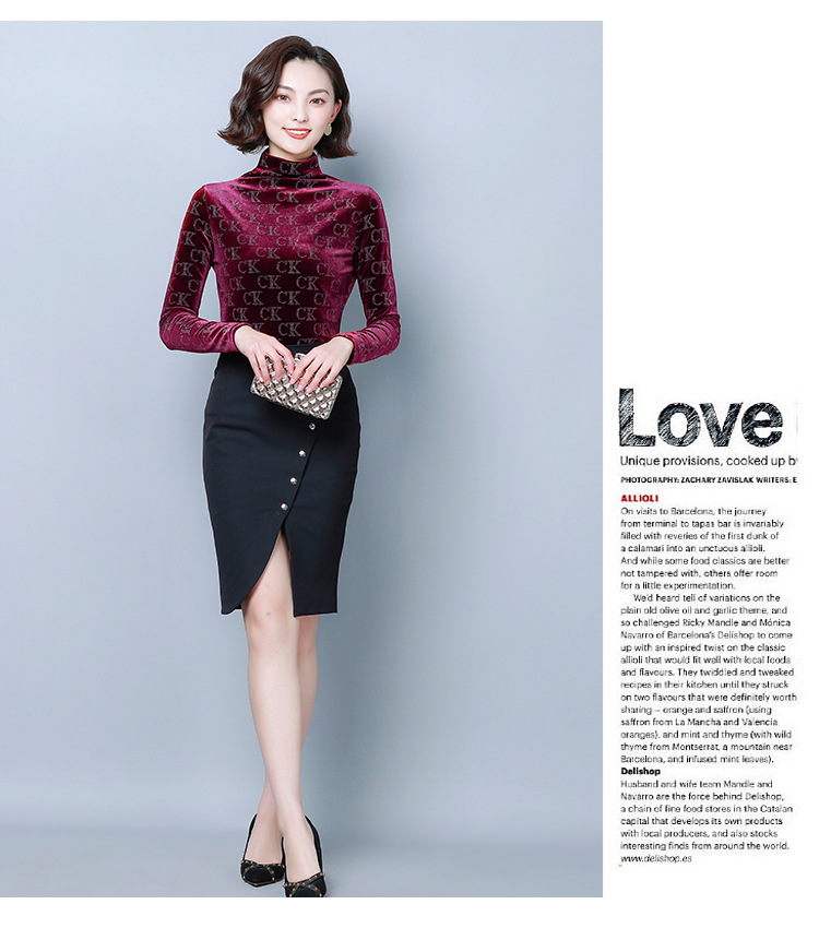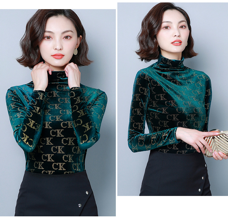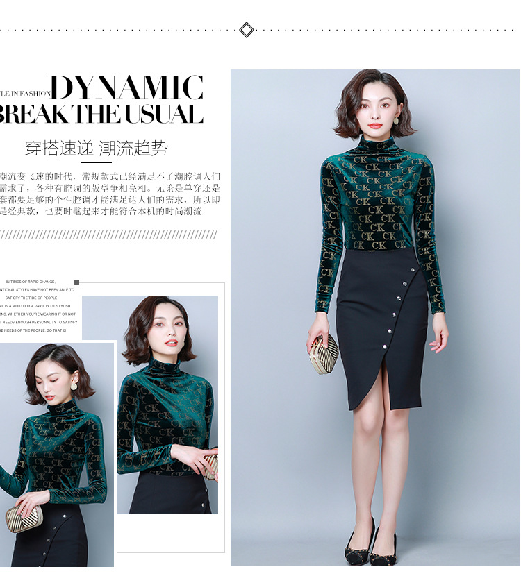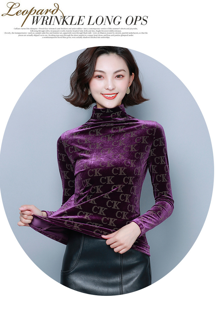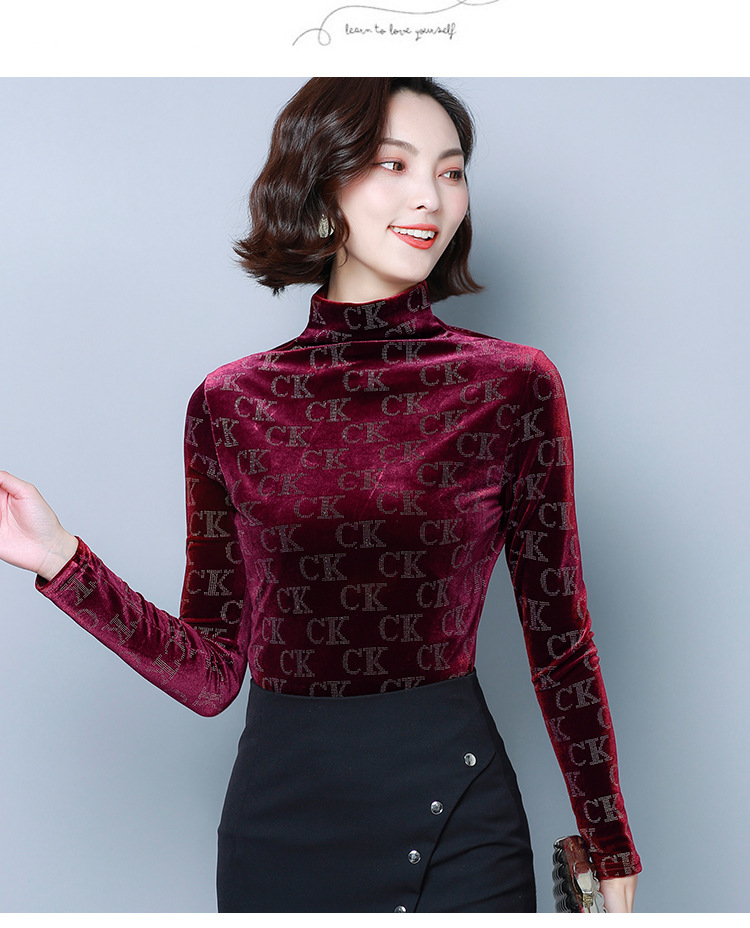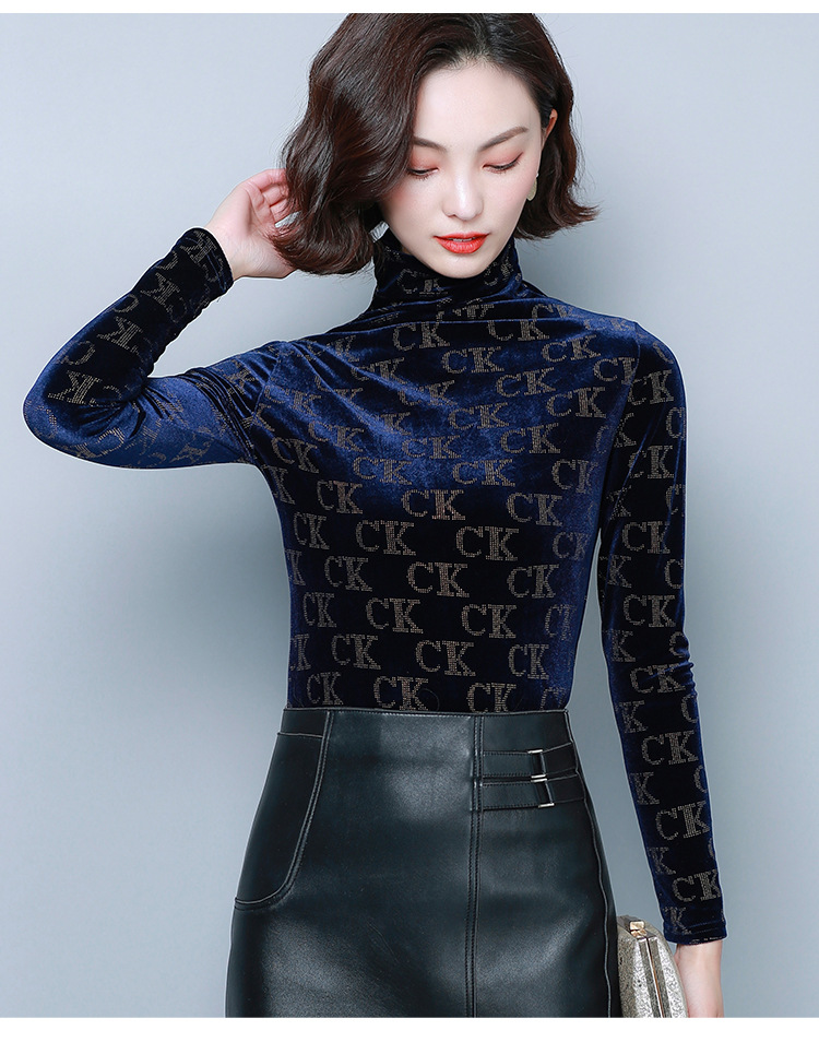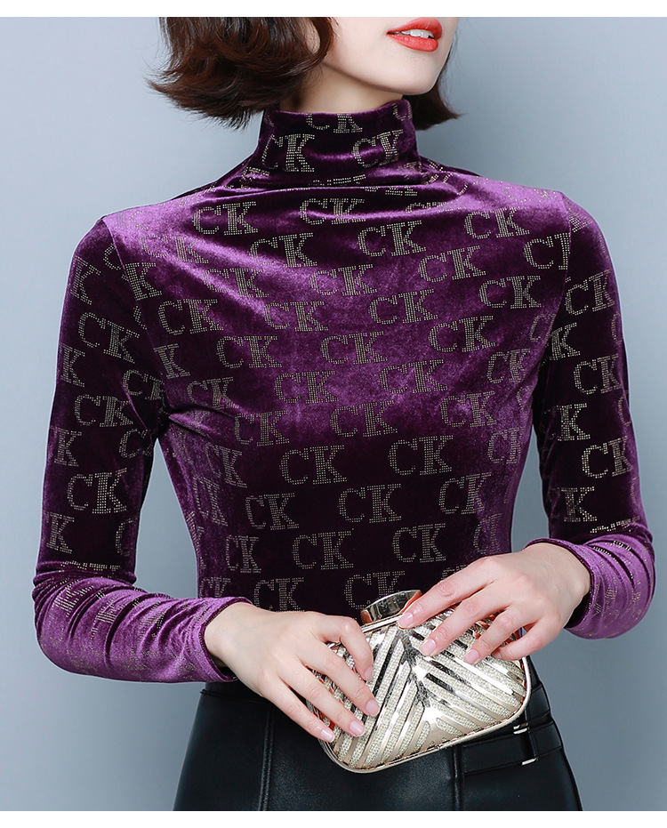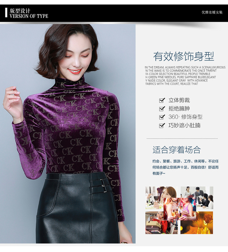 YH-1327秋冬新款时尚丝绒烫钻小衫 XCX
