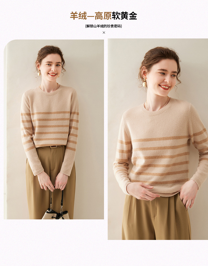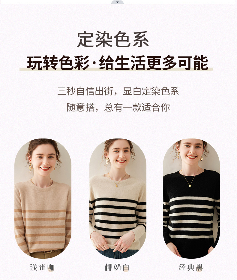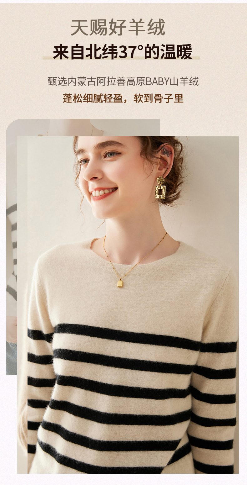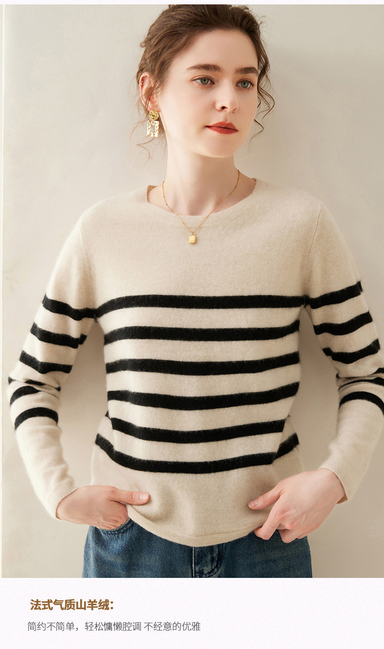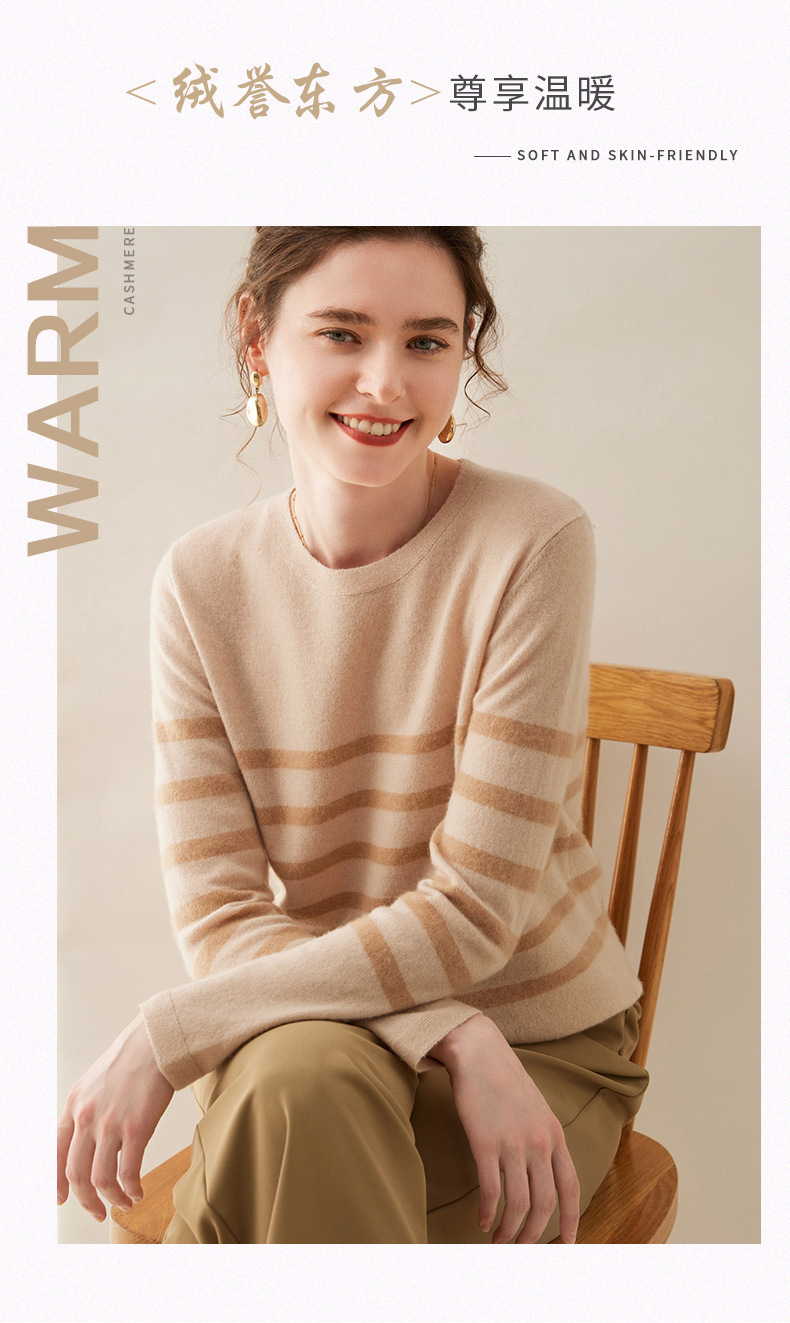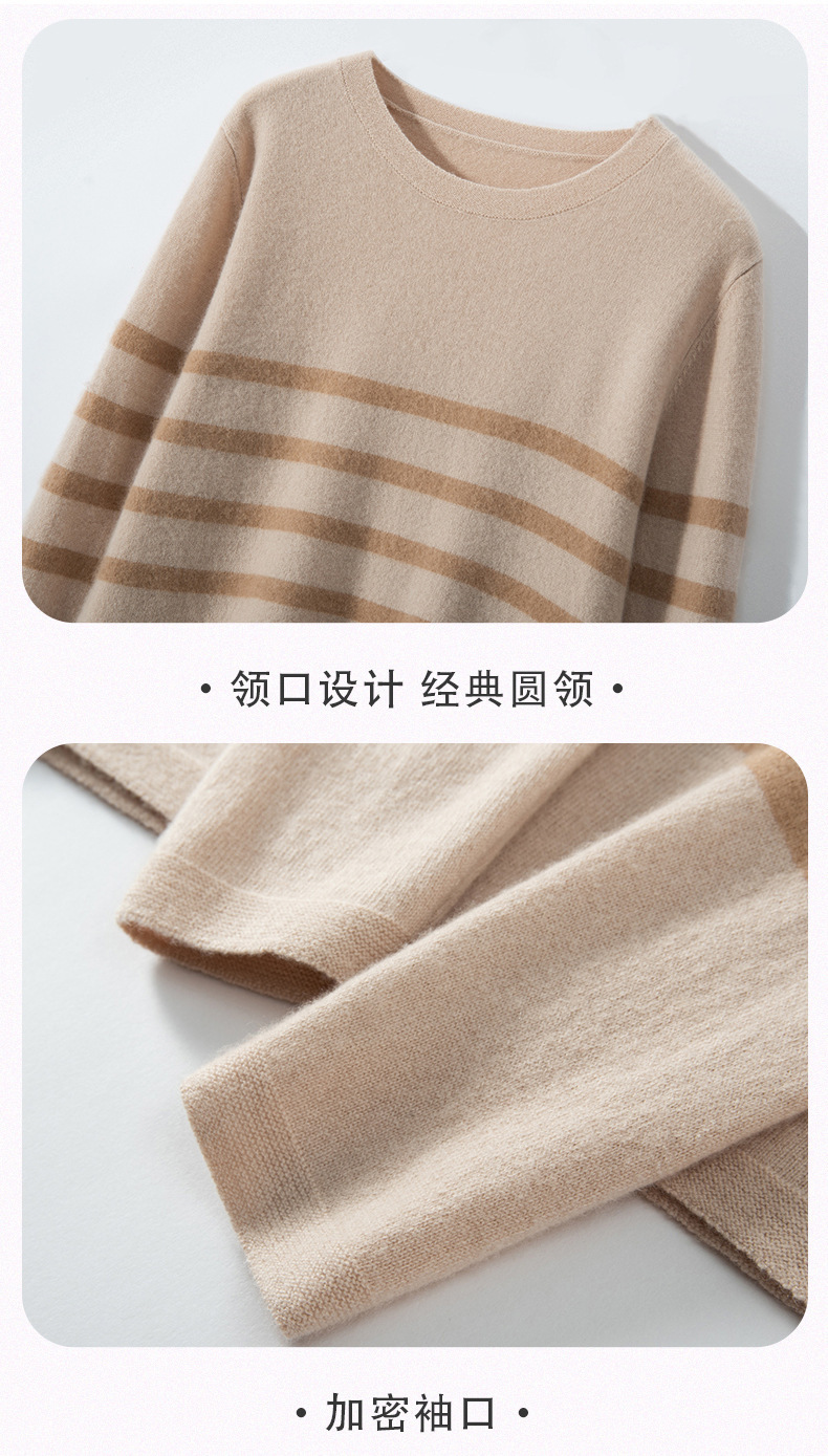 丁摩 35%山羊绒衫圆领条纹羊毛衫衫保暖可外穿针织打底衫NZ-627