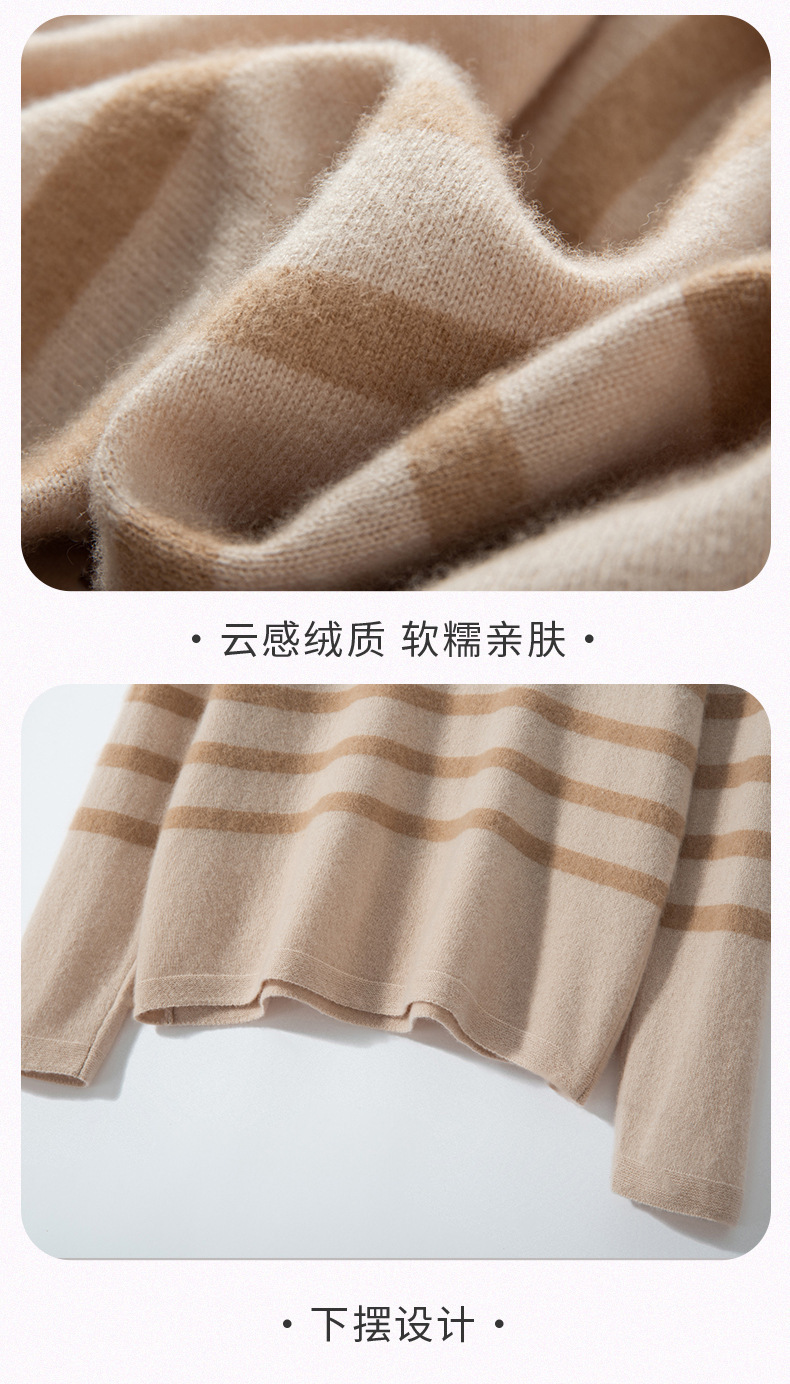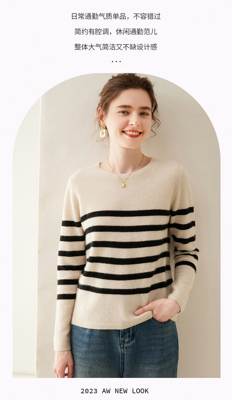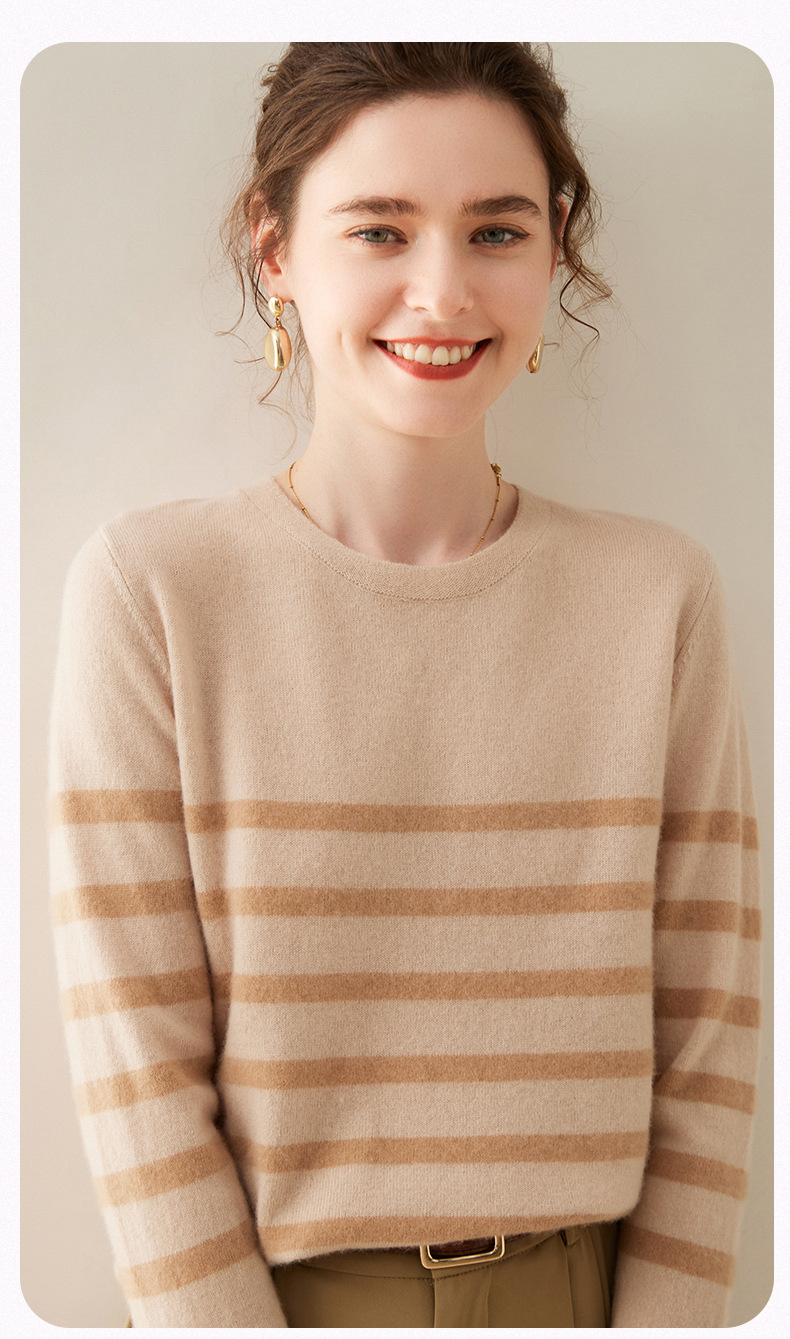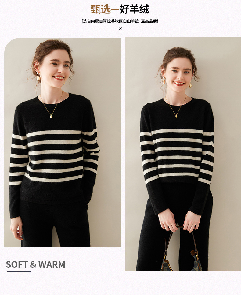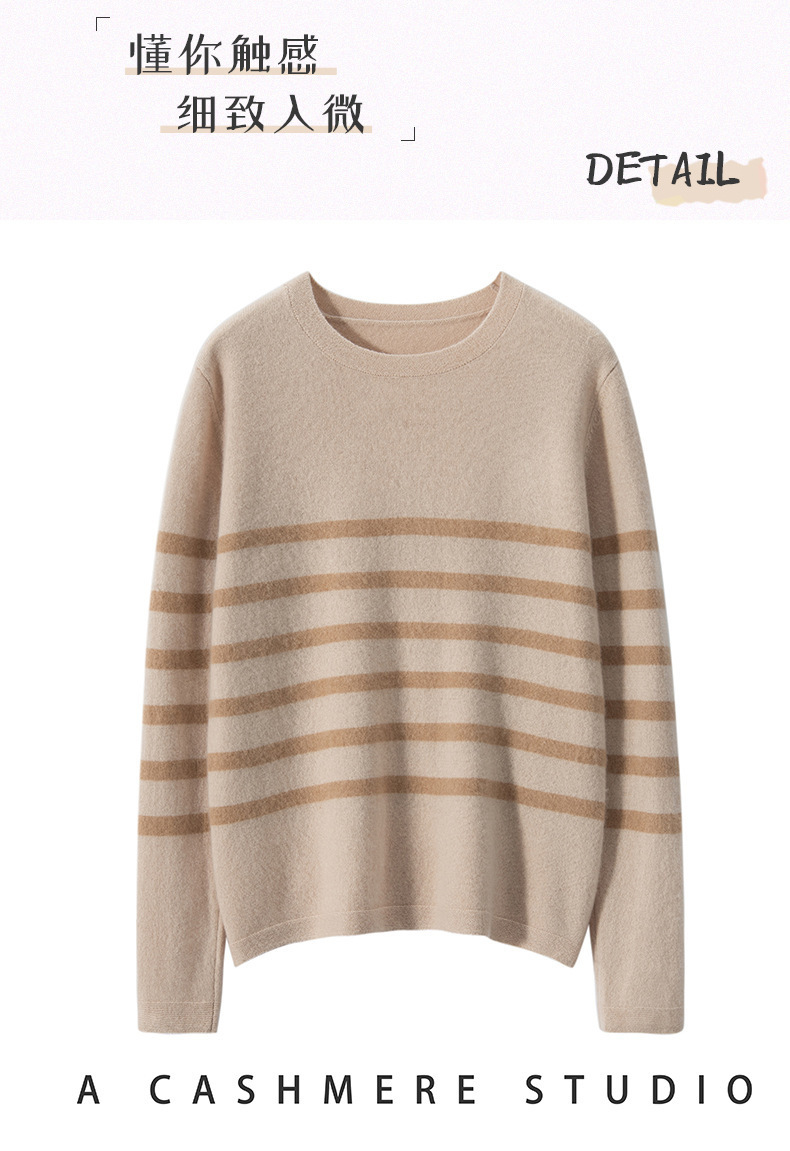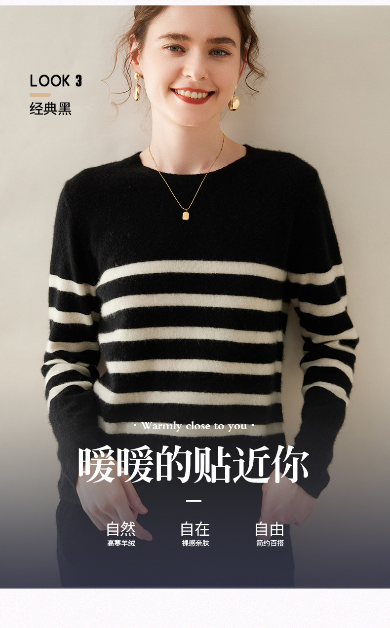 丁摩 35%山羊绒衫圆领条纹羊毛衫衫保暖可外穿针织打底衫NZ-627