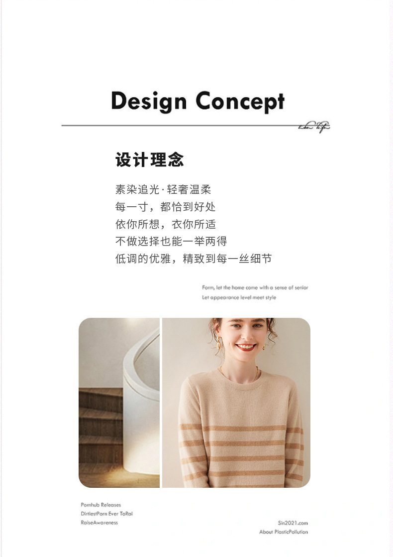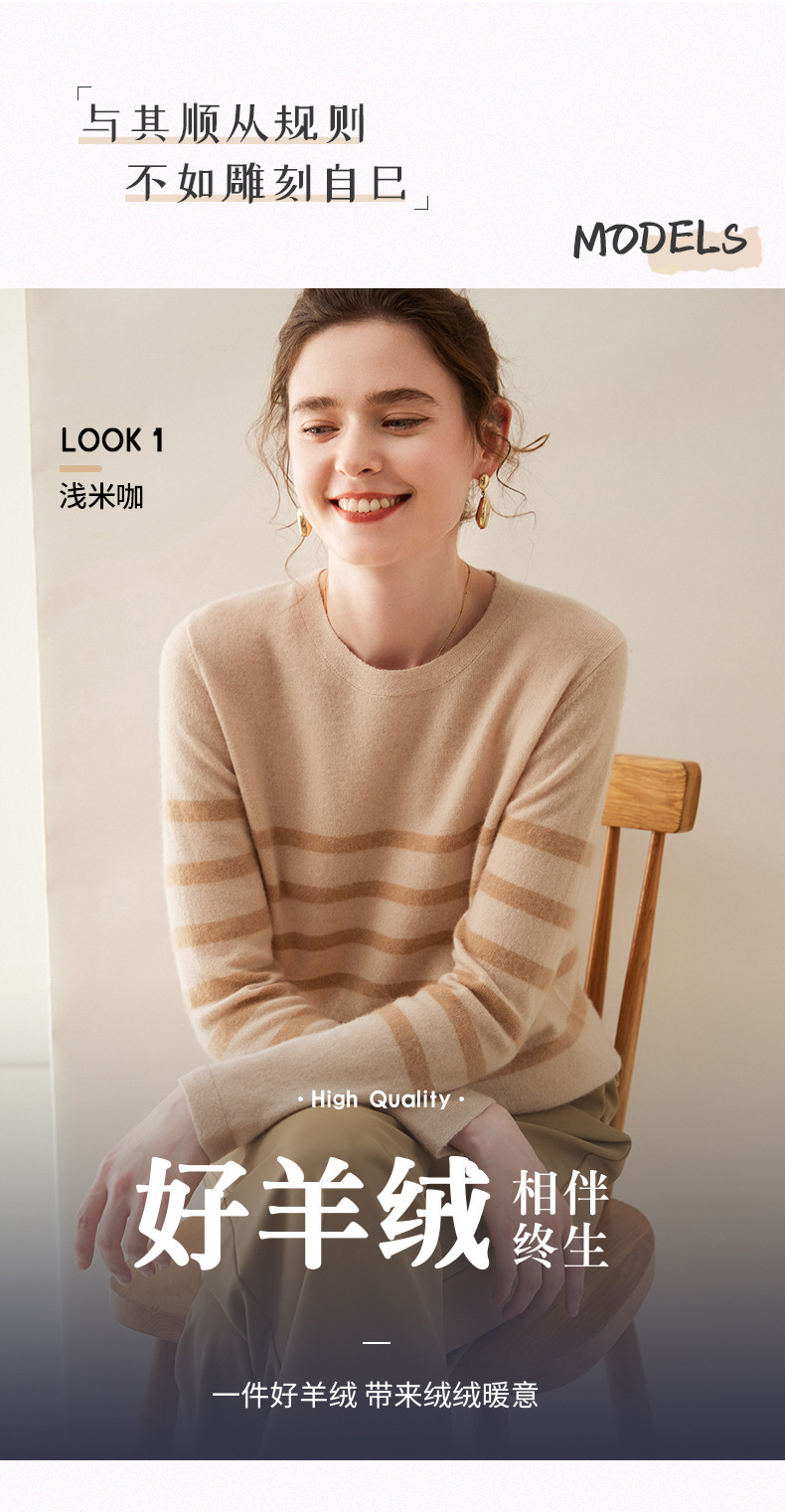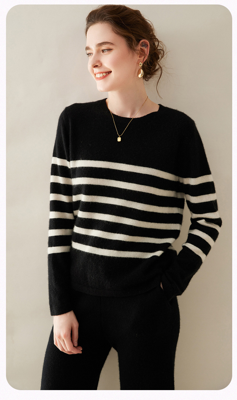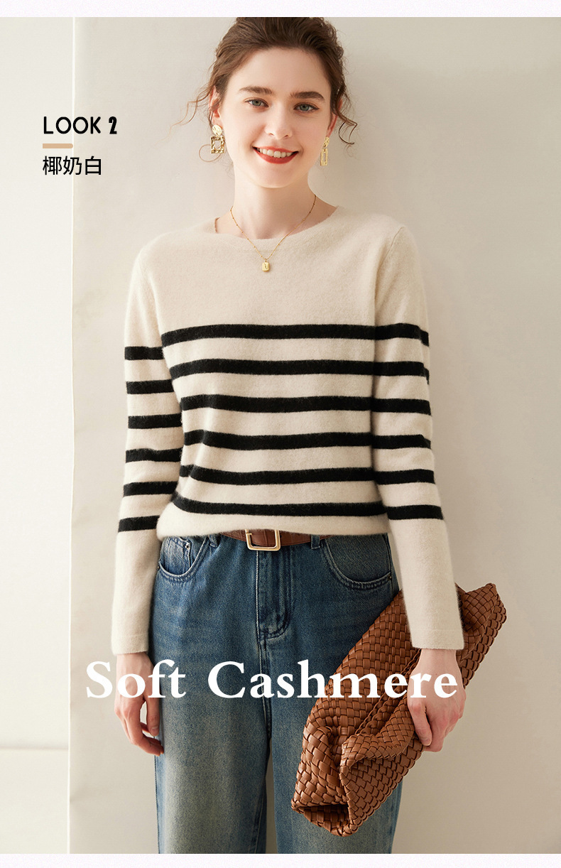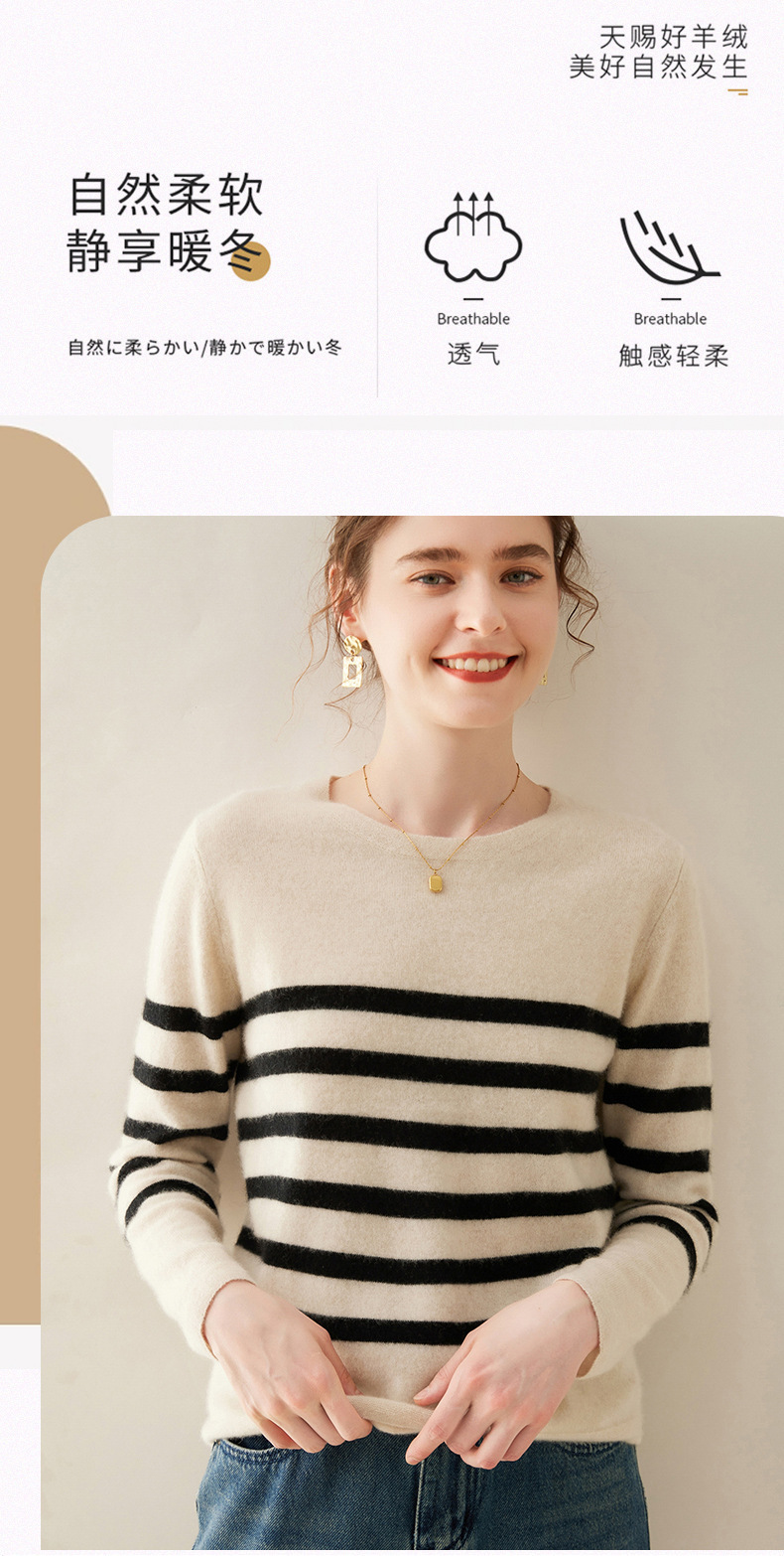 丁摩 35%山羊绒衫圆领条纹羊毛衫衫保暖可外穿针织打底衫NZ-627