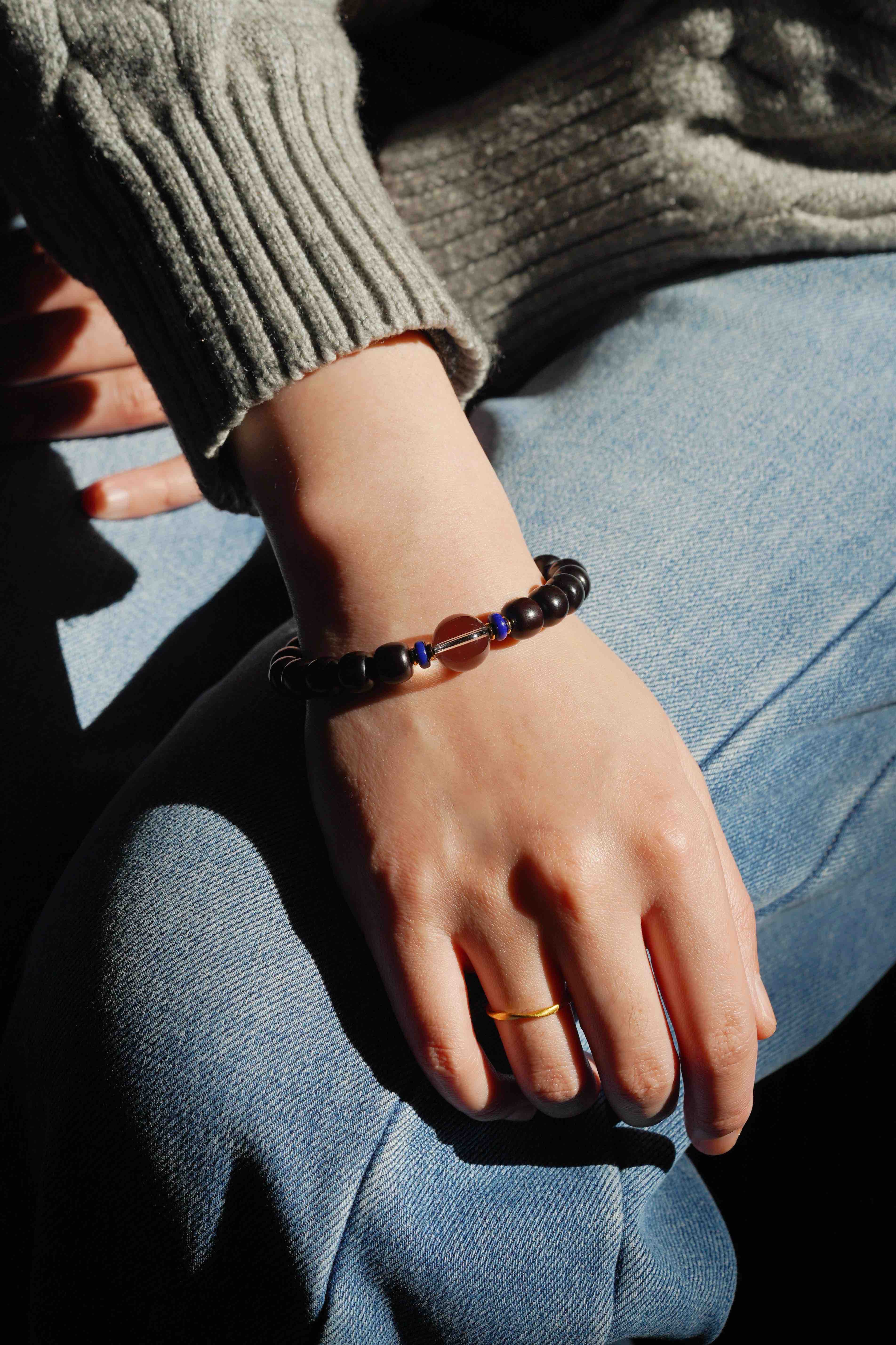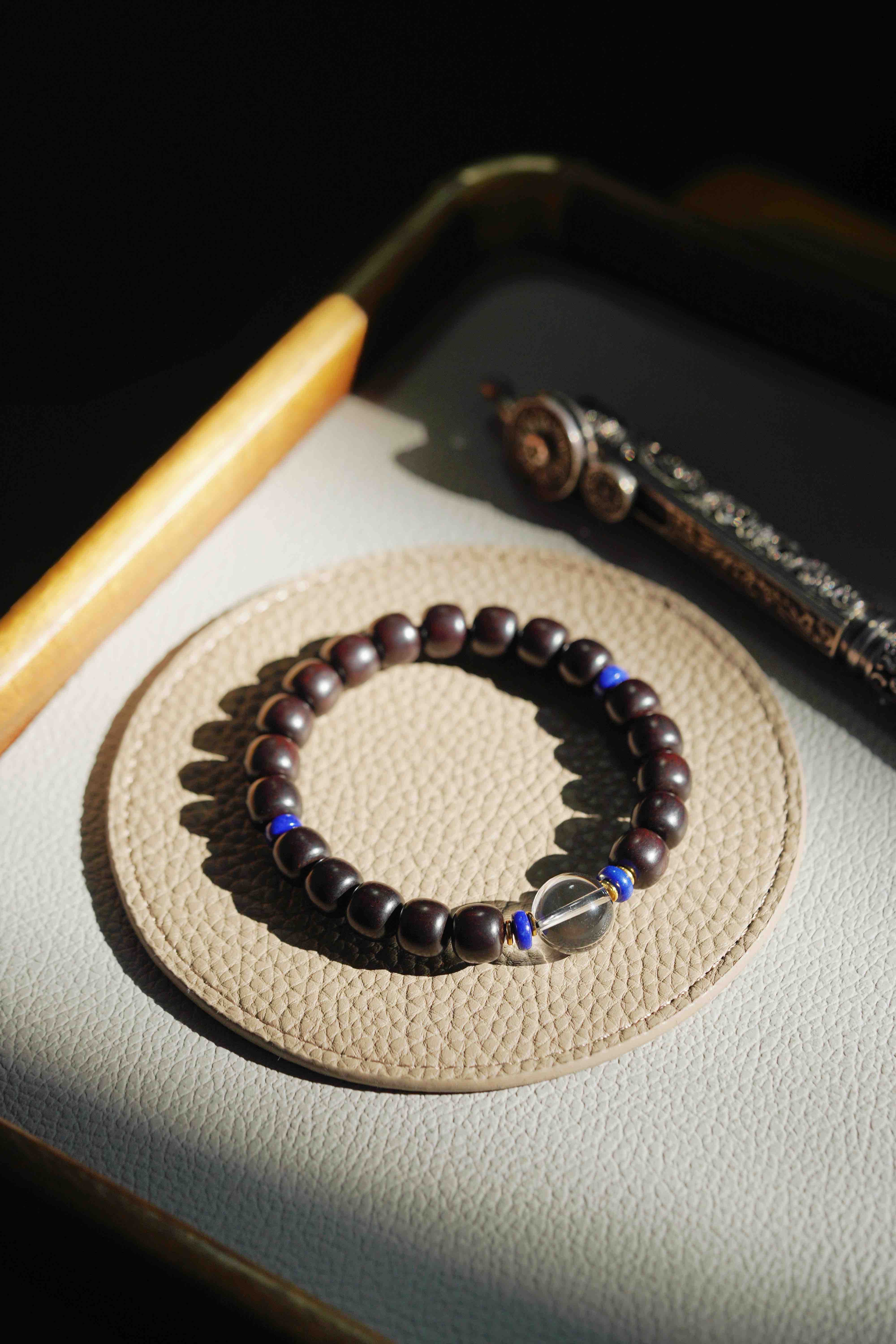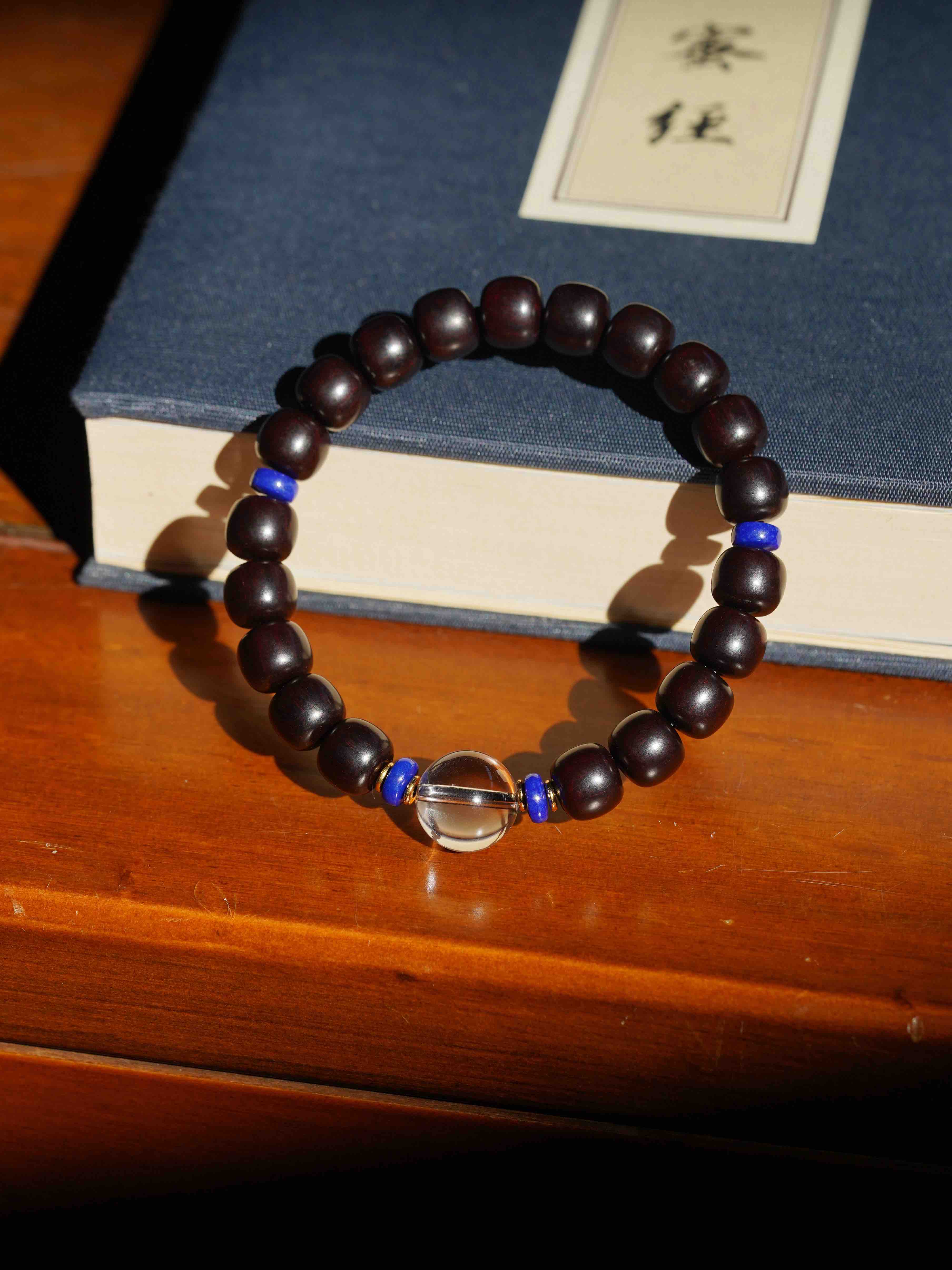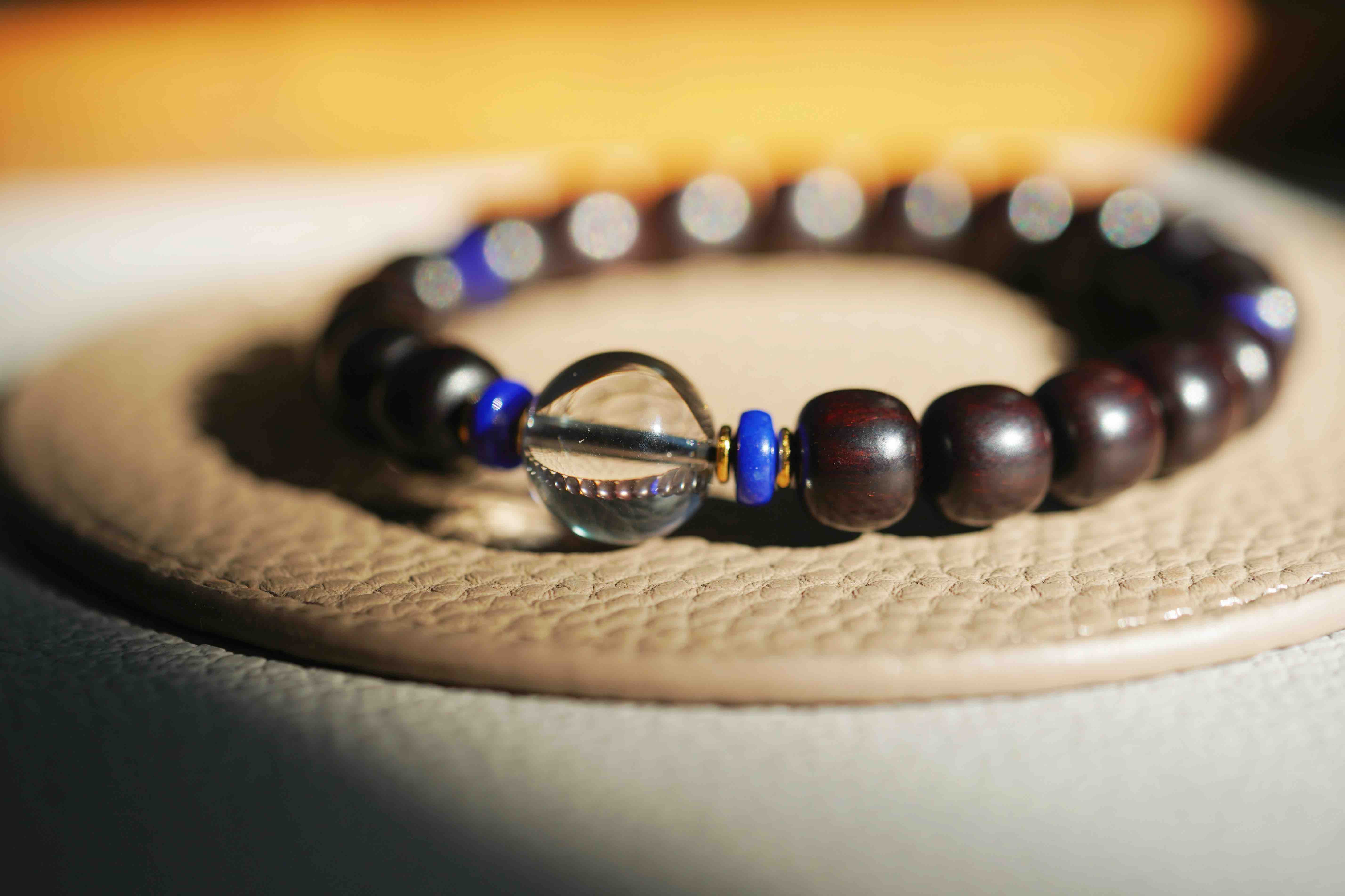 小叶紫檀白水晶手串