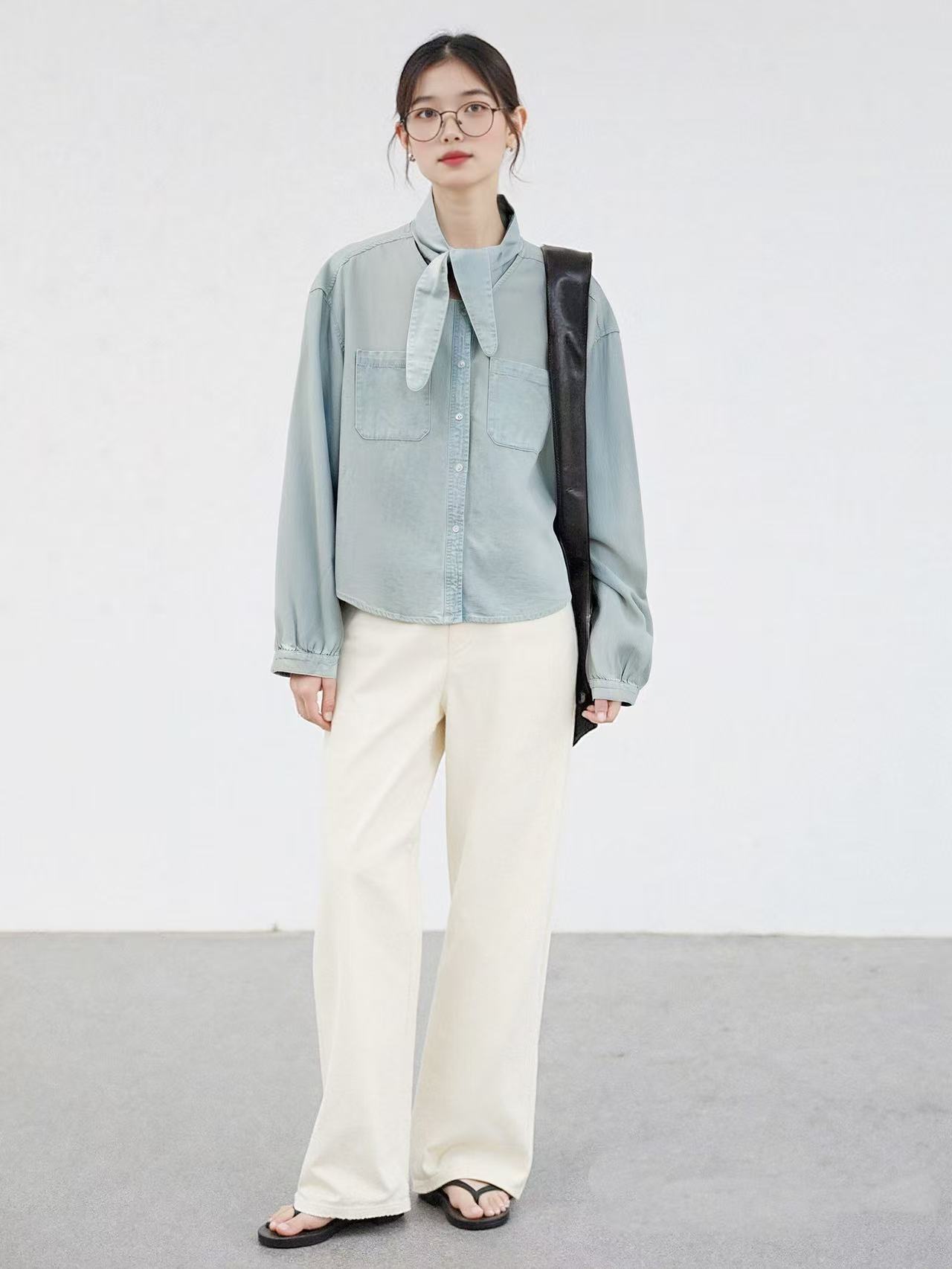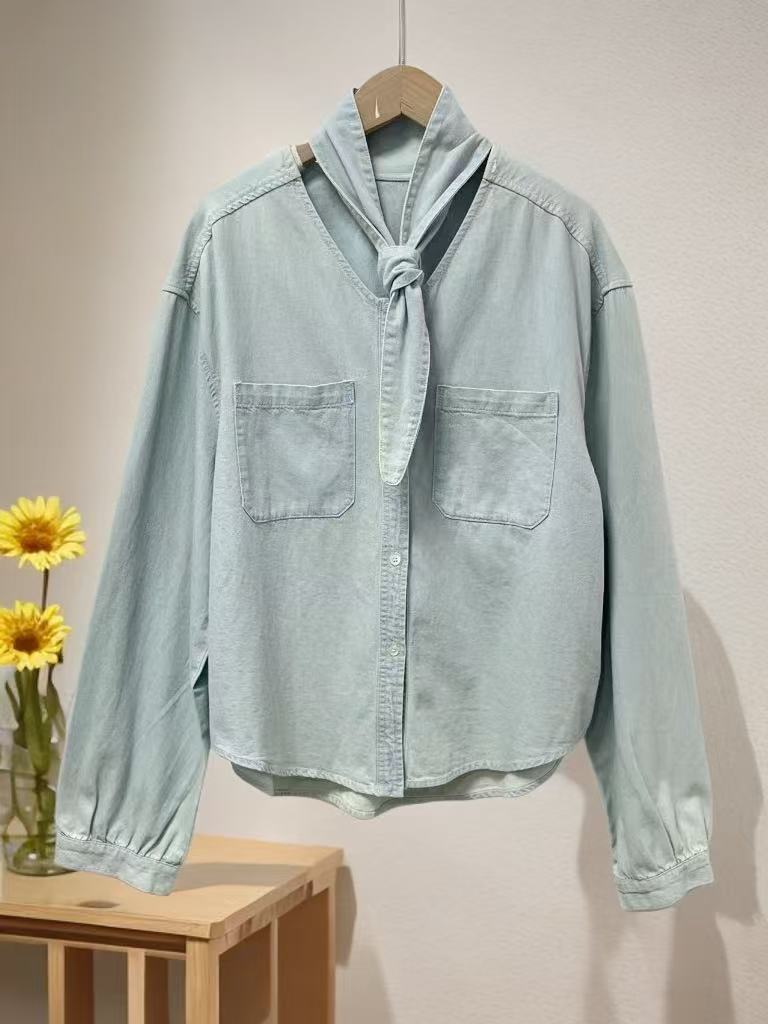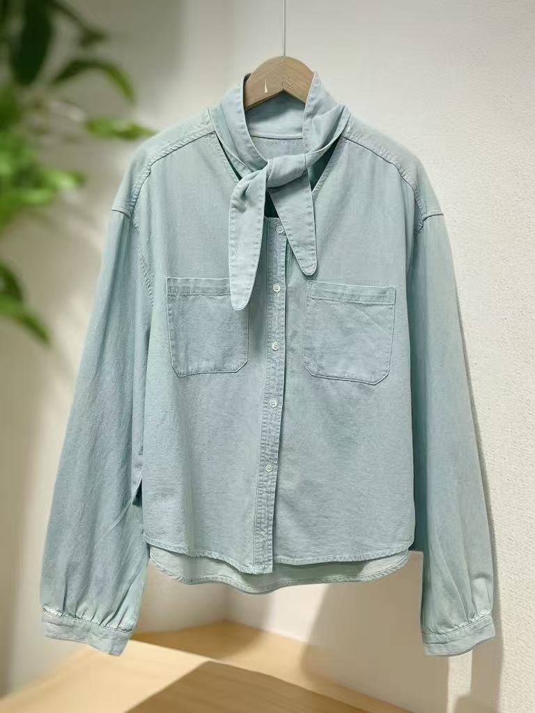 【时装系列】ME TOWN'S 9591(超超软料)做旧水洗牛仔打结外套衬衫M1-4-喜出