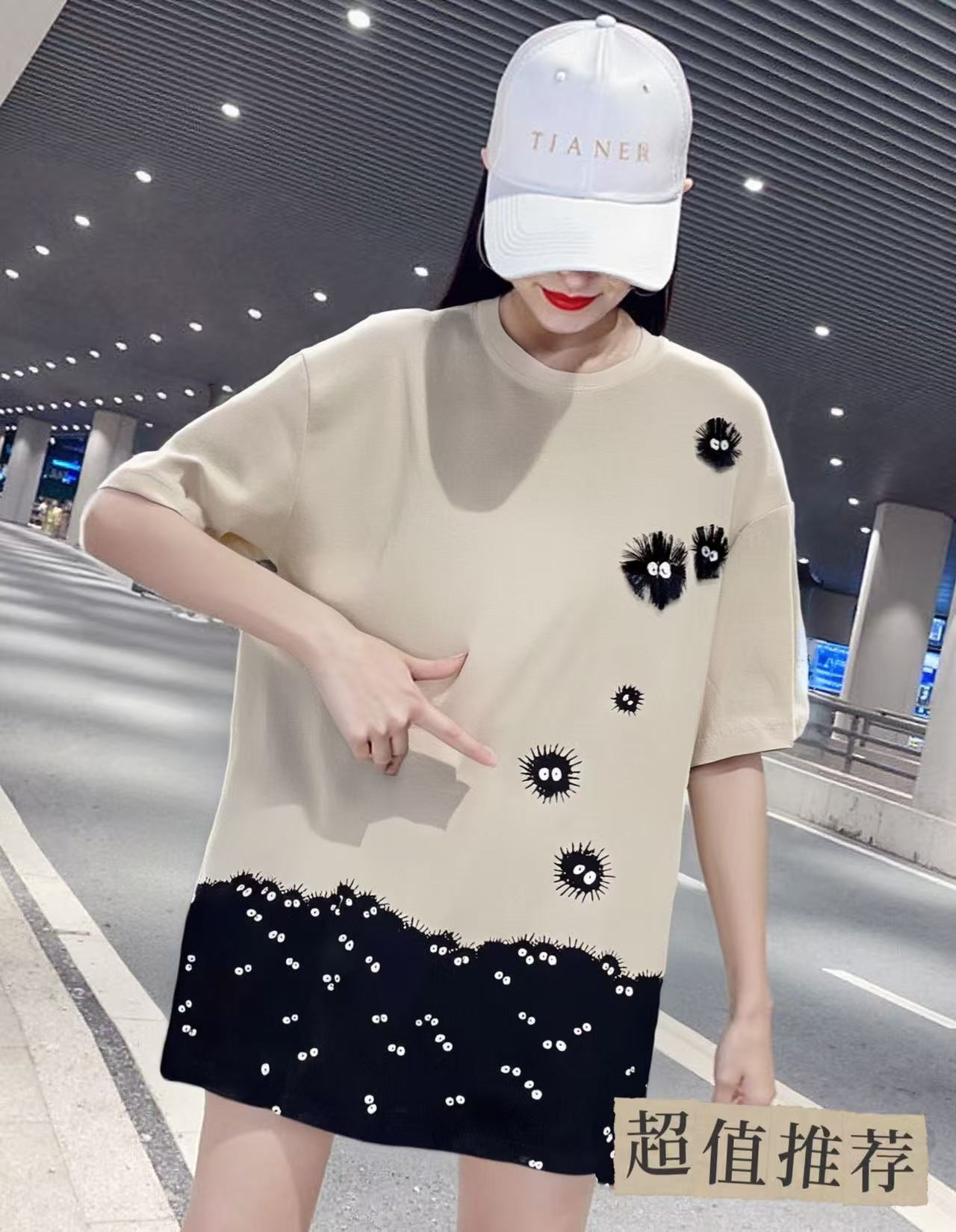今日推荐-潮牌卡其立体流苏绣短袖海胆绣T恤-喜出