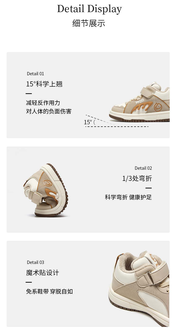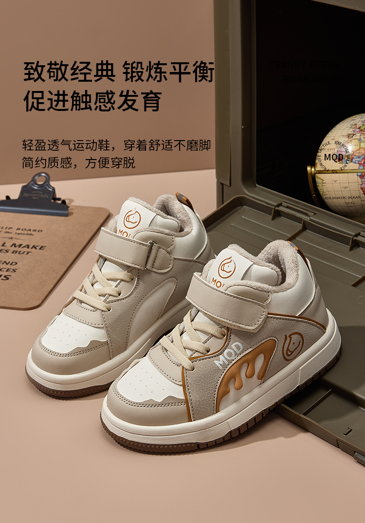 【ZY马骑顿】马骑顿男童冬季棉鞋时尚款中大童二棉皮面透气防滑运动鞋大码