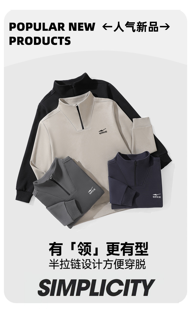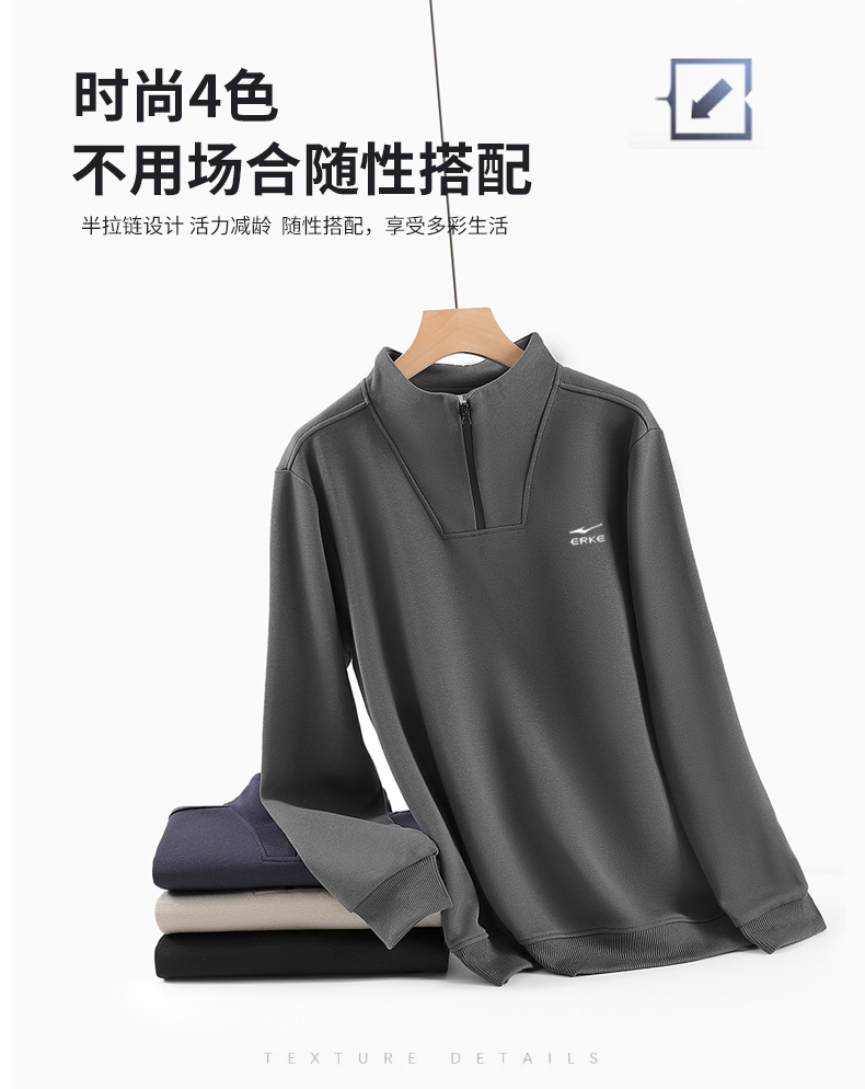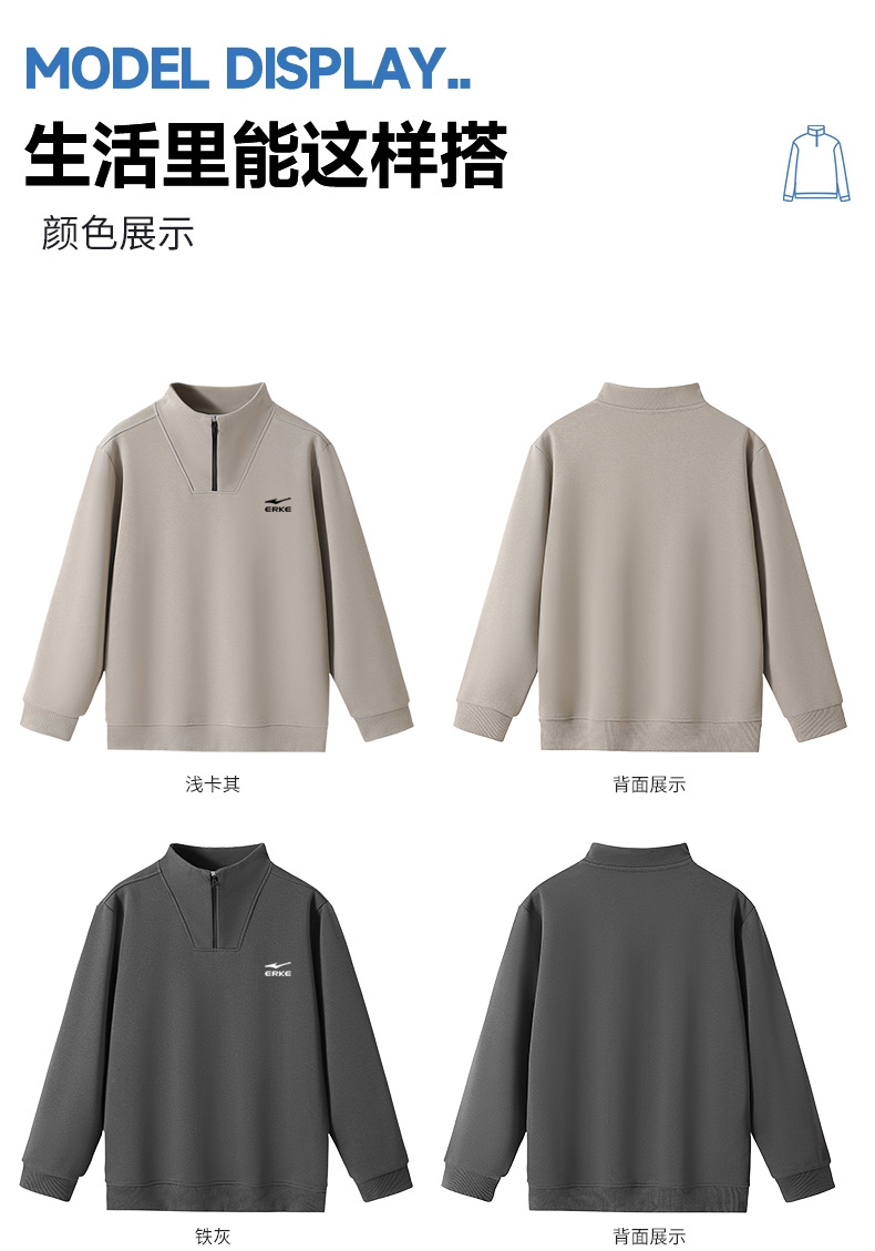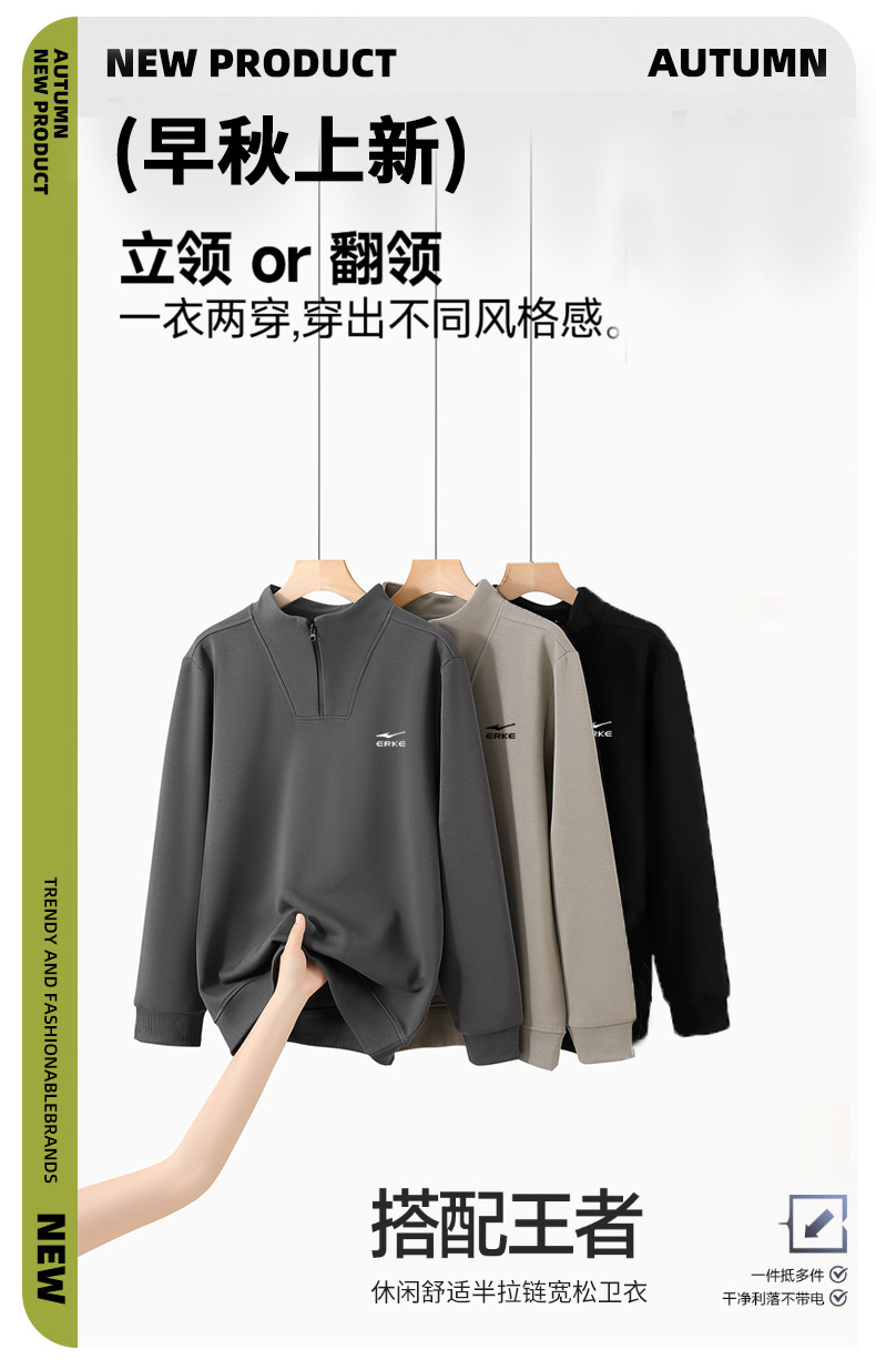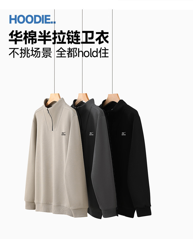 【高密度华棉 挺括有型】鸿星尔克320g华棉半拉链卫衣(EK-XW25689)