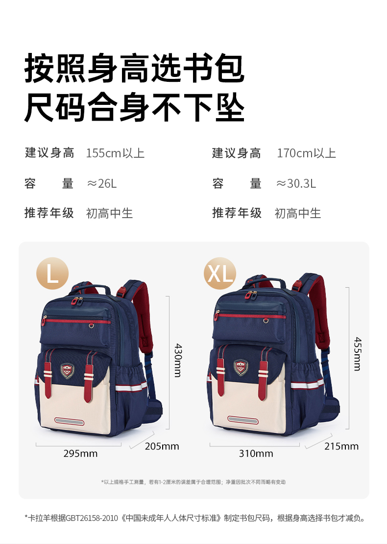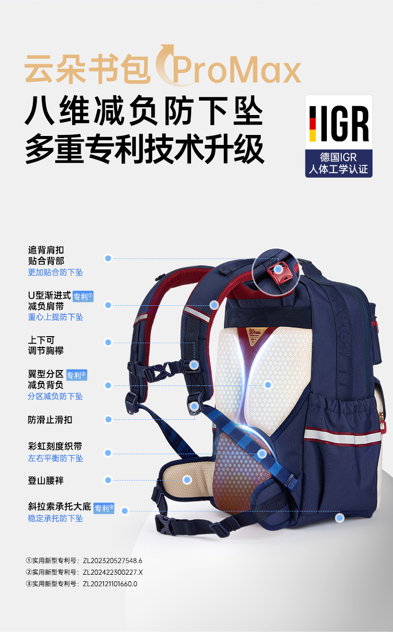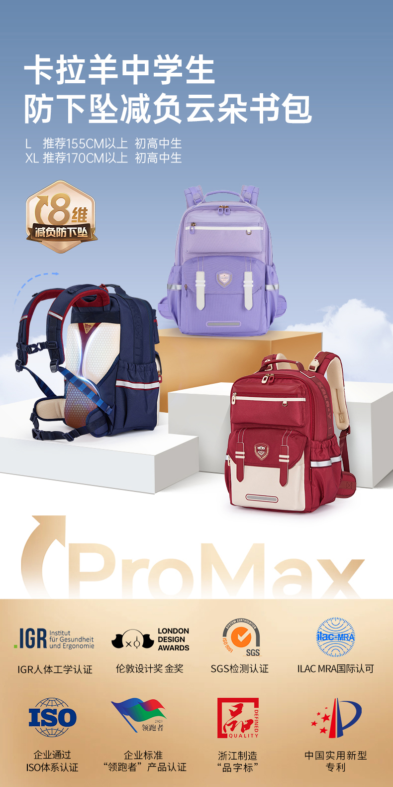 【8维减负ProMax御风版】卡拉羊中学生8维减负ProMax云朵书包CX5033/L
