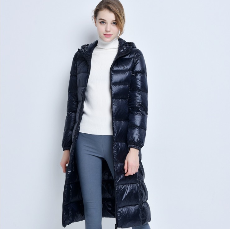 MM-连帽加长款 新款冬装轻薄修身韩版加长款羽绒服女款女超长款过膝连帽