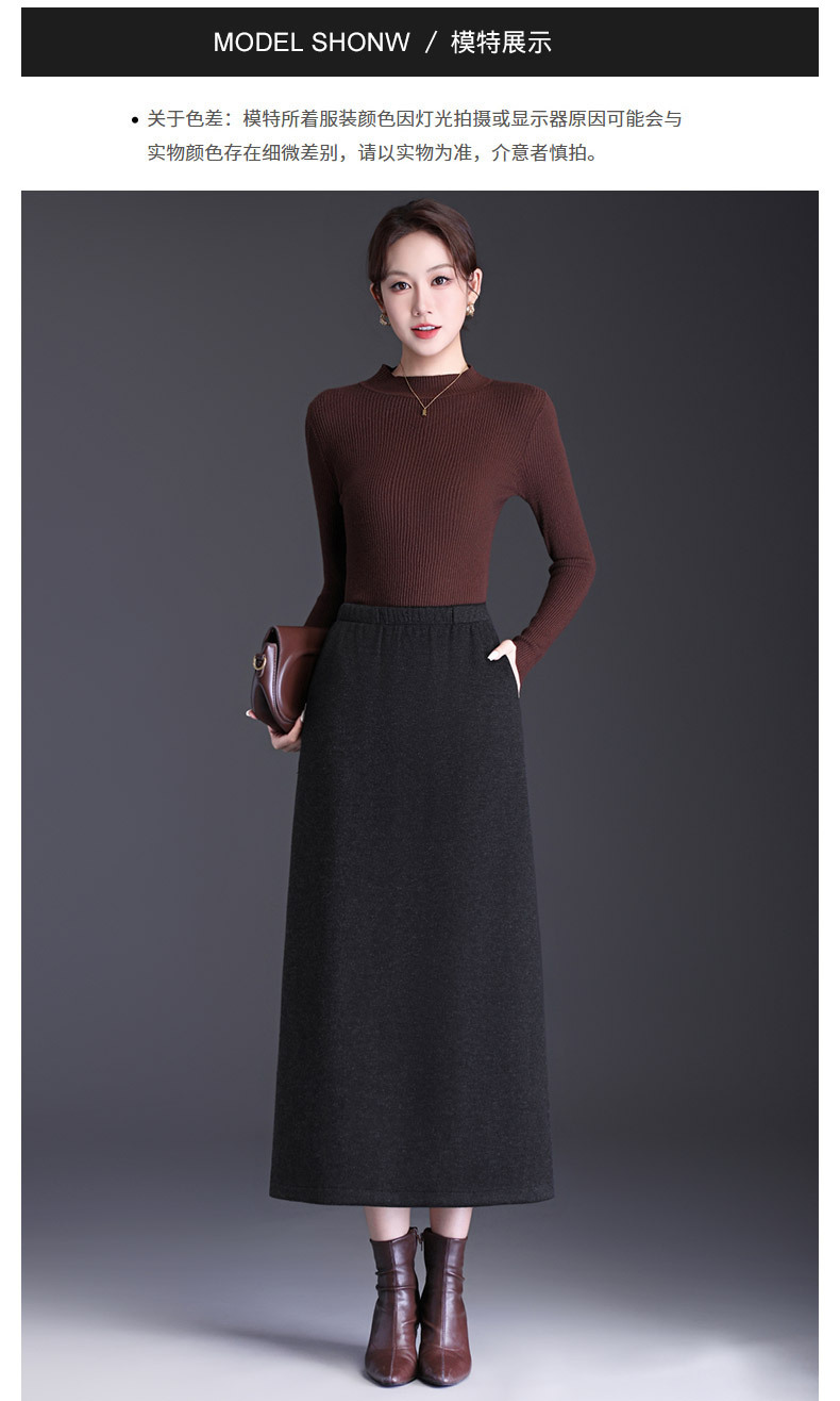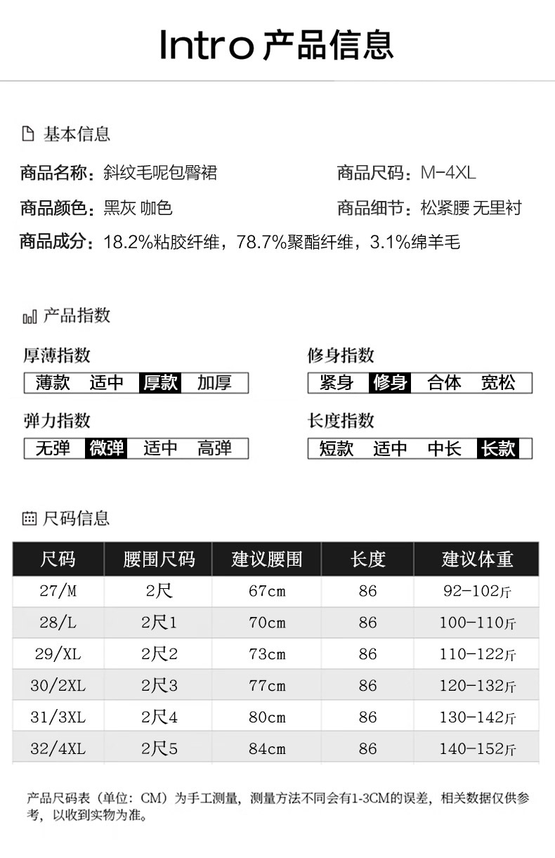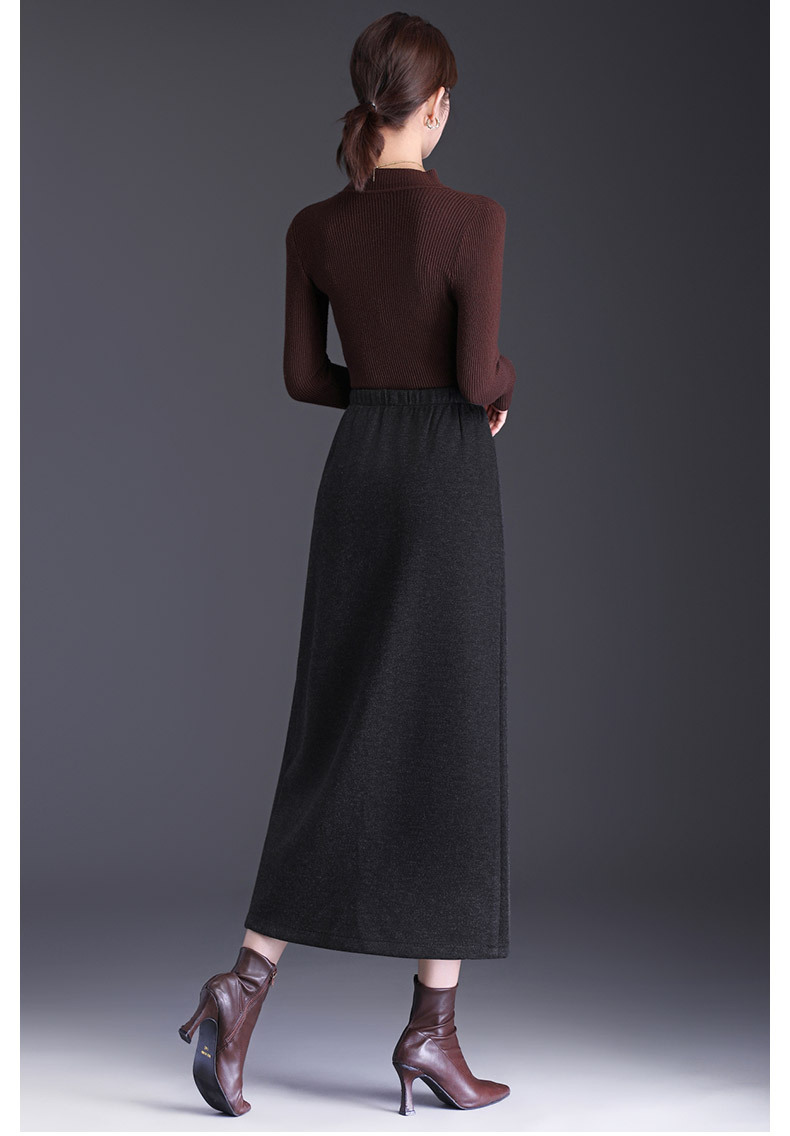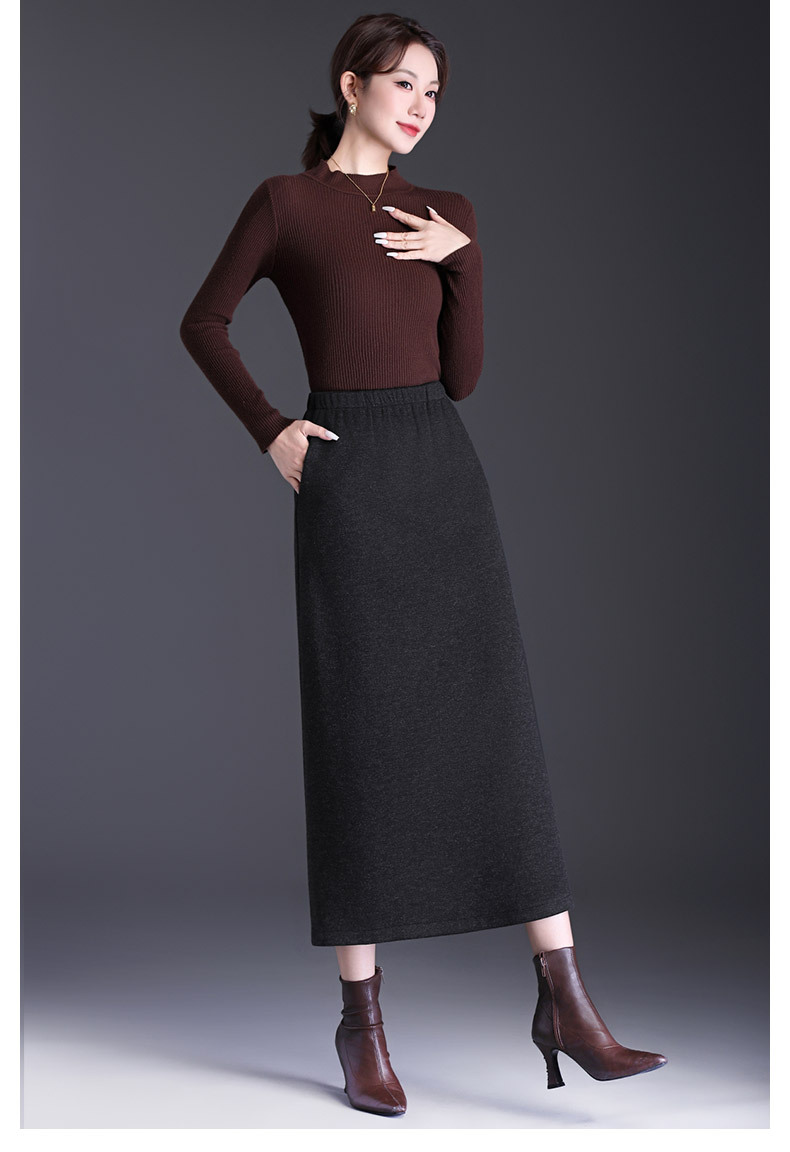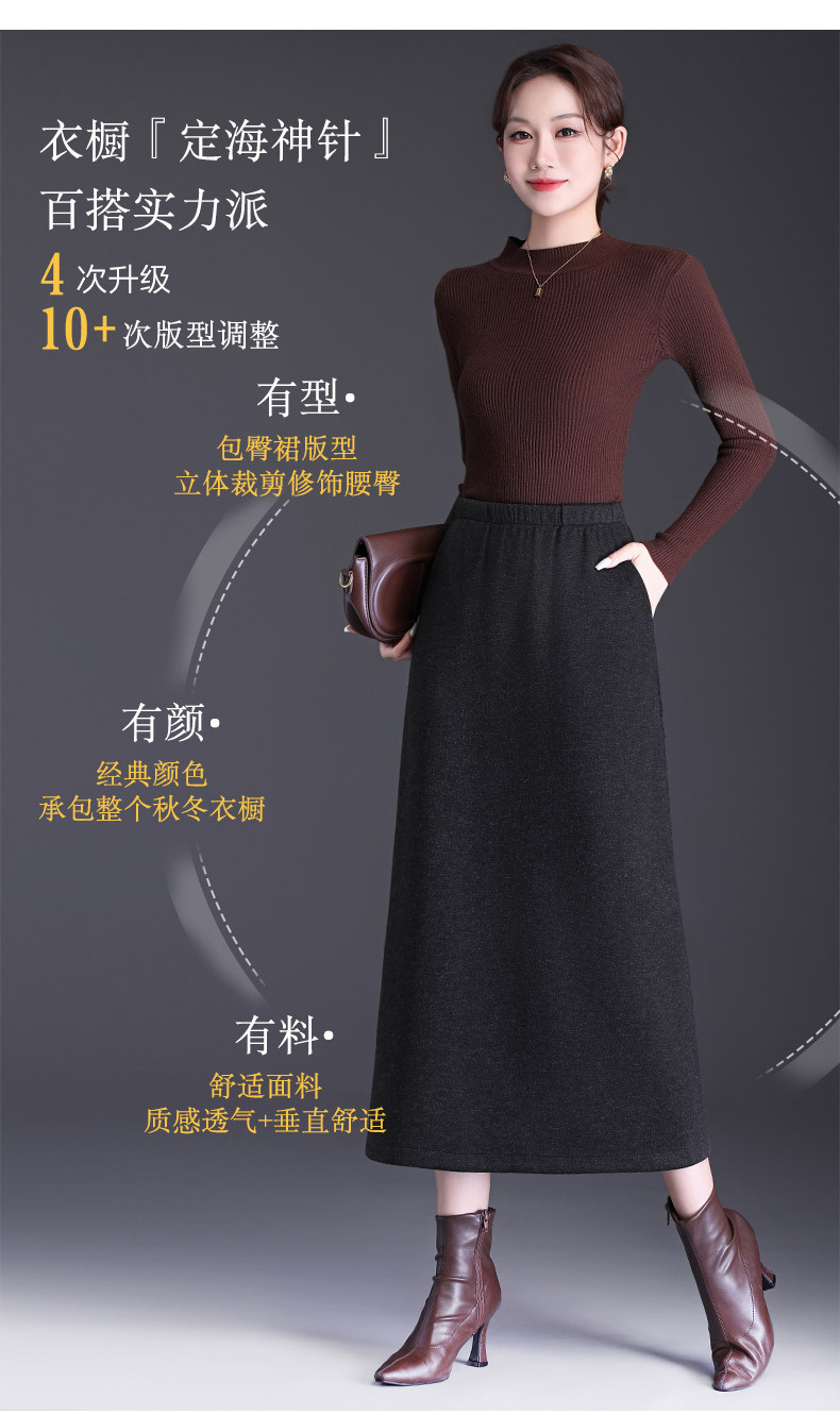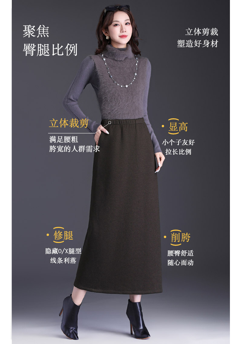 MYX松紧腰长款修身包臀裙职业通勤毛呢半身裙2025冬款显瘦时尚直筒裙