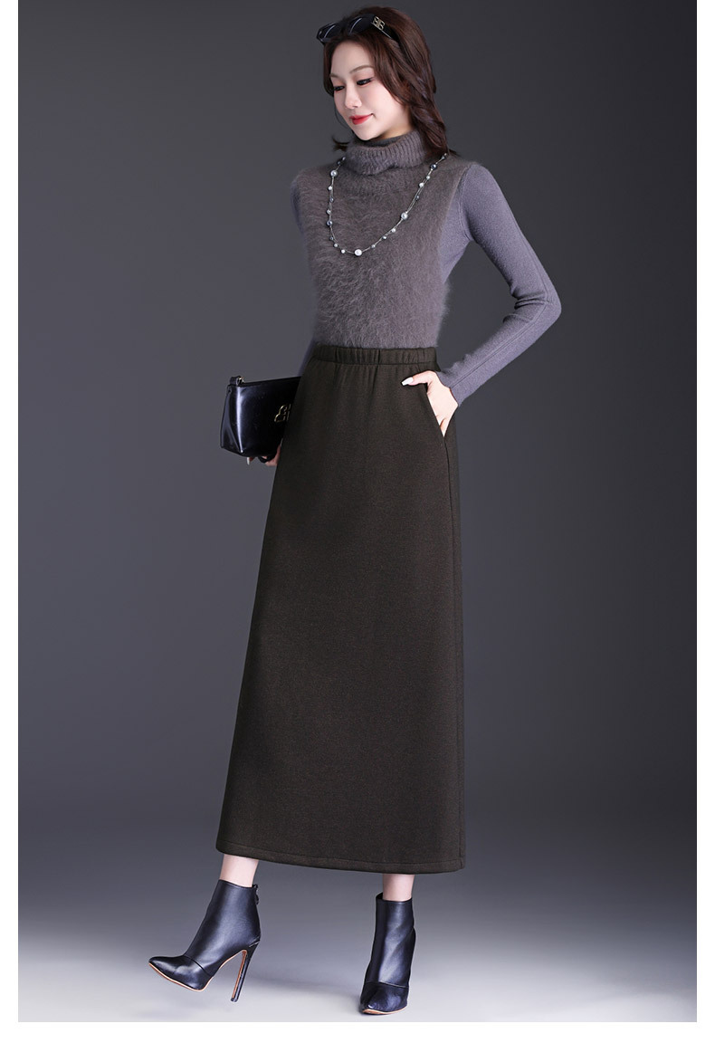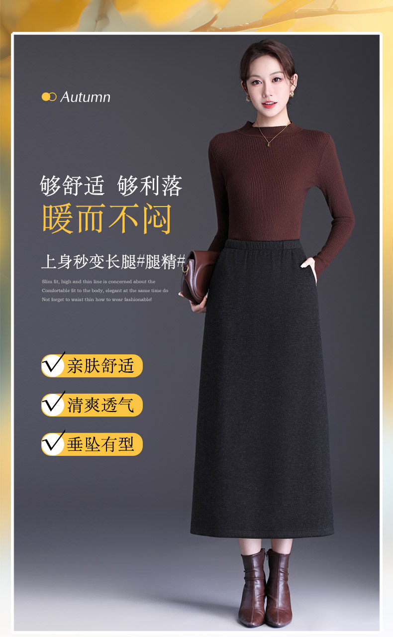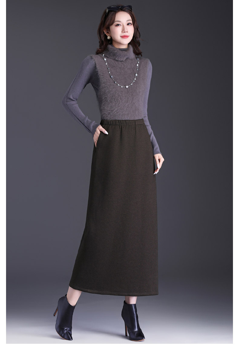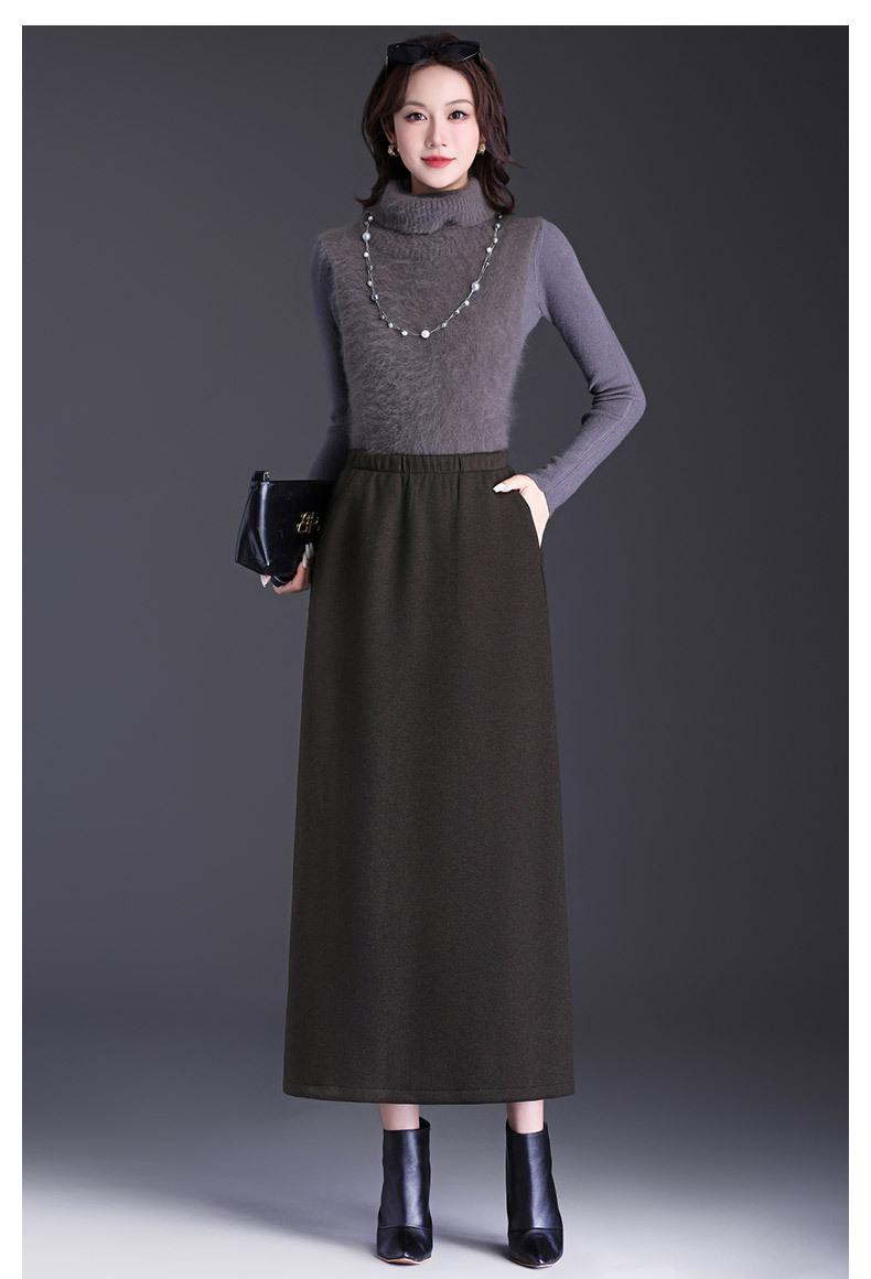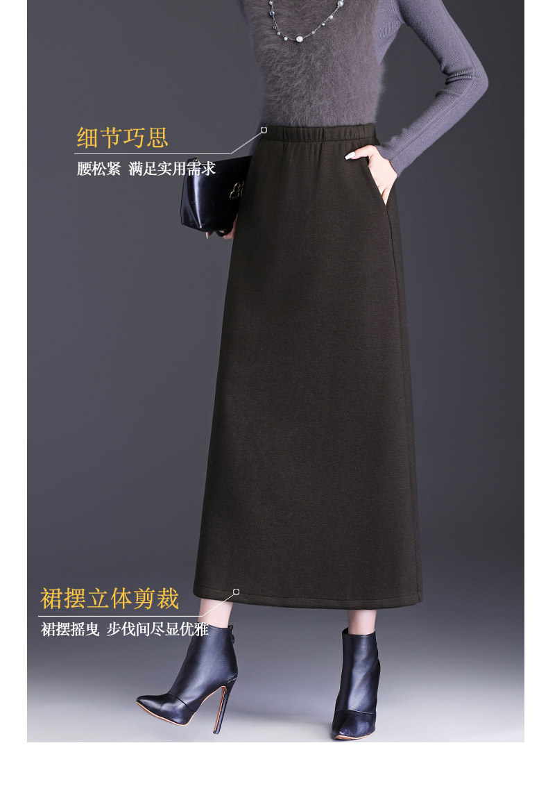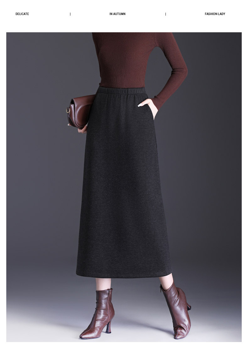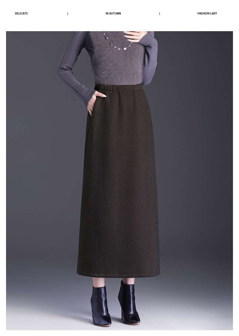MYX松紧腰长款修身包臀裙职业通勤毛呢半身裙2025冬款显瘦时尚直筒裙