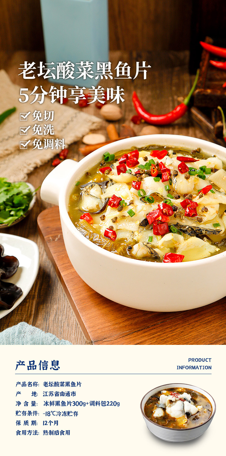 中洋鱼天下老坛酸菜鱼冰鲜黑鱼片470g