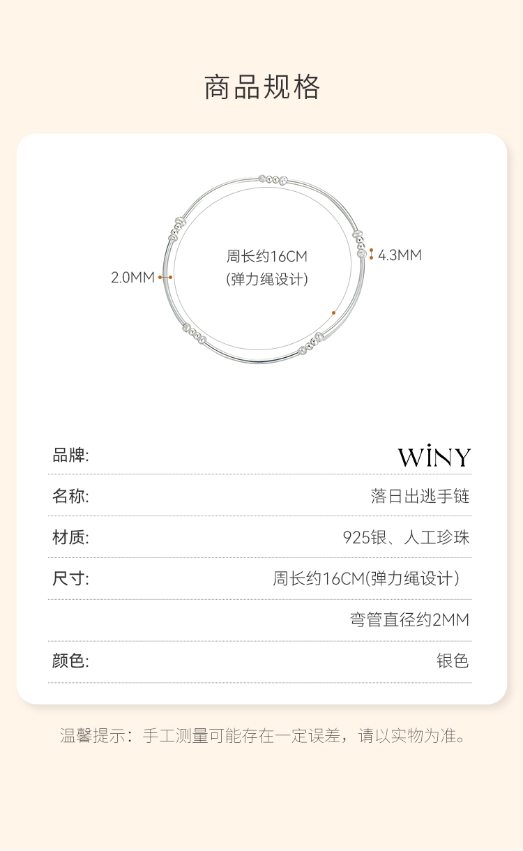 Winy925纯银素圈珍珠手链送女友闺蜜节日生日礼物