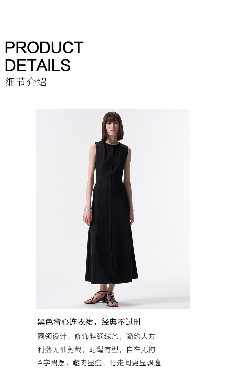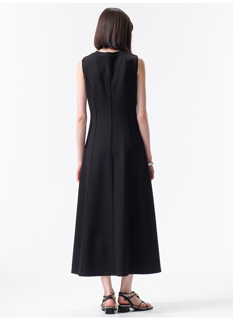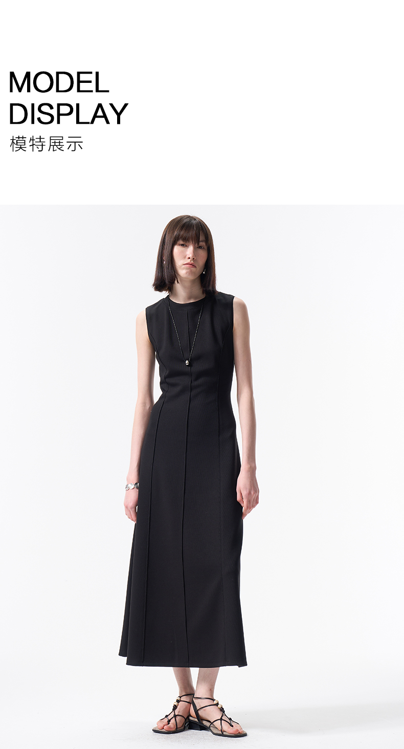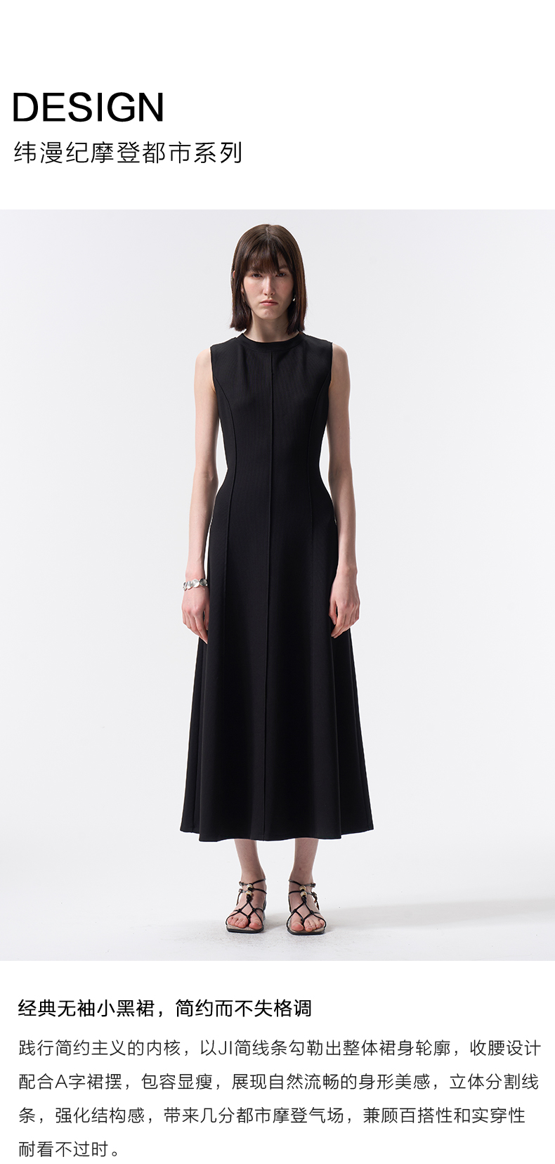 VIMAGE纬漫纪极简背心小黑裙坑条空气层无袖连衣裙2026春季新款V2507202