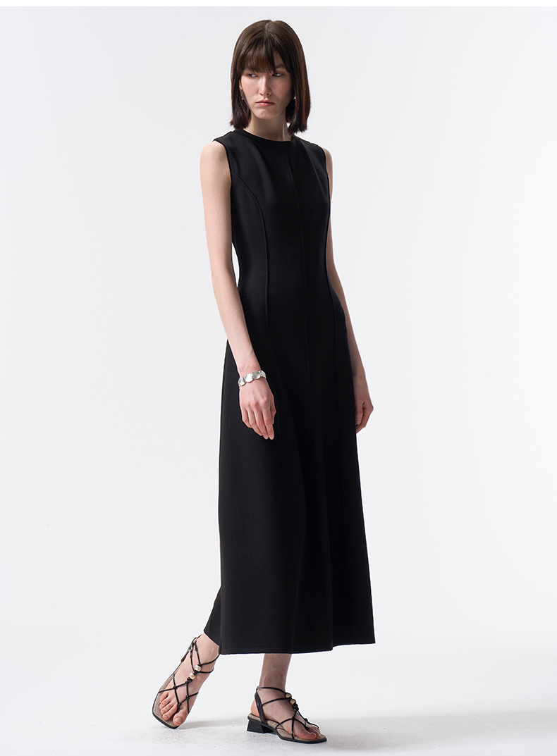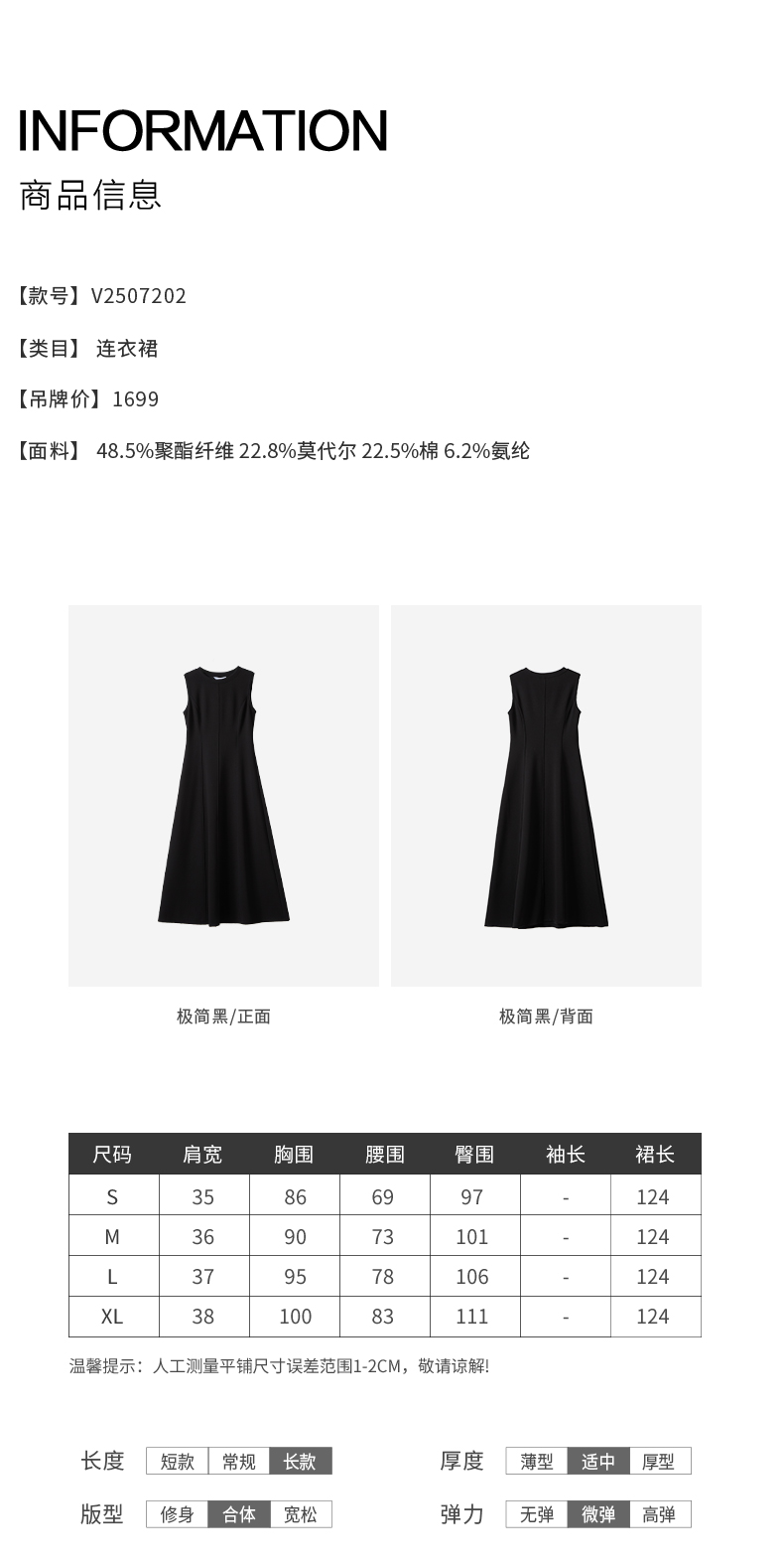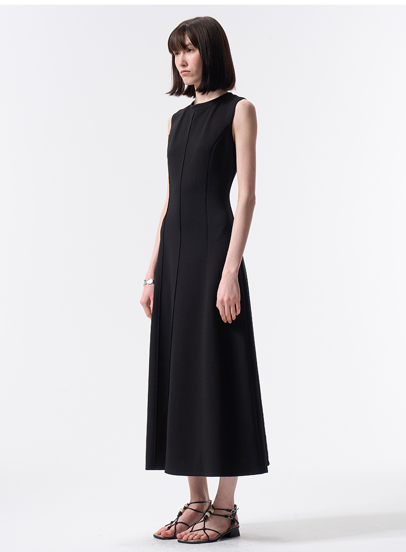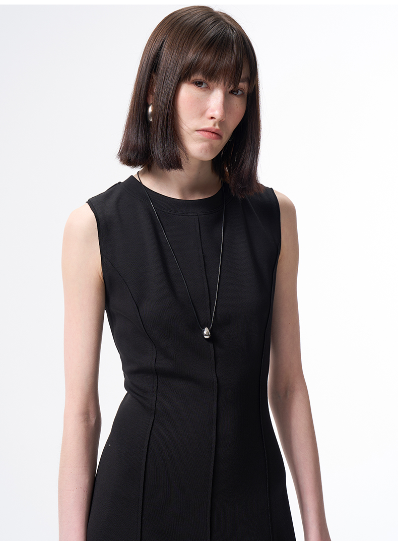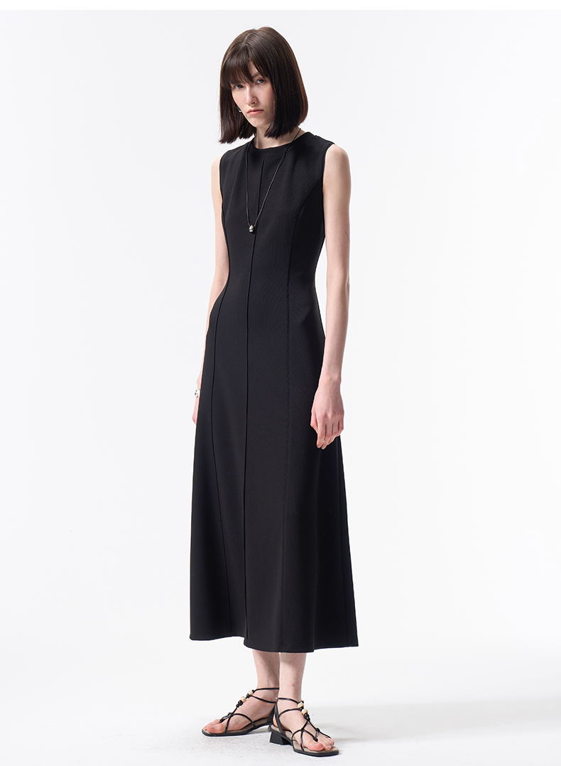 VIMAGE纬漫纪极简背心小黑裙坑条空气层无袖连衣裙2026春季新款V2507202