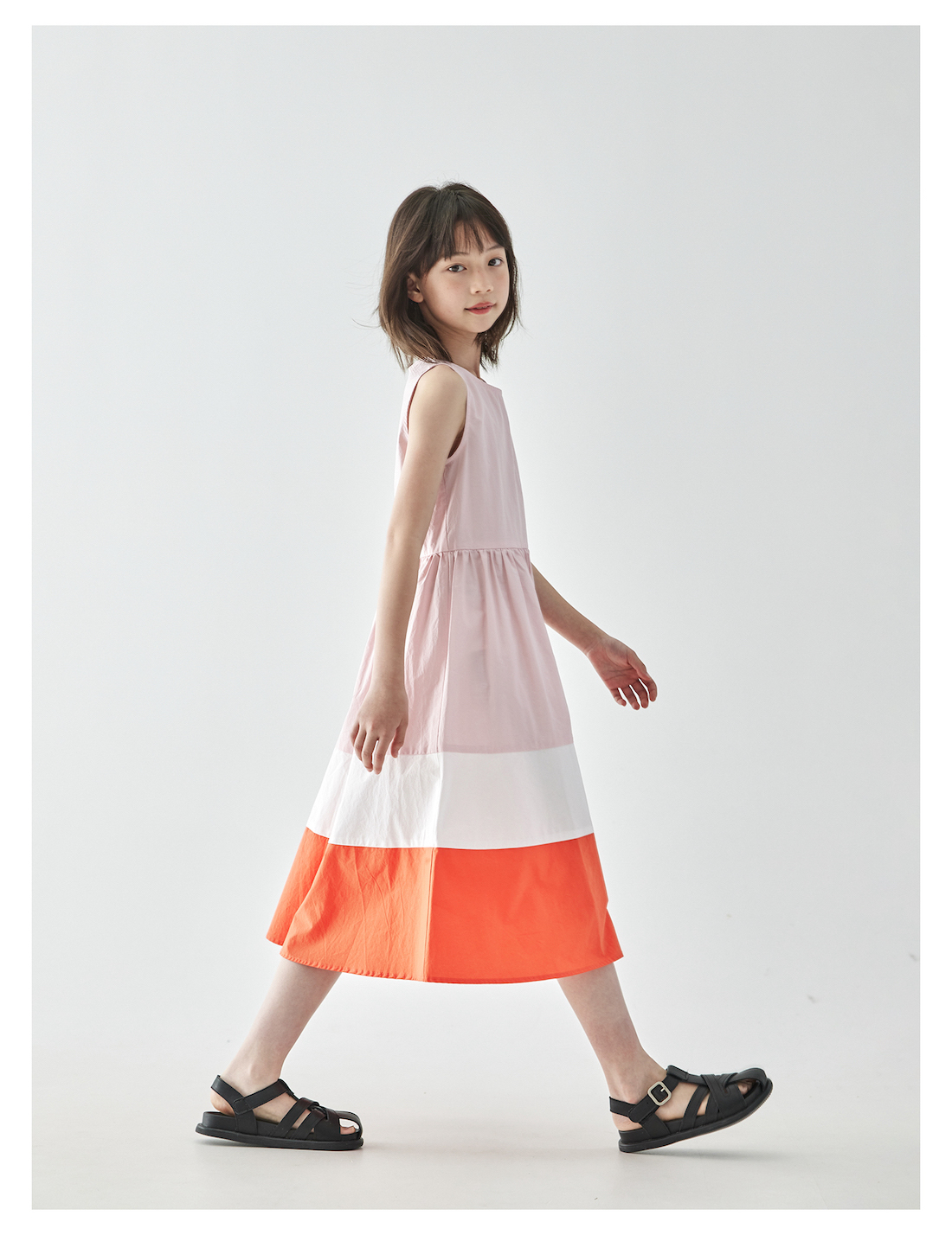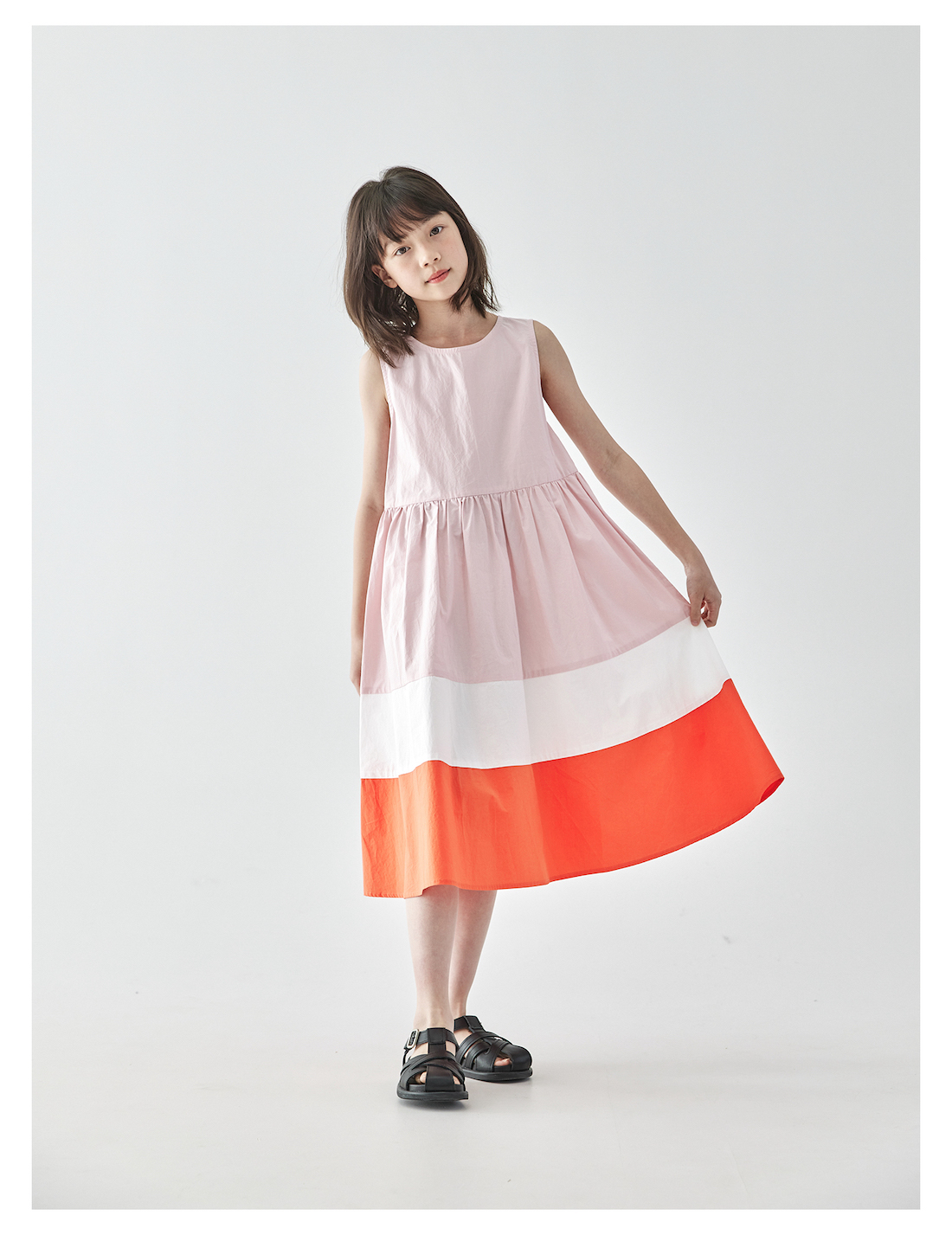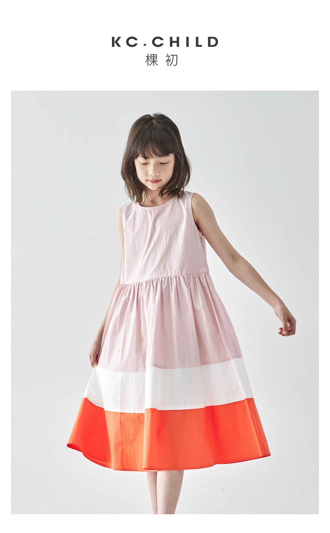 棵初25年夏季新品儿童温柔浪漫无袖连衣裙女童拼接撞色裙摆A字裙