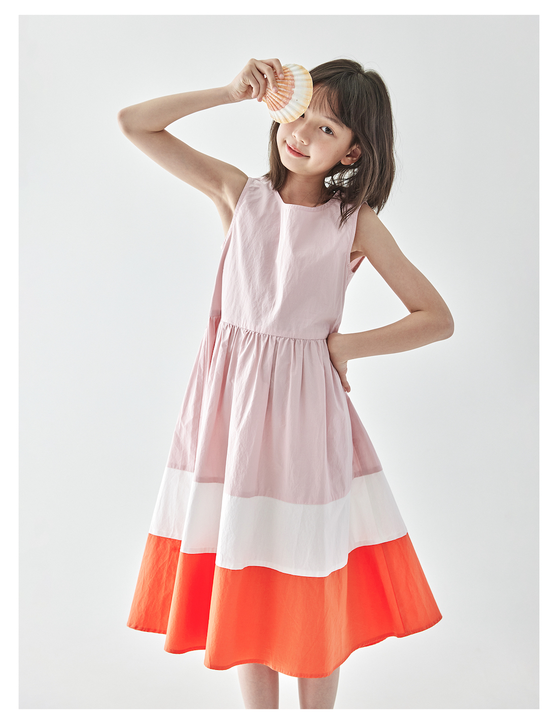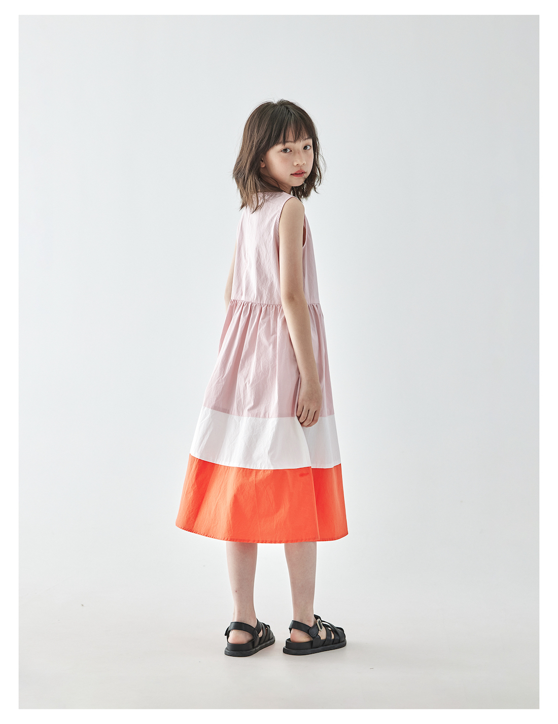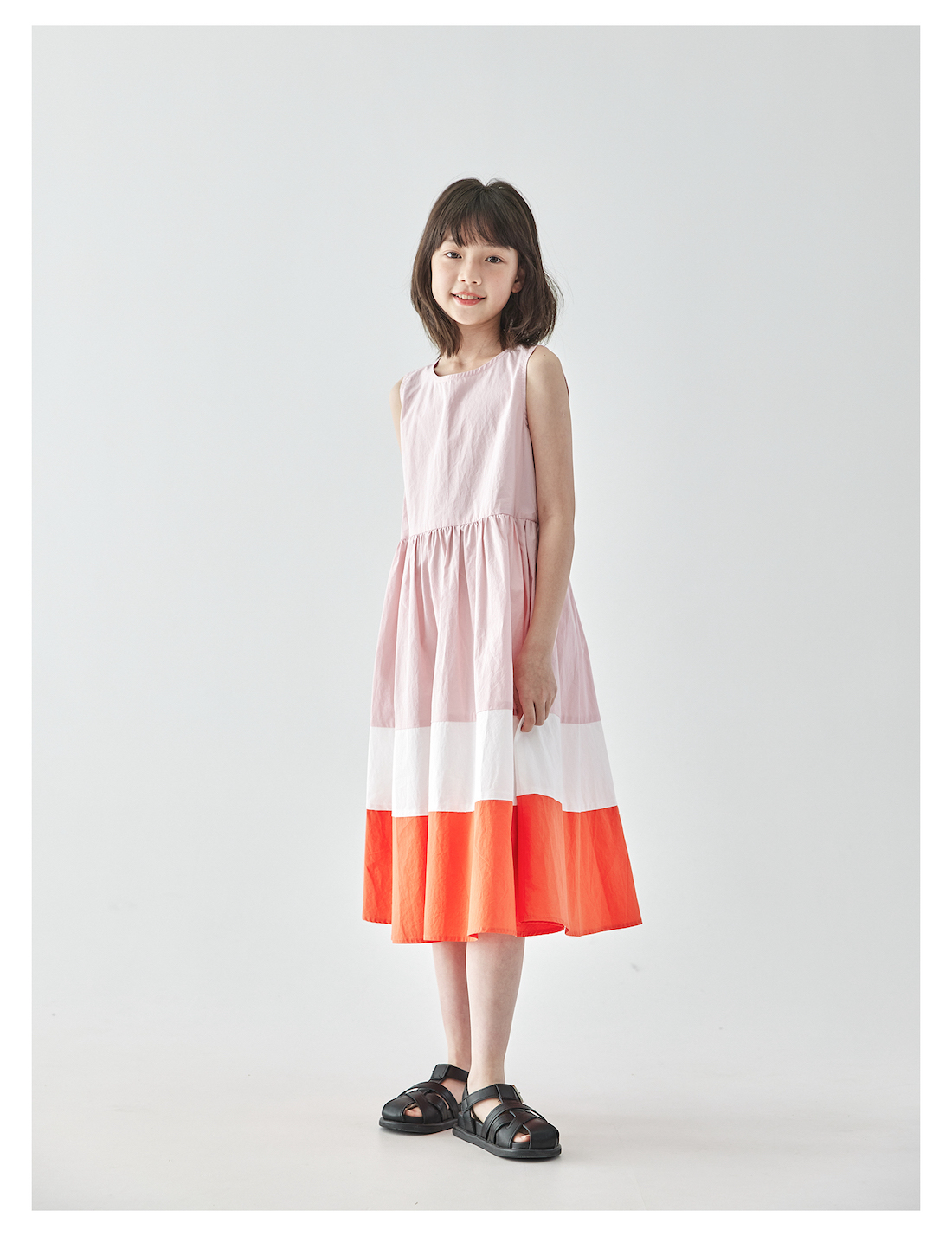 棵初25年夏季新品儿童温柔浪漫无袖连衣裙女童拼接撞色裙摆A字裙