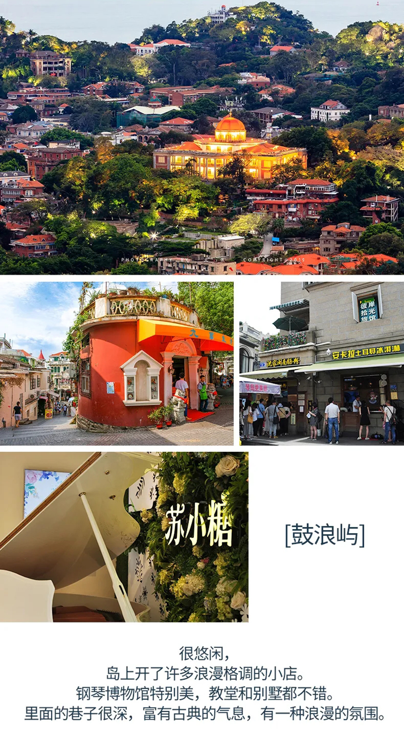 来鼓浪屿不需要攻略,一切都在信步中慢慢体会,大家随意玩到累,逛到爽,感受鼓浪屿上慢慢悠悠的闲暇惬意。