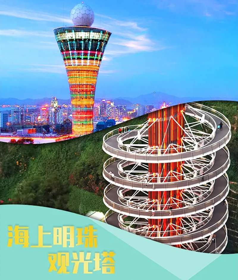 - 晚上入住厦门酒店,放好行李后,我们前往厦门海上明珠观光塔,海上明珠塔内设有国家级非物质文化遗产馆以及360度全景鸟瞰海上花园观景台。登上195米内可俯揽到全世界第二,全亚洲第一的悬浮式吊桥海沧大桥,厦门最美丽的白鹭洲公园,中国的第一个台商投资区湖里区,小三通邮轮码头。