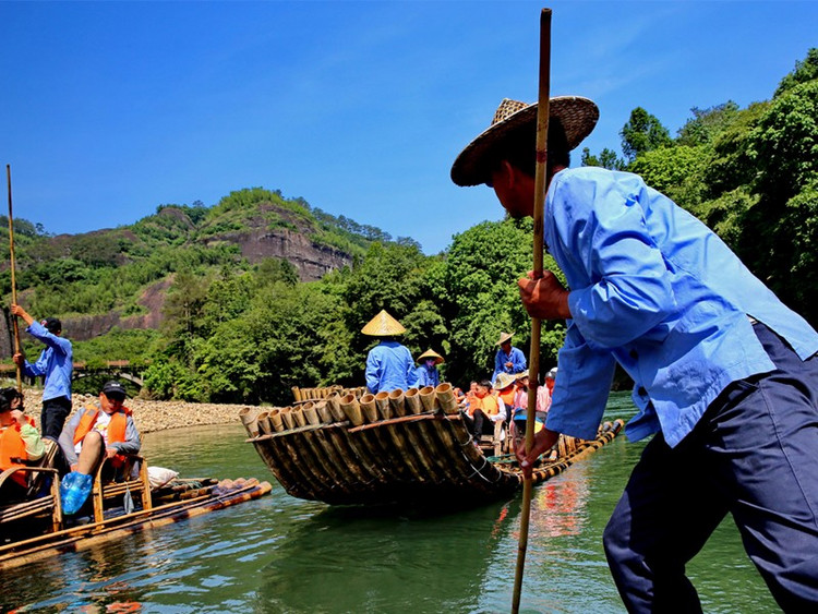 - 早餐后前往【九曲溪景区】,这是武夷山风景区中最为独特、最为精彩的景区;这是武夷山的灵魂所在。保护区良好的环境使得九曲溪水碧透清冽,丹崖、苍壁、蓝天、白云倒映水中,层次分明,变幻万千。