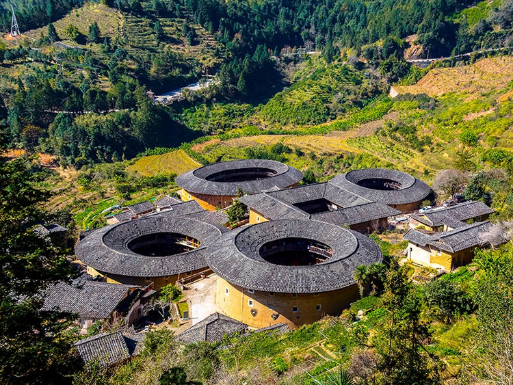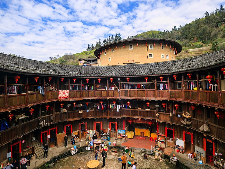 - 早餐后前往南靖县书洋镇上坂村的【田螺坑土楼群】。这里的土楼原产生于宋朝时代,明、清朝时期逐渐成熟,并一直延续至今。