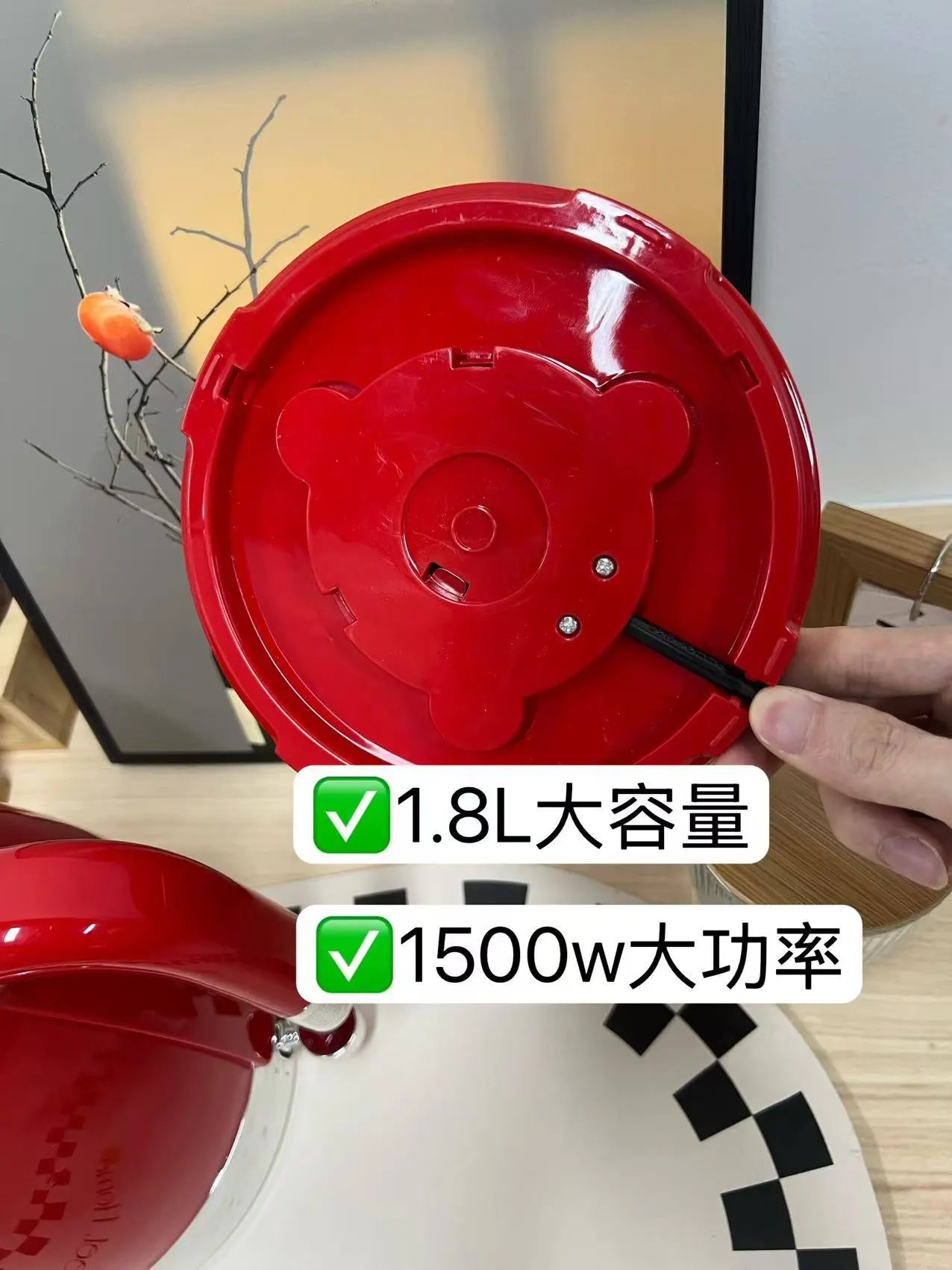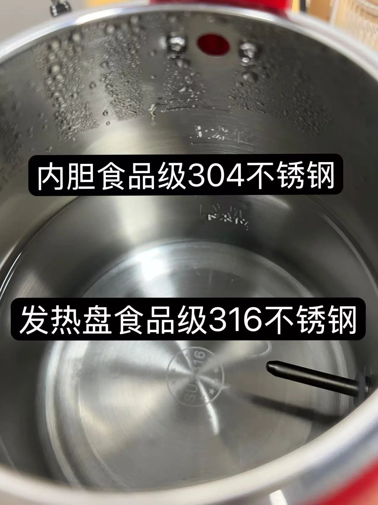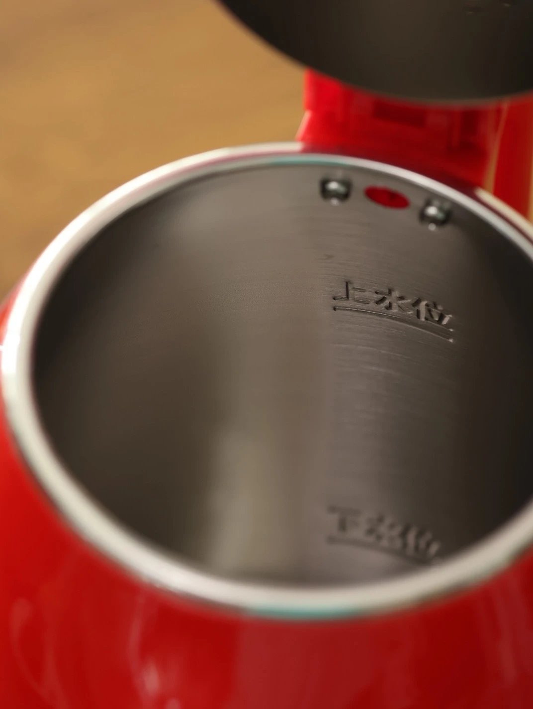 配置的是304不锈钢内胆 表面光滑,煮水不易藏水垢 1500W大功率,烧水快速沸腾 烧开一壶少约5分钟作用, 烧开自动断电 1.8L大容量,一次烧水全家够用 自带机械仪表,精准控温,实时看到壶内温度