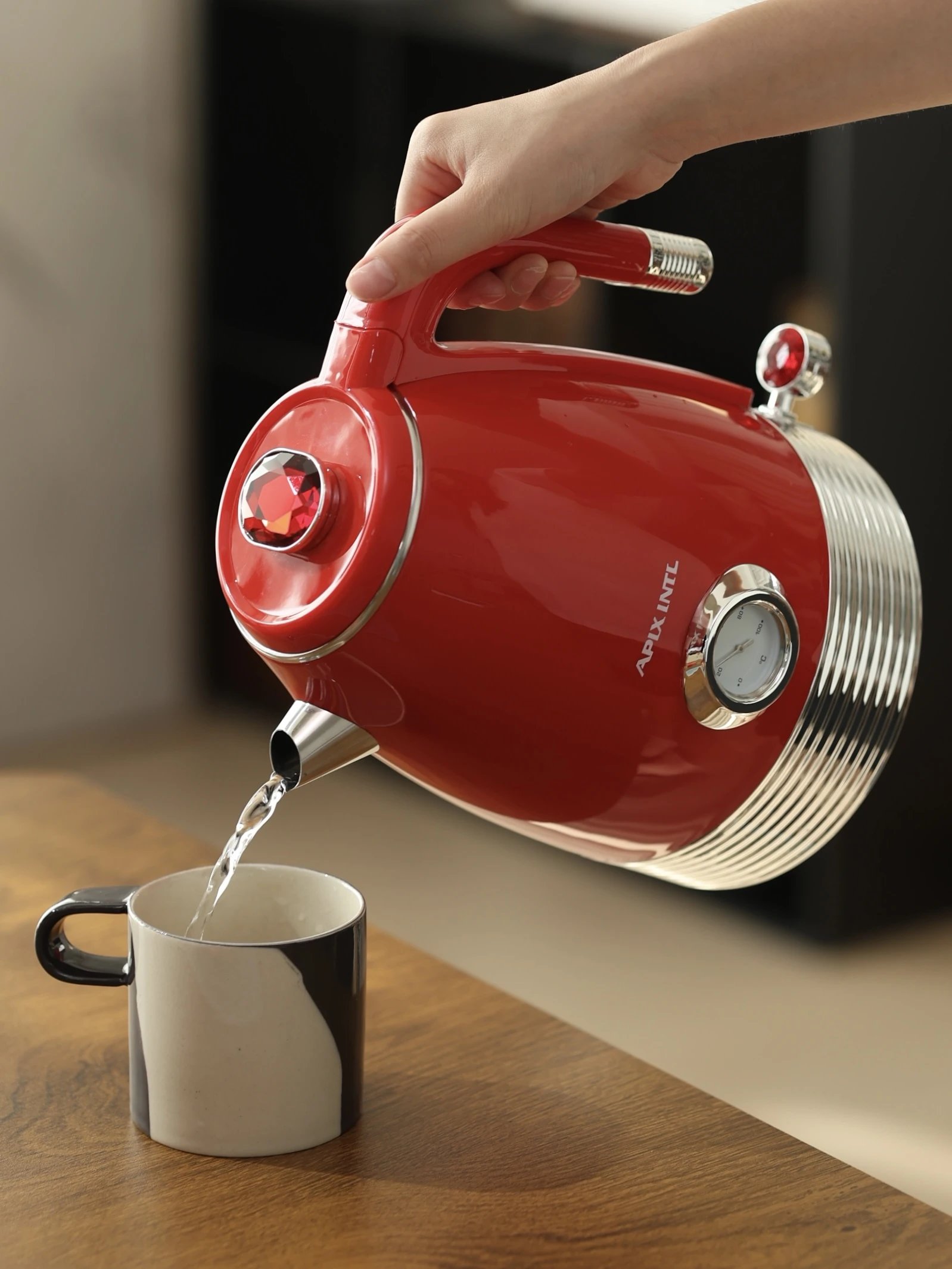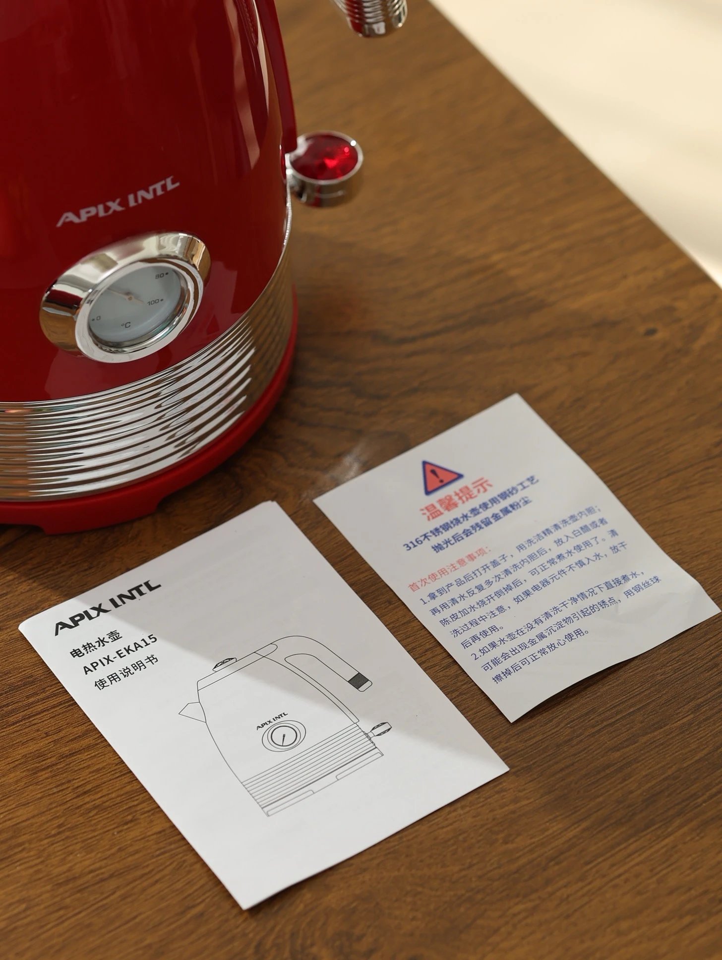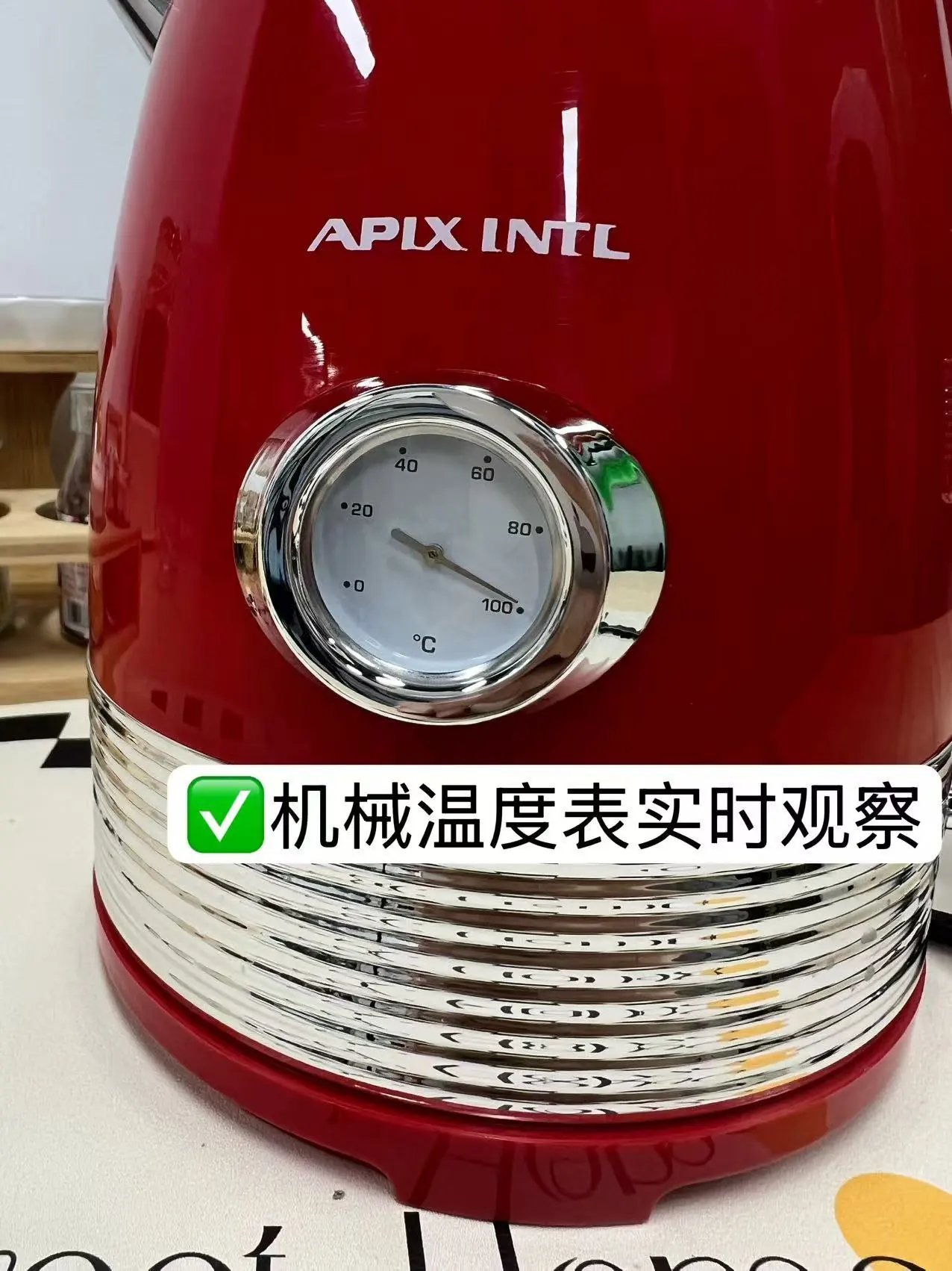 APIXINTL安本素电热水壶 烧水壶 1.8L大容量 自带机械仪表 精准控温 食品级加厚304不锈钢内胆、不易藏水 垢基地直邮