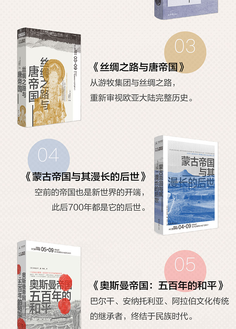 本书是奥斯曼帝国的通史作品,从尚处部落时期一直介绍到其一战后解体。其中可见穆罕默德二世、苏莱曼一世等卓越君主的征战开拓、由大宰相和职业官僚达成的长期安定统治、以伊斯坦布尔为中心成熟的奥斯曼文化,展示出多文明多宗教共存的帝国历史图卷。(《奥斯曼帝国:五百年的和平》)
