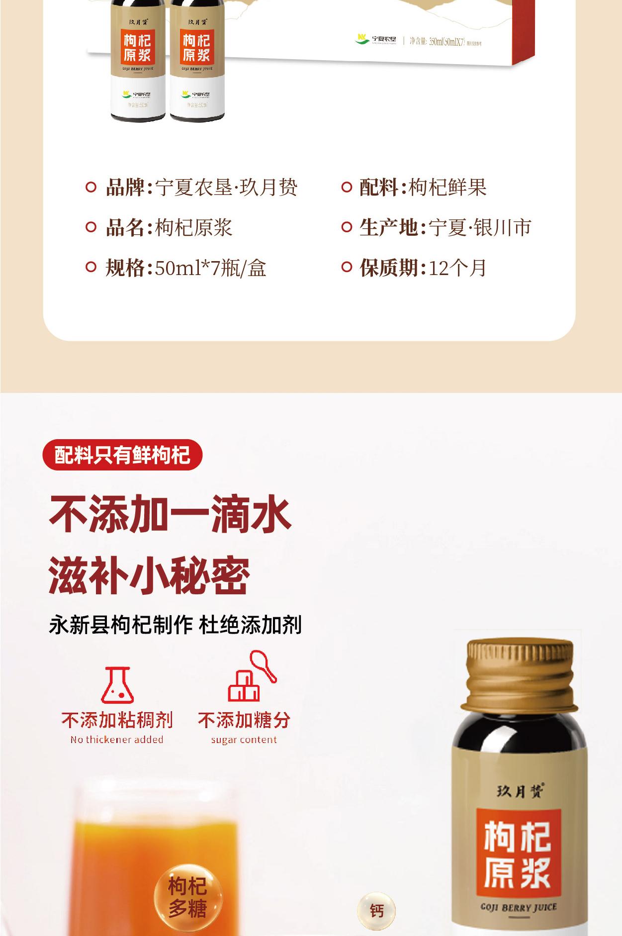 宁夏农垦·玖月贽鲜枸杞原浆(瓶装) 50毫升x7瓶 1.5小时锁鲜技术 保留99.9%营养