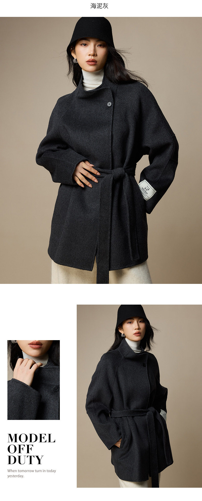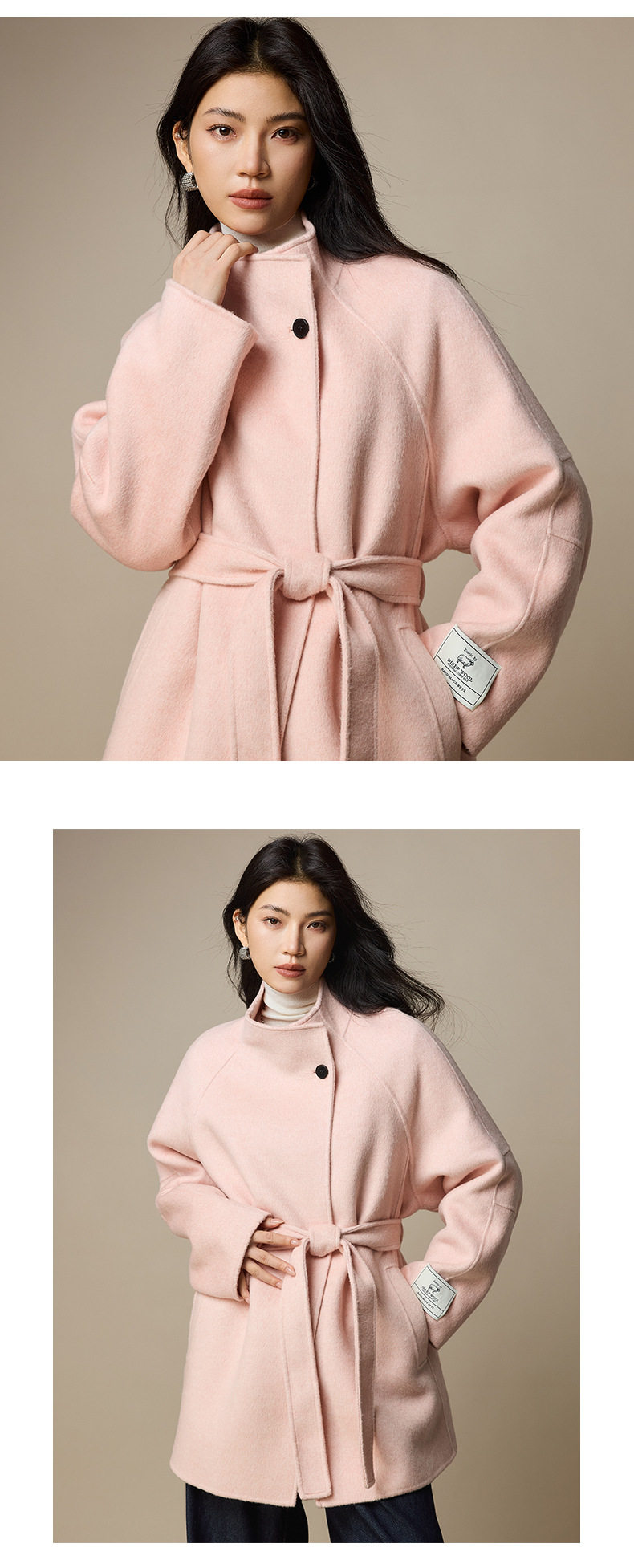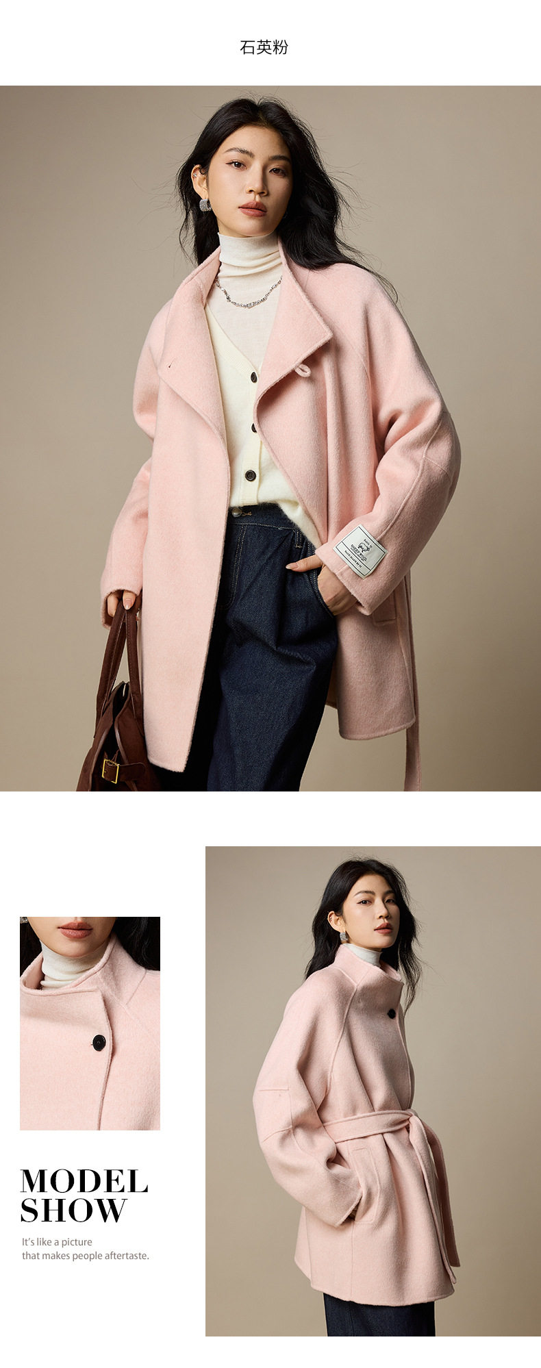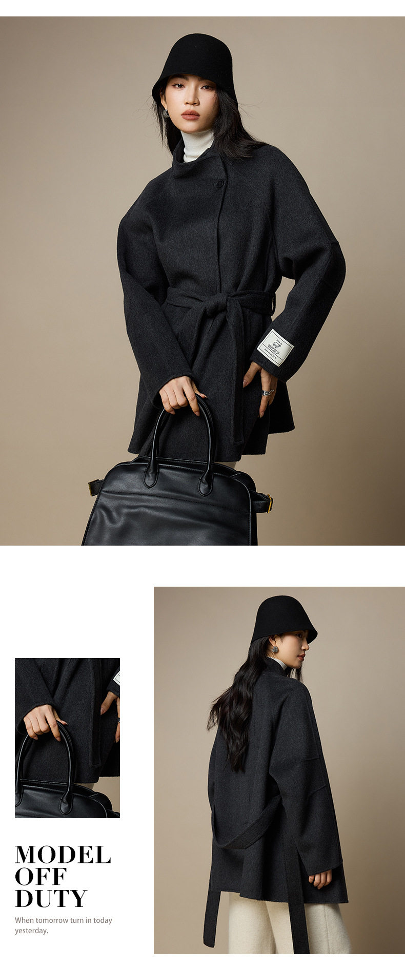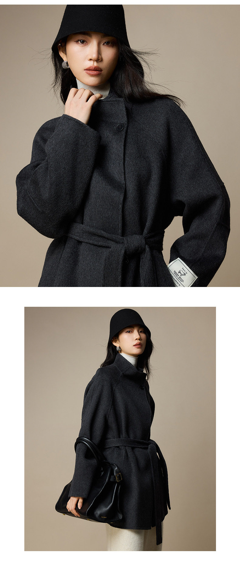 「自」全新升级【铂金会员799/天猫1079/差价280】(21336)洛诗琳高级感双面呢羊毛大衣2025秋冬新款中长款系带呢子外套