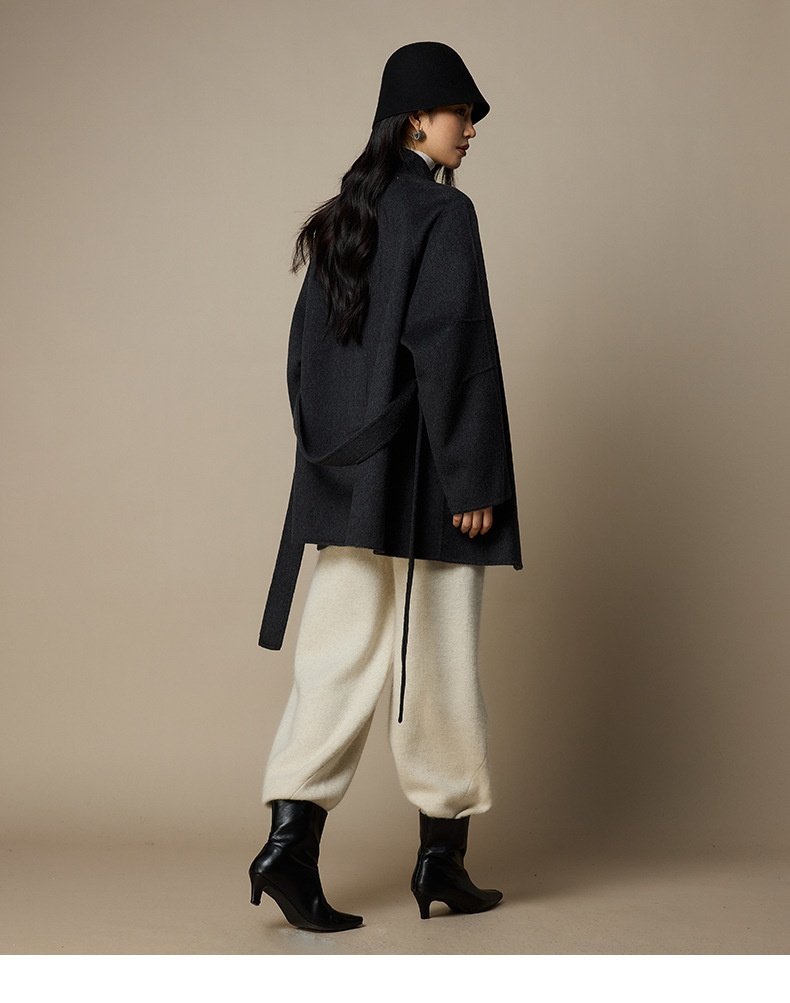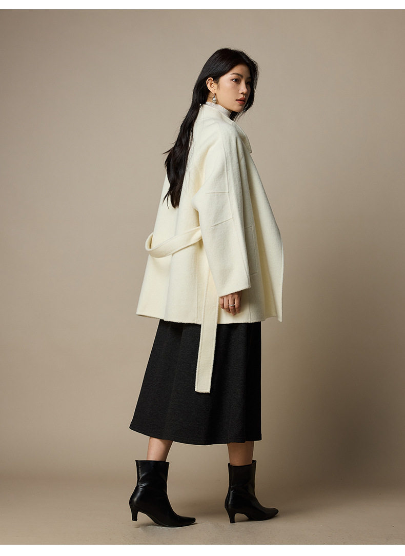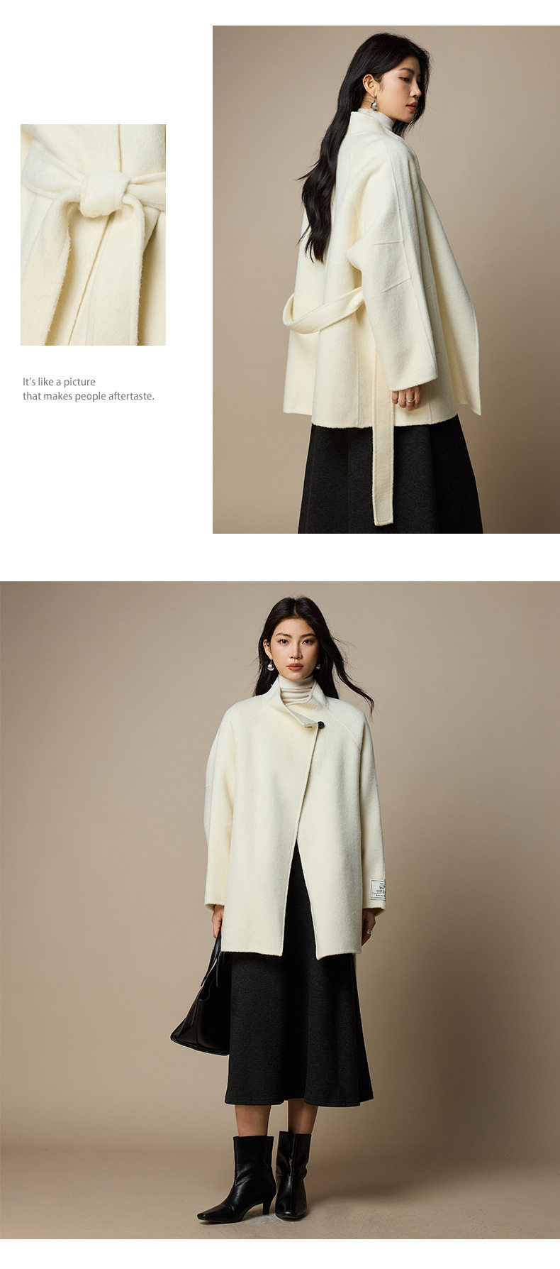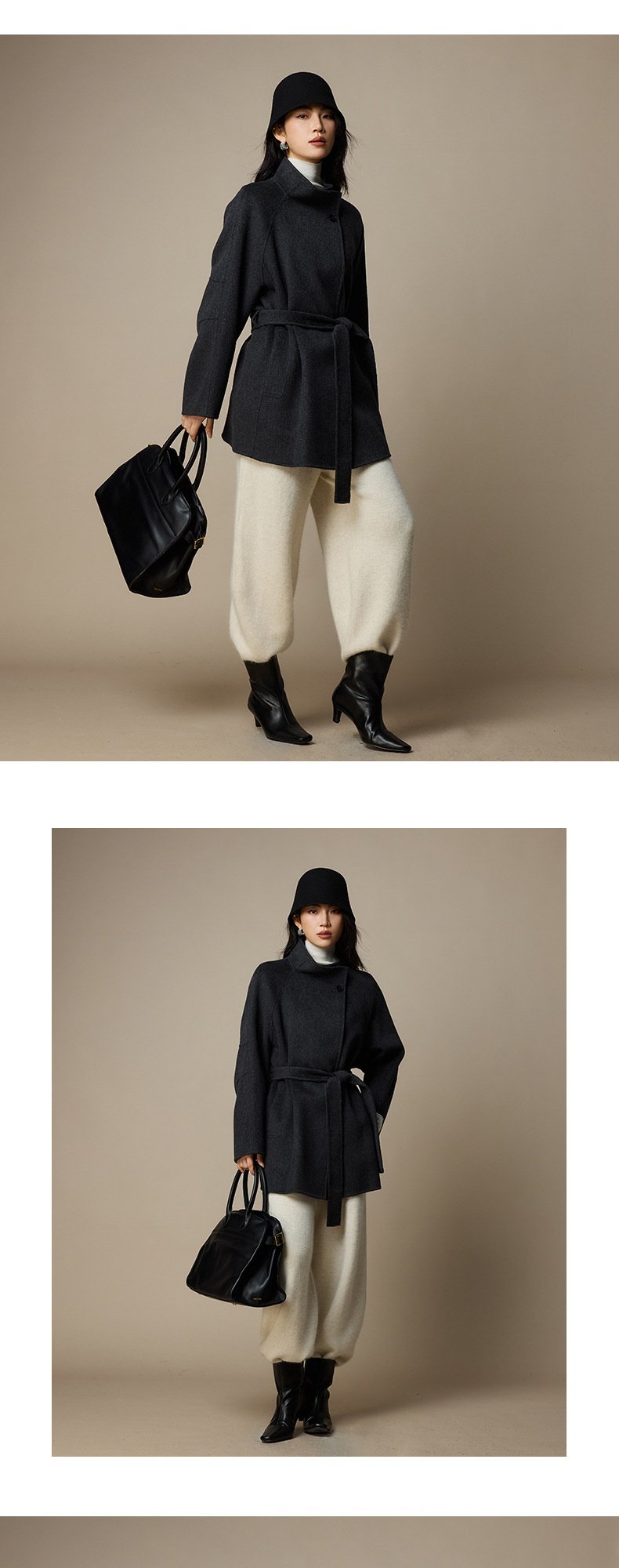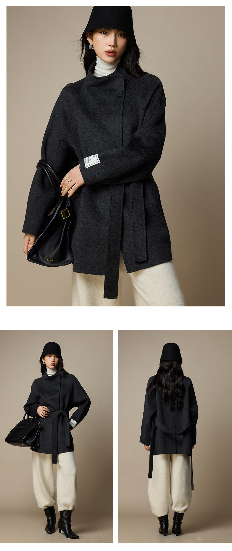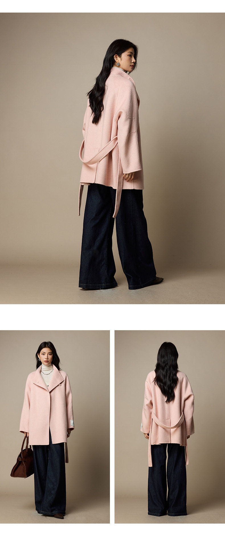 「自」全新升级【铂金会员799/天猫1079/差价280】(21336)洛诗琳高级感双面呢羊毛大衣2025秋冬新款中长款系带呢子外套