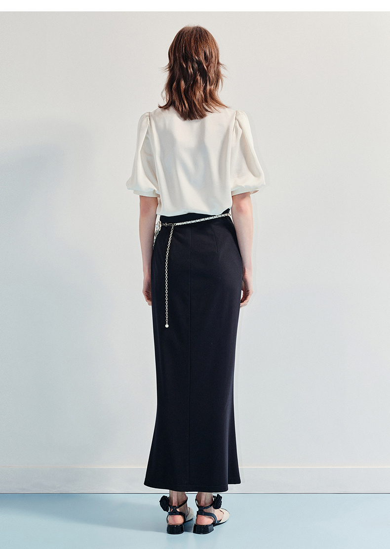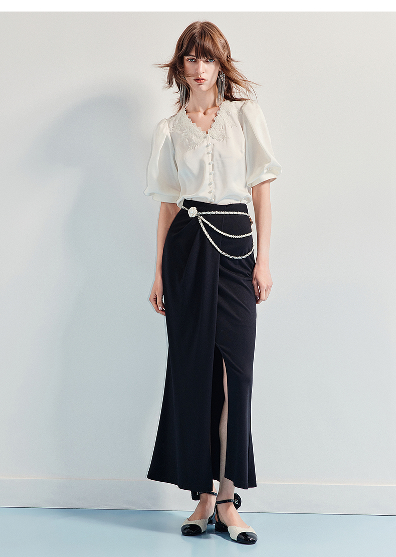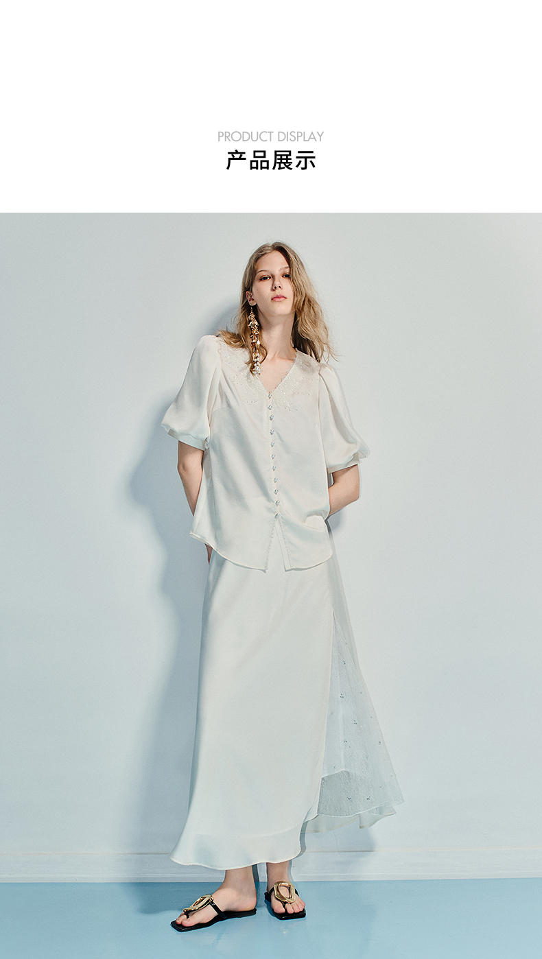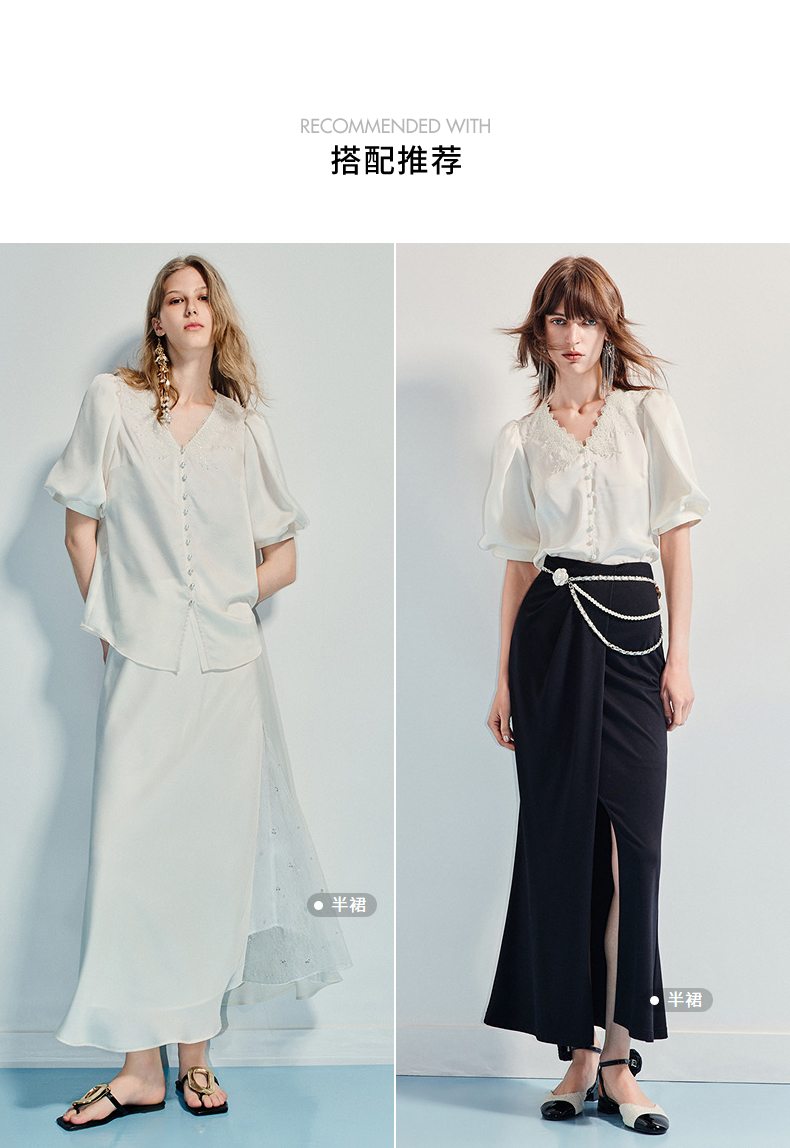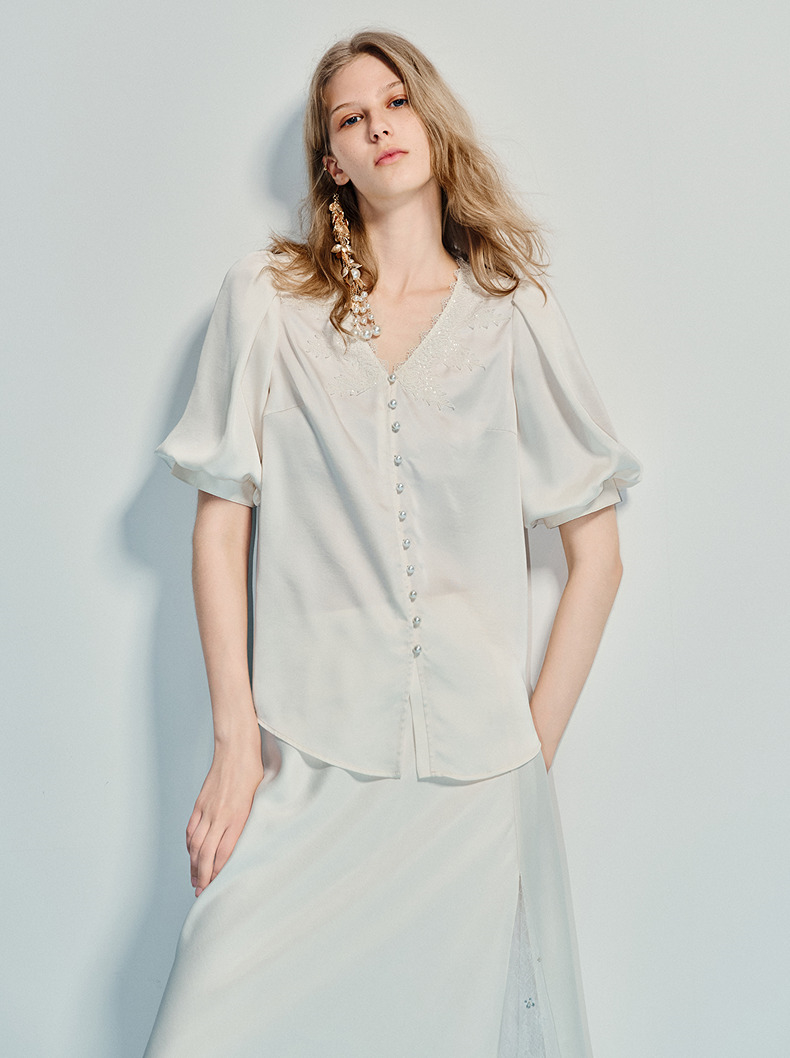 MAXRIENY精致宫廷风蕾丝雪纺衫25夏款绣花泡泡袖衬衫衬衣女上衣(货号:MF86TP016)