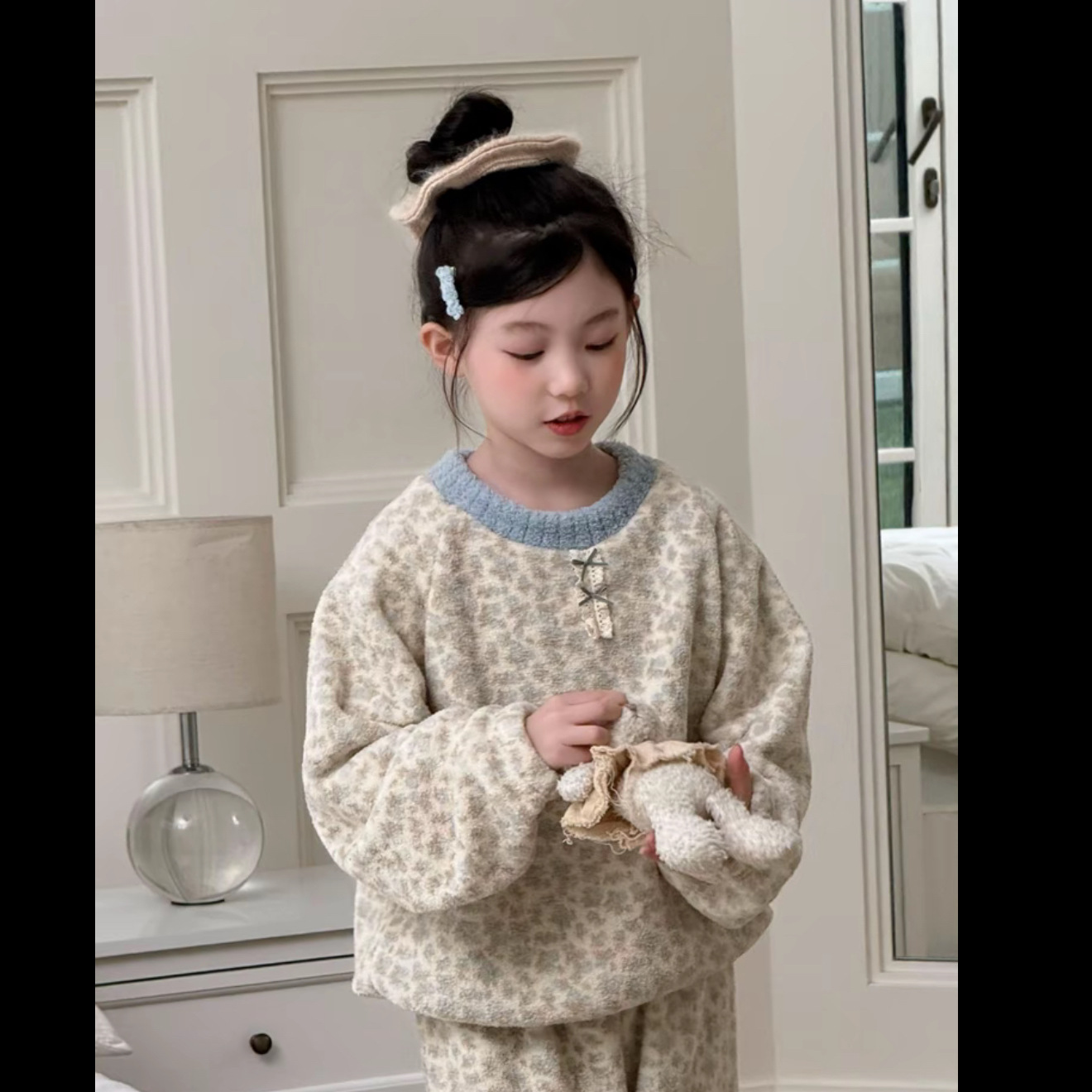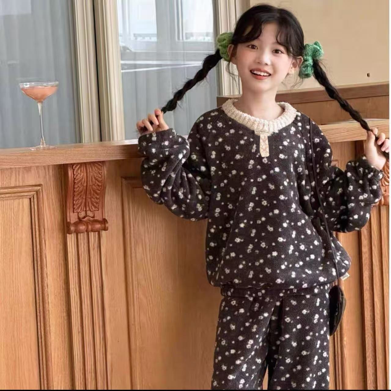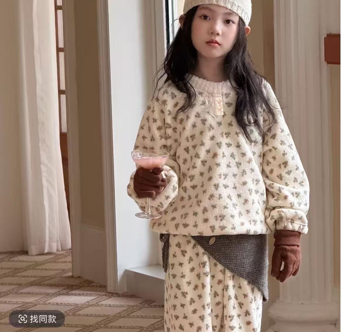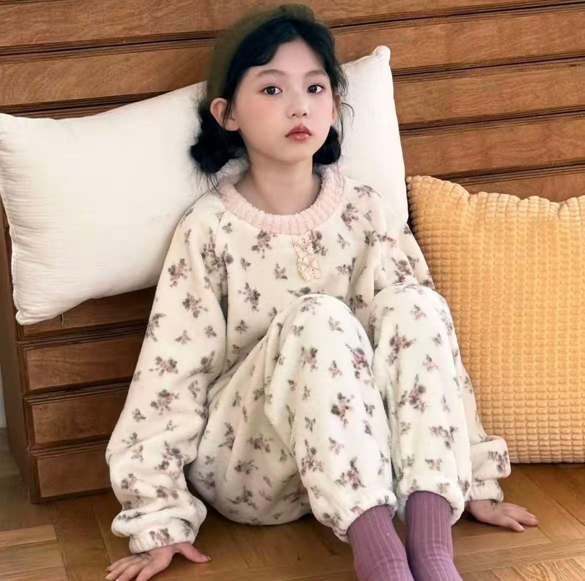 【亲肤安全材质❗️保暖舒适简约】韩系新款女童睡衣秋冬加厚儿童亲子装家居服女孩加绒碎花保暖套装。jb