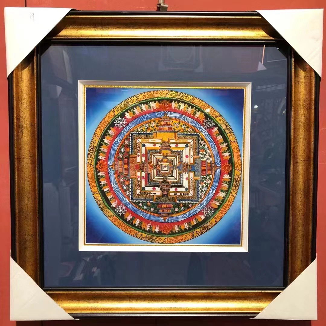 尼泊尔手工唐卡 纯手绘彩金六字真言坛城